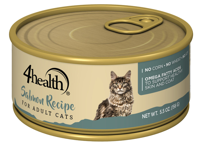Shop / 4Health / 4health with Wholesome Grains Salmon and Rice Wet Cat Food, 5.5 oz. 4health with Wholesome Grains Salmon and Rice Wet Cat Food, 5.5 oz. 4health Default Title $1.19 Default Title Purchase Options Free In-Store Pick Up Not Available Save 10% on orders $49+ Set your store for inventory and store pickup details Zip Code Search Same-day Delivery* No minimum charge for delivery orders. *Order before 2pm and have it delivered today. Orders placed after 2pm will be delivered the next day. Must be inside delivery radius. Zip Code Unfortunately delivery is not available to this address. In order to ensure the best availability accuracy, changing your selected store will remove all items from your cart. You will need to re-add these items with your newly selected store if you choose to continue. Continue Cancel Ship it to Me Quantity Add To Cart Feeding guide disclaimer ✕ Feeding guides provide a starting point for the amount of food to give your pet each day. We recommend that you keep your pet in ideal body condition and not allow them to become overweight. The amount of food your pet needs can vary based on age, activity level or other food and treats given, so be sure to work with your veterinarian to determine an appropriate weight for your pet, and to make any necessary adjustments to their feeding. Information 4health with Wholesome Grains Salmon and Rice Cat Food is a perfect meal for your feline friend. Each individual serving is enhanced with vitamins and minerals for a complete and balanced meal. It is formulated to meet the nutritional levels established by the AAFCO cat food nutrient profiles for growth and maintenance.IngredientsSalmon, chicken, chicken liver, salmon broth, carrots, peas, natural flavor, guar gum, salt, potassium chloride, minerals (iron amino acid chelate, zinc amino acid chelate, copper amino acid chelate, manganese amino acid chelate, sodium selenite, potassium iodide), choline chloride, vitamins (thiamine mononitrate, vitamin E supplement, niacin supplement, d-calcium pantothenate, pyridoxine hydrochloride, riboflavin supplement, vitamin A supplement, biotin, vitamin D3 supplement, vitamin B12 supplement, folic acid), taurine, carrageenan, sunflower oil, DL-methionine.Guaranteed AnalysisCrude Protein (Min.) 10.0%, Crude Fat (Min.) 6.0%, Crude Fiber (Max.) 1.0%, Moisture (Max.) 78.0%, Taurine (Min.) 0.05%, Omega-6 Fatty Acids* (Min.) 0.9%, Omega-3 Fatty Acids* (Min.) 0.09%.*Not recognized as an essential nutrient by the AAFCO cat food nutrient profiles. Calorie Content (calculated) 1,180 kcal ME/kg 184 kcal/can AAFCO Statement 4health Salmon Recipe for Adult Cats is formulated to meet the nutritional levels established by the AAFCO Cat Food Nutrient Profiles for maintenance. Customers also liked Customer Reviews