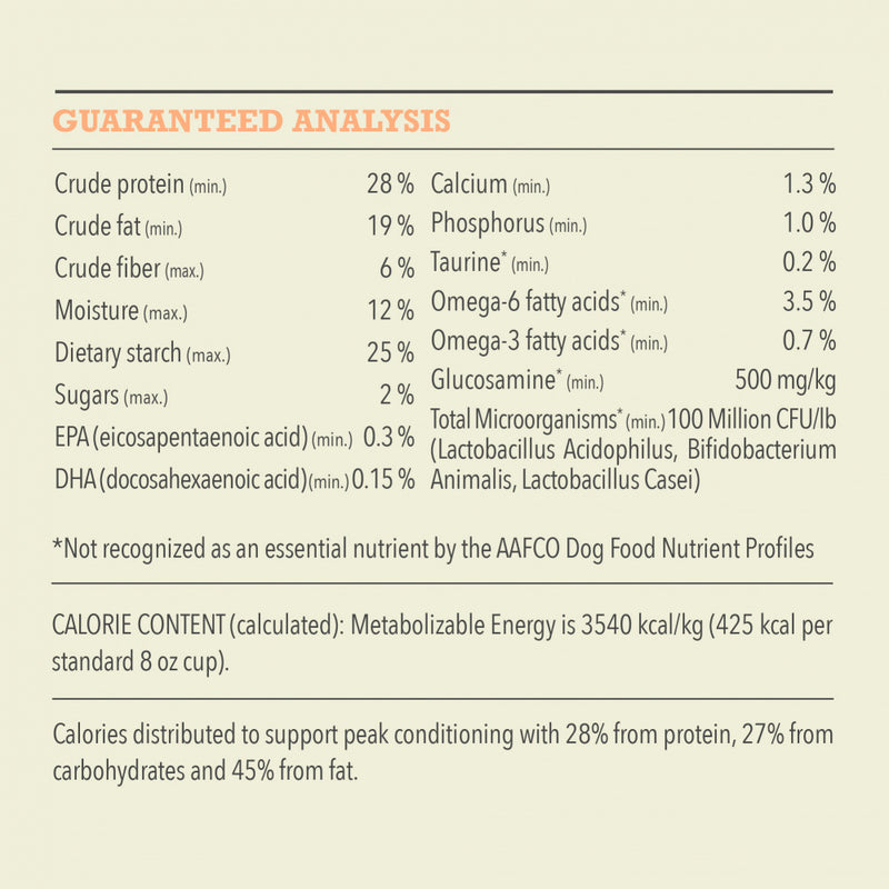 Shop / ACANA / ACANA Puppy Wholesome Grains Real Chicken, Eggs & Turkey Dry Dog Food ACANA Puppy Wholesome Grains Real Chicken, Eggs & Turkey Dry Dog Food ACANA $20.99 4 lb 11.5 lb 4-lb 11.5-lb Purchase Options Free In-Store Pick Up Not Available Save 10% on orders $49+ Set your store for inventory and store pickup details Zip Code Search Same-day Delivery* No minimum charge for delivery orders. *Order before 2pm and have it delivered today. Orders placed after 2pm will be delivered the next day. Must be inside delivery radius. Zip Code Unfortunately delivery is not available to this address. In order to ensure the best availability accuracy, changing your selected store will remove all items from your cart. You will need to re-add these items with your newly selected store if you choose to continue. Continue Cancel Ship it to Me Quantity Add To Cart Feeding guide disclaimer ✕ Feeding guides provide a starting point for the amount of food to give your pet each day. We recommend that you keep your pet in ideal body condition and not allow them to become overweight. The amount of food your pet needs can vary based on age, activity level or other food and treats given, so be sure to work with your veterinarian to determine an appropriate weight for your pet, and to make any necessary adjustments to their feeding. Information Our ACANA® food for dogs always goes beyond the 1st ingredient, thoughtfully crafted from start to finish. ACANA® Wholesome Grain Puppy recipe is packed with our delicious free-run chicken*, cage-free eggs, and free-run turkey*, and complemented with wholesome grains like oats, sorghum, and millet. These grains are high in fiber and gluten-free, offering added nutrition that helps support a healthy digestive environment. Plus, our Wholesome Grains Puppy recipe includes even more protein, fat, and Omega-3’s to support your puppy’s growth and development. Our premium ingredients come from a curated group of farmers, ranchers and fishers we’ve known and trusted for decades, and we approach every batch with an unsurpassed commitment to safety and quality in our award-winning Kentucky kitchen. The result is a protein-rich, nutritious, and delicious dog food to help them stay happy and healthy. Our free-run chickens/turkeys move freely in a barn, never outdoors for their protection, and are not housed in cages. When compared to ACANA Wholesome Grains Free-Run Poultry & Grains RecipeWhy We Love It The first ingredient is fresh or raw chicken, which is nutrient-dense and high in protein. Our fresh ingredients use refrigeration as the sole method of preservation and our raw ingredients are frozen at their peak freshness. Rich in fiber and highly nutritious, our additions of wholesome grains support optimum gut health. More protein, fat, and Omega-3’s to support your puppy’s growth & development. About ACANAYour dog may not roam the wilderness like their ancestors did, but that doesn't mean you shouldn't feed them like they don't. ACANA makes only foods that are rich in meat and protein variety, with wholeprey meat ratios and limited carbohydrates, replacing fast carbs with low glycemic, healthy fruits and vegetables. With a state of art brand new kitchen in Kentucky, all ACANA foods are sourced and made right here in the USA by trusted farmers. With human grade ingredients that typically arrive at the kitchens within 48 hours of harvesting, fresh is the entire basis of ACANA’s brand. Ingredients like heritage red meats from the Appalachian ranching country, free run poultry and eggs, wild caught fish from New England, whole fruits and vegetables like Bartlett pears and butternut squash, and locally grown botanicals from Kentucky, ACANA believes the healthiest foods are made here at home in Kentucky, never outsourced. ACANA nourishes your pet's instinct for real, fresh meats and high quality grain-free carbohydrates. It's everything Mother Nature intended, and nothing she did not. Ingredients Deboned chicken, chicken meal, oat groats, whole sorghum, whole millet, chicken fat, whole oats, chicken liver, catfish meal, ground miscanthus grass, eggs, deboned turkey, fish oil, natural chicken flavor, chicken cartilage, chicken heart, turkey giblet (liver, heart gizzard), whole butternut squash, whole pumpkin, salt, potassium chloride, choline chloride, taurine, dried kelp, vitamin E supplement, mixed tocopherols (preservative), zinc proteinate, vitamin D3 supplement, vitamin A acetate, freeze-dried chicken liver, freeze-dried turkey liver, niacin , thiamine mononitrate, riboflavin, calcium pantothenate, pyridoxine hydrochloride, folic acid, vitamin B12 supplement, copper proteinate, chicory root, turmeric, sarsaparilla root, althea root, rosehips, juniper berries, citric acid (preservative), rosemary extract, dried Lactobacillus acidophilus fermentation product, dried Bifidobacterium animalis fermentation product, dried Lactobacillus casei fermentation product. Guaranteed Analysis Nutrient Guaranteed Units Crude Protein 28% min Crude Fat 17% min Crude Fiber 6% max Moisture 12% max EPA 0.2% min DHA 0.15% min Calcium 1.5% min Phosphorus 1.1% min Taurine 0.2% min Omega-6 Fatty Acids 3.0% min Omega-3 Fatty Acids 0.6% min Glucosamine 500 mg/kg min Customers also liked Customer Reviews