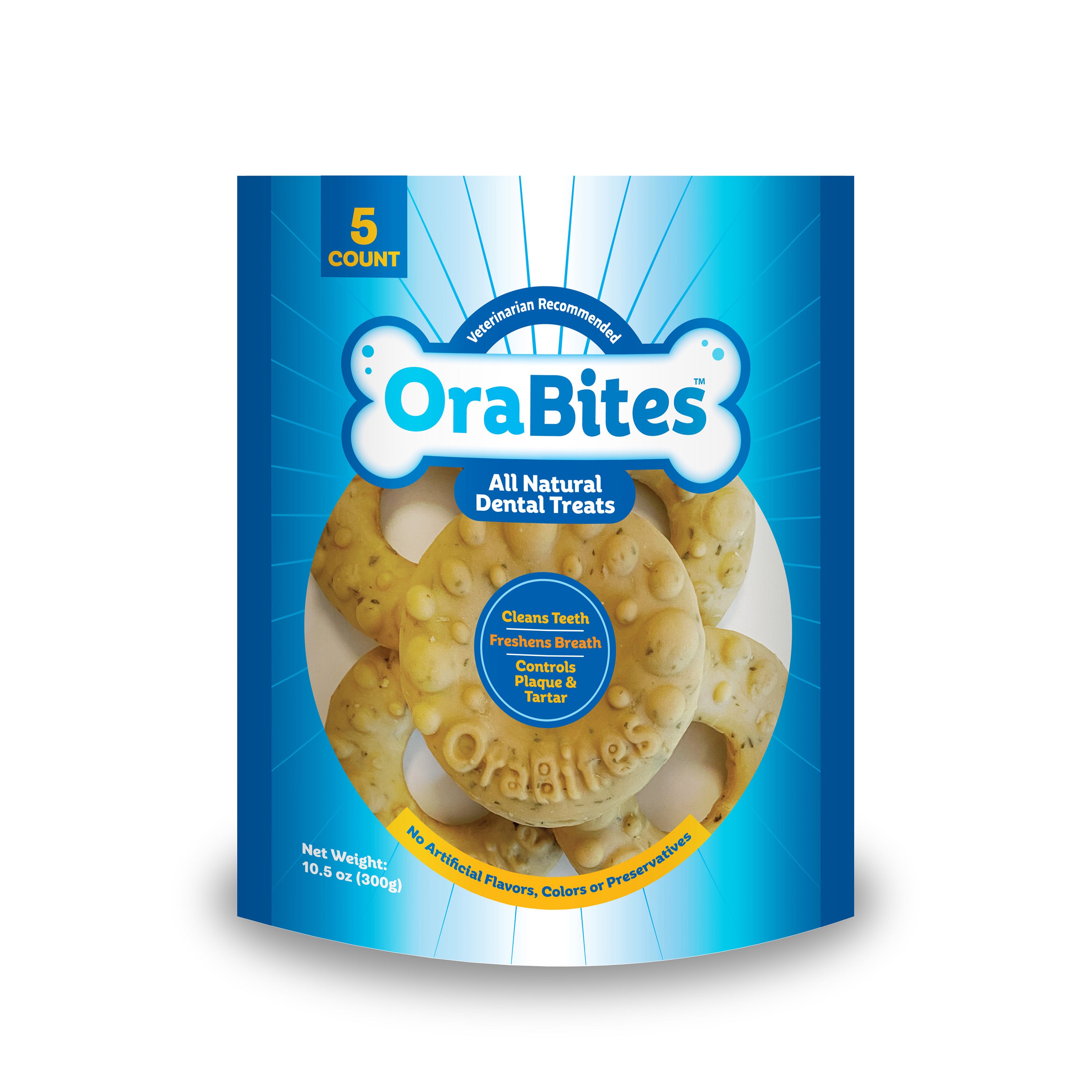 Shop / All Products / OraBites Dental Treats - Med/Large 5 Count OraBites Dental Treats - Med/Large 5 Count OraBites 5 ct $10.99 5 ct Purchase Options Free In-Store Pick Up Not Available Save 10% on orders $49+ Set your store for inventory and store pickup details Zip Code Search Same-day Delivery* No minimum charge for delivery orders. *Order before 2pm and have it delivered today. Orders placed after 2pm will be delivered the next day. Must be inside delivery radius. Zip Code Unfortunately delivery is not available to this address. In order to ensure the best availability accuracy, changing your selected store will remove all items from your cart. You will need to re-add these items with your newly selected store if you choose to continue. Continue Cancel Ship it to Me Quantity Add To Cart Feeding guide disclaimer ✕ Feeding guides provide a starting point for the amount of food to give your pet each day. We recommend that you keep your pet in ideal body condition and not allow them to become overweight. The amount of food your pet needs can vary based on age, activity level or other food and treats given, so be sure to work with your veterinarian to determine an appropriate weight for your pet, and to make any necessary adjustments to their feeding. Information OraBites™ All Natural Dental Treats are veterinarian-recommended chews crafted to support daily oral care with safe, wholesome ingredients. Their ridged, ring-shaped design helps clean teeth, freshen breath, and reduce plaque and tartar buildup as dogs chew. Made without artificial flavors, colors, or preservatives, OraBites™ provides pet parents with a natural and effective way to promote their dog’s dental health. Rice Starch, Corn Starch, Vegetable Glycerin, Calcium Carbonate, Chicken, Maltodextrin, Gelatin, Yeast, Salt, Parsley Granules, Mixed Tocopherols. Crude Protein(min) 6.0%, Crude Fat(min) 0.01%, Crude Fiber(max) 1.0%, Moisture( max) 18.0% Customers also liked Customer Reviews