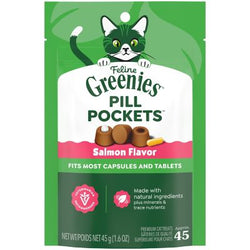 Greenies Feline Pill Poockets for Cats Natural Soft Cat Treats, Salmon Flavor, 1.6 oz. pk., 45 ct. $6.49