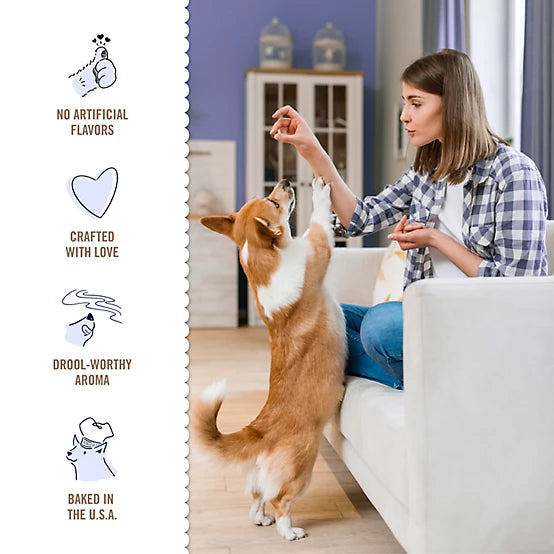 Shop / Products / Three Dog Bakery Assortment Mutt Cookie Trio Variety Pack Soft Baked Dog Treats, 26 oz. Three Dog Bakery Assortment Mutt Cookie Trio Variety Pack Soft Baked Dog Treats, 26 oz. Three Dog Bakery 26oz $14.99 26oz Purchase Options Free In-Store Pick Up Not Available Save 10% on orders $49+ Set your store for inventory and store pickup details Zip Code Search Same-day Delivery* No minimum charge for delivery orders. *Order before 2pm and have it delivered today. Orders placed after 2pm will be delivered the next day. Must be inside delivery radius. Zip Code Unfortunately delivery is not available to this address. In order to ensure the best availability accuracy, changing your selected store will remove all items from your cart. You will need to re-add these items with your newly selected store if you choose to continue. Continue Cancel Ship it to Me Quantity Add To Cart Feeding guide disclaimer ✕ Feeding guides provide a starting point for the amount of food to give your pet each day. We recommend that you keep your pet in ideal body condition and not allow them to become overweight. The amount of food your pet needs can vary based on age, activity level or other food and treats given, so be sure to work with your veterinarian to determine an appropriate weight for your pet, and to make any necessary adjustments to their feeding. Information Variety is the spice of life! Serve your pups the Three Dog Bakery Soft Baked Oat, Apple, Peanut and Vanilla Flavor Mutt Dog Biscuit Treats. Your dogs will be loving life with this pup-ular mix of 3 premium dog cookies. The favorites include: Oats and apples, peanut and vanilla flavors. This variety pack of oven-baked, healthy dog treats is made with ingredients that your dog will love and you can trust. Whether you have one or multiple puppies, these dog biscuit treats are sure to delight any of their preferences. Soft-baked variety pack includes oatmeal and apples, peanut and vanilla dog wafers Slowly baked dog biscuit treats to preserve the delicious flavors that dogs love Baked in the USA and comes in a convenient and easy-to-store resealable pack Real, recognizable ingredients your pup will love for healthy dog treats Great for multi-dog families or pups that like a mix of flavors Wheat flour, vegetable oil, vegetable glycerin, honey, rolled oats, peanut butter, dried cane molasses, dried whole egg, peanut flour, ground cinnamon, dehydrated apples, sodium bicarbonate, citric acid (preservative), natural vanilla flavor, baking powder, vinegar (preservative), mixed tocopherols (preservative), rosemary extract. Nutrient Analysis Crude Protein 8% min Crude Fat 13% min Crude Fiber 2% max Moisture 20% max Customers also liked Customer Reviews