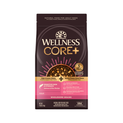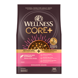 Wellness CORE+ Sensitive Skin & Stomach Dry Dog Food with Freeze Dried Pieces, Wholesome Grains, High Protein, Natural, Salmon & Rice Recipe, (4-Pound Bag) $23.99