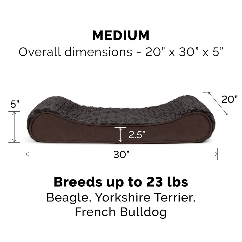 Shop / Best Sellers in stock / FurHaven Ultra Plush Luxe Lounger Orthopedic Dog Bed - Medium, Chocolate FurHaven Ultra Plush Luxe Lounger Orthopedic Dog Bed - Medium, Chocolate FurHaven Default Title $33.99 Default Title Purchase Options Free In-Store Pick Up Not Available Save 10% on orders $49+ Set your store for inventory and store pickup details Zip Code Search Same-day Delivery* No minimum charge for delivery orders. *Order before 2pm and have it delivered today. Orders placed after 2pm will be delivered the next day. Must be inside delivery radius. Zip Code Unfortunately delivery is not available to this address. In order to ensure the best availability accuracy, changing your selected store will remove all items from your cart. You will need to re-add these items with your newly selected store if you choose to continue. Continue Cancel Ship it to Me Quantity Add To Cart Information Give your best friend the comfort and orthopedic support they need with a FurHaven™ Ultra Plush Luxe Lounger Pet Bed. This ergonomically-designed pet bed is contoured to cradle your pet’s body and provide therapeutic back and neck support. Luxe Lounger pet beds feature dense, medical-grade foam that provides soft, yet firm support for a more restorative night’s rest. Ultra Plush sleep surface is super soft for the ultimate “cozy" experience. Step-on bed design is easily accessible by smaller, older or disabled pets. Removable, washable cover is manufactured using overlock safety stitching for longer lasting durability. This pet bed includes a water-resistant polycanvas base panel and is available in three stylish color options to blend with any home décor. Foam core is CertiPUR-US® certified and may be spot cleaned. Pet Bed cover is zippered and may be machine or hand washed. Not for unsupervised use by animals with chewing behaviors. Colors: Cream, Chocolate, Gray Sizes and Dimensions: Small - 21" x 14" x 4" (foam is 2" in center and 4" on edges) Medium - 30" x 20" x 5" (foam is 2.5" in center and 5" on edges) Large - 36" x 24" x 5.5" (foam is 2.5" in center and 5.5" on edges) Jumbo - 45" x 30" x 6" (foam is 2.5" in center and 6" on edges) Jumbo Plus - 51" x 36" x 8" (foam is 5" in center and 8" on edges) Giant - 58" x 42" x 9" (foam is 5" in center and 8" on edges) Wash Instructions: For best results - Remove filling (foam core). Zip close. Shake off any loose debris from cover before washing. Hand or machine wash separately; cold water. Do not bleach. Line dry or tumble dry low. Foam can be spot cleaned with mild soap as needed. Press excess water from mat. Do not wring. Air dry. Do not machine wash foam. Customers also liked Customer Reviews