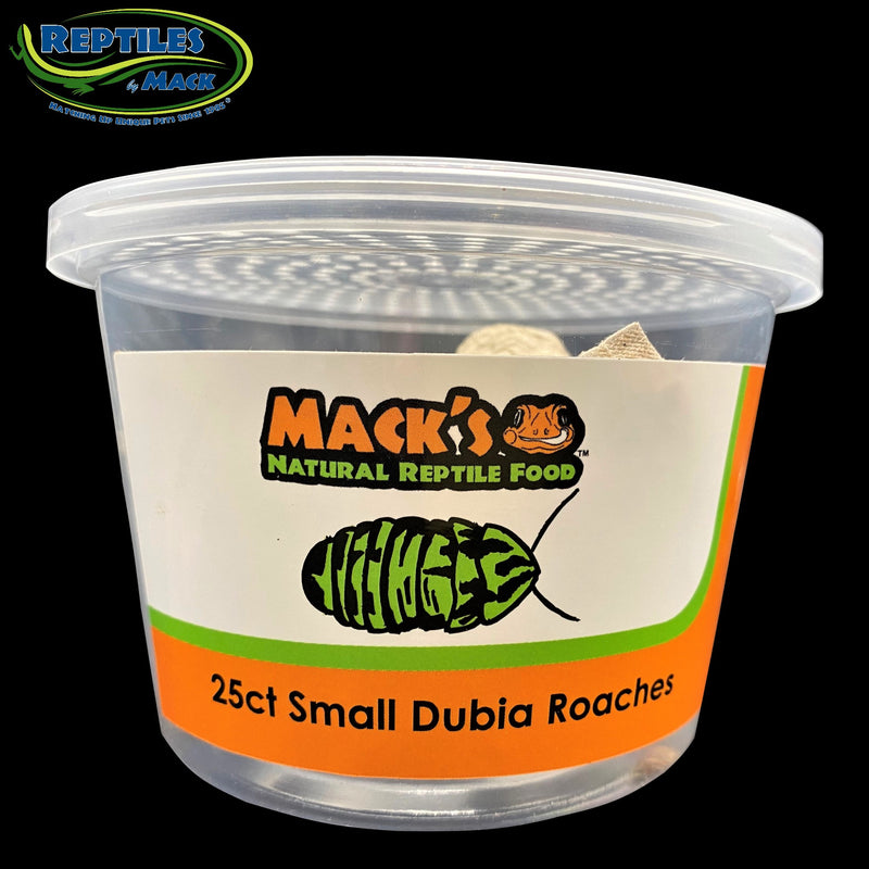 Shop / Best Sellers in stock / Mack's Natural Reptile Food Live Dubia Roaches Mack's Natural Reptile Food Live Dubia Roaches Mack's Natural Reptile Food $14.99 25 Large Dubia Roaches 25 Medium Dubia Roaches 25 Small Dubia Roaches 25 Large Dubia Roaches 25 Medium Dubia Roaches 25 Small Dubia Roaches Purchase Options Free In-Store Pick Up Not Available Save 10% on orders $49+ Set your store for inventory and store pickup details Zip Code Search Same-day Delivery* No minimum charge for delivery orders. *Order before 2pm and have it delivered today. Orders placed after 2pm will be delivered the next day. Must be inside delivery radius. Zip Code Unfortunately delivery is not available to this address. In order to ensure the best availability accuracy, changing your selected store will remove all items from your cart. You will need to re-add these items with your newly selected store if you choose to continue. Continue Cancel Ship it to Me Quantity Add To Cart Feeding guide disclaimer ✕ Feeding guides provide a starting point for the amount of food to give your pet each day. We recommend that you keep your pet in ideal body condition and not allow them to become overweight. The amount of food your pet needs can vary based on age, activity level or other food and treats given, so be sure to work with your veterinarian to determine an appropriate weight for your pet, and to make any necessary adjustments to their feeding. Information Crude Protein 21%, Crude Fat 9%, Crude Fiber 5%, Crude Ash 1%, Calcium 0.044%, Moisture 65% Customers also liked Customer Reviews