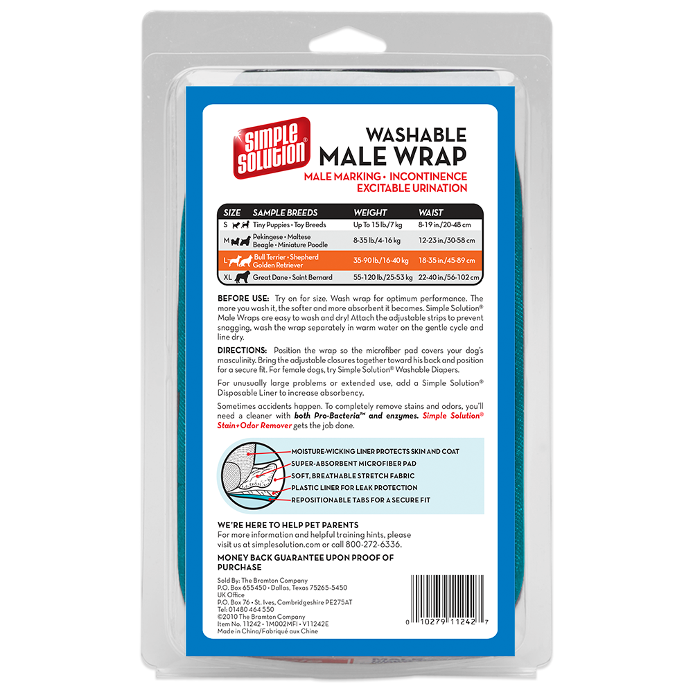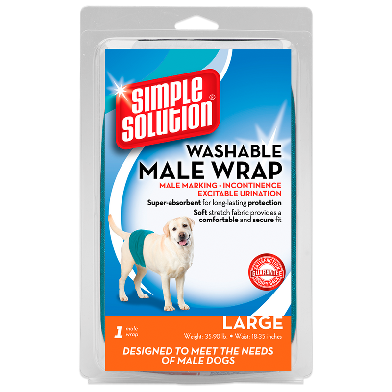 Shop / Best Sellers in stock / Simple Solution Washable Male Wrap Size Large Simple Solution Washable Male Wrap Size Large Simple Solution Large $14.99 Large Purchase Options Free In-Store Pick Up Not Available Save 10% on orders $49+ Set your store for inventory and store pickup details Zip Code Search Same-day Delivery* No minimum charge for delivery orders. *Order before 2pm and have it delivered today. Orders placed after 2pm will be delivered the next day. Must be inside delivery radius. Zip Code Unfortunately delivery is not available to this address. In order to ensure the best availability accuracy, changing your selected store will remove all items from your cart. You will need to re-add these items with your newly selected store if you choose to continue. Continue Cancel Ship it to Me Quantity Add To Cart Information It can be difficult managing a pet with urinary incontinence. Simple Solution Washable Male Wraps will protect your home from pee and restore peace of mind for you and your male dog. The super absorbent microfiber pad at the core of these diapers trap in moisture, while the stretchy waistband, and repositionable fasteners provide a secure fit for the wiggliest of dogs. Customers also liked Customer Reviews