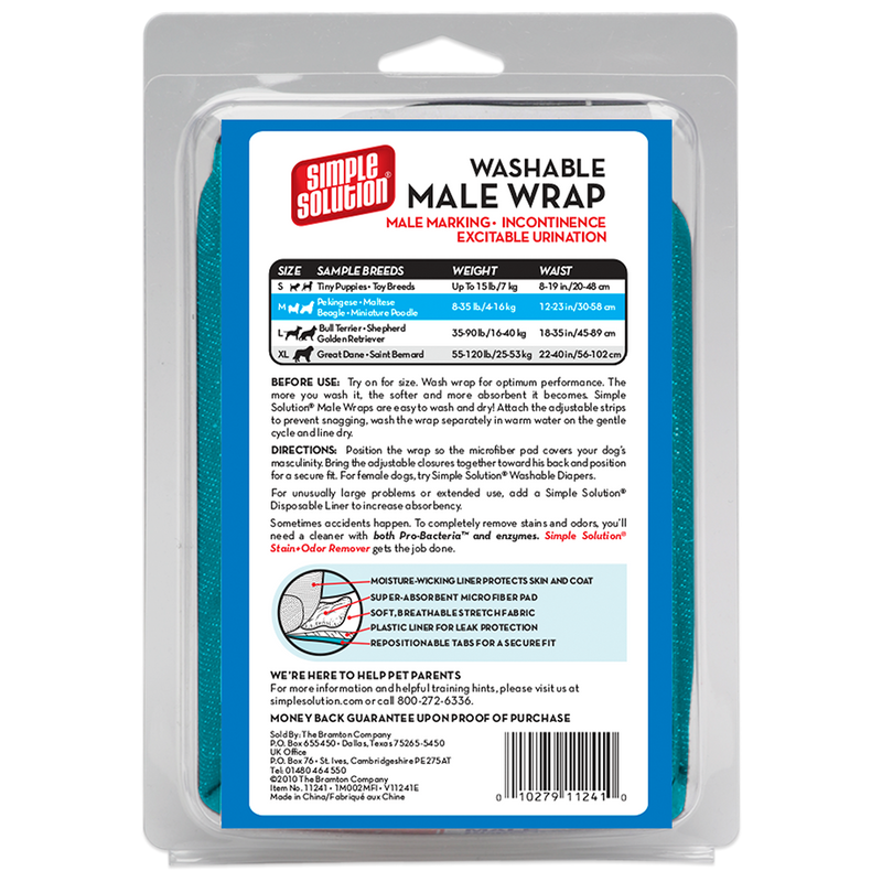 Shop / Best Sellers in stock / Simple Solution Washable Male Wrap Size Medium Simple Solution Washable Male Wrap Size Medium Simple Solution Medium $13.99 Medium Purchase Options Free In-Store Pick Up Not Available Save 10% on orders $49+ Set your store for inventory and store pickup details Zip Code Search Same-day Delivery* No minimum charge for delivery orders. *Order before 2pm and have it delivered today. Orders placed after 2pm will be delivered the next day. Must be inside delivery radius. Zip Code Unfortunately delivery is not available to this address. In order to ensure the best availability accuracy, changing your selected store will remove all items from your cart. You will need to re-add these items with your newly selected store if you choose to continue. Continue Cancel Ship it to Me Quantity Add To Cart Information It can be difficult managing a pet with urinary incontinence. Simple Solution Washable Male Wraps will protect your home from pee and restore peace of mind for you and your male dog. The super absorbent microfiber pad at the core of these diapers trap in moisture, while the stretchy waistband, and repositionable fasteners provide a secure fit for the wiggliest of dogs. Customers also liked Customer Reviews