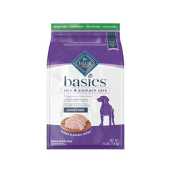 Blue Buffalo Basics Skin & Stomach Care, Grain Free Natural Adult Dry Dog Food, Turkey & Potato 4 lb. $20.98