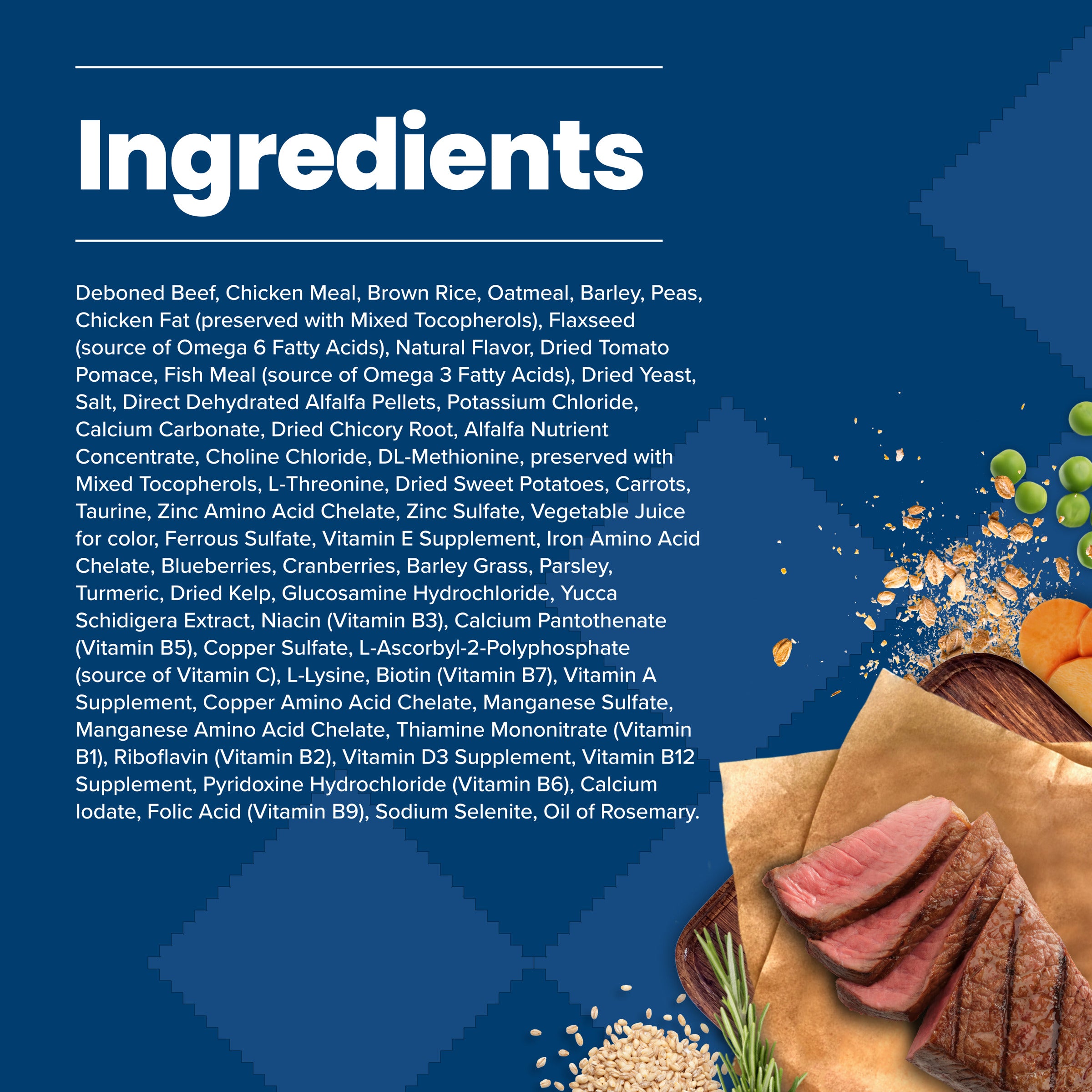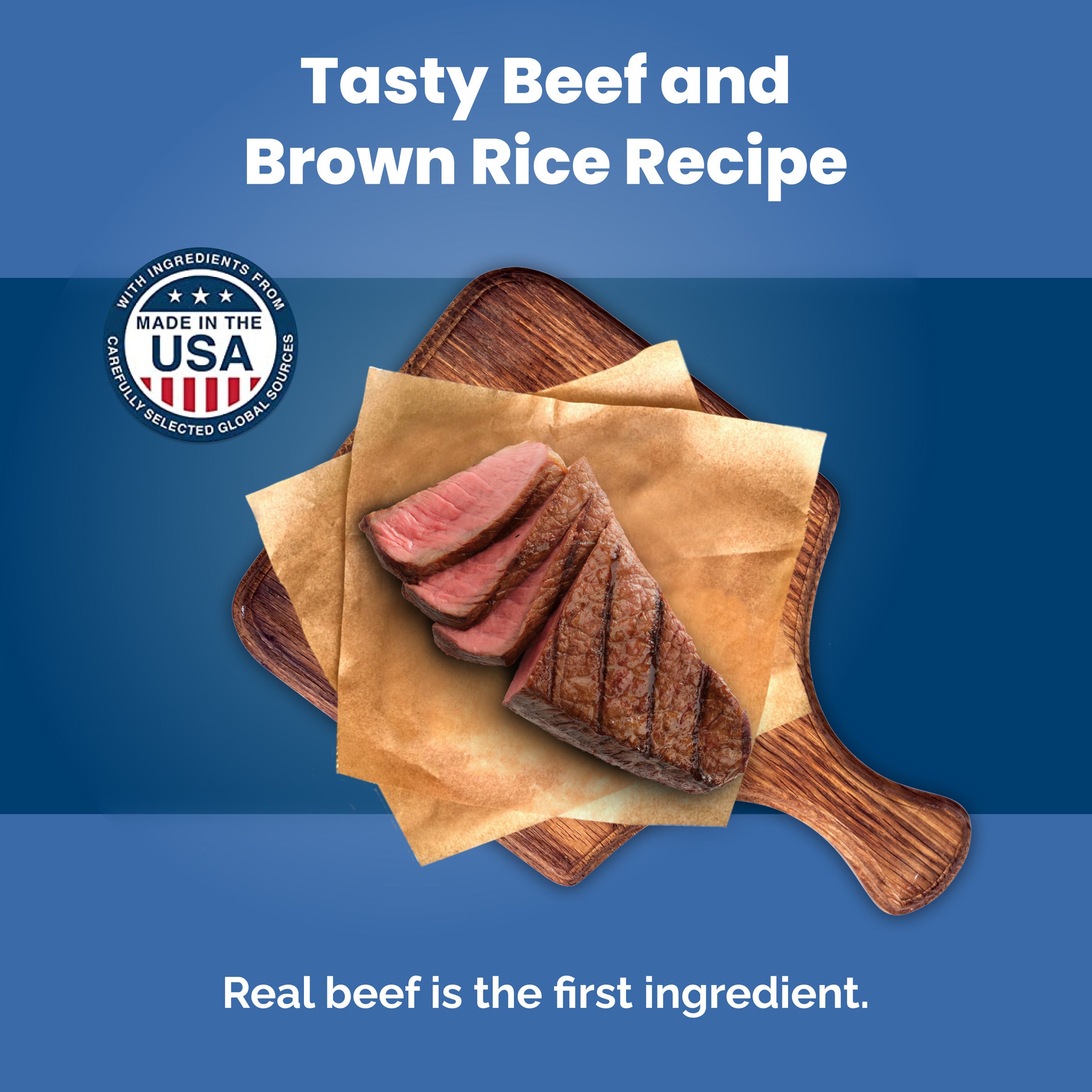 Shop / Blue Buffalo / Blue Buffalo Life Protection Formula Adult Dry Dog Food, Helps Build and Maintain Strong Muscles, Made with Natural Ingredients, Beef & Brown Rice Recipe, 5-lb Bag Blue Buffalo Life Protection Formula Adult Dry Dog Food, Helps Build and Maintain Strong Muscles, Made with Natural Ingredients, Beef & Brown Rice Recipe, 5-lb Bag Blue Buffalo 5lb $17.99 5lb Purchase Options Free In-Store Pick Up Not Available Save 20% on orders $100+ Set your store for inventory and store pickup details Zip Code Search Same-day Delivery* No minimum charge for delivery orders. *Order before 2pm and have it delivered today. Orders placed after 2pm will be delivered the next day. Must be inside delivery radius. Zip Code Unfortunately delivery is not available to this address. In order to ensure the best availability accuracy, changing your selected store will remove all items from your cart. You will need to re-add these items with your newly selected store if you choose to continue. Continue Cancel Ship it to Me Quantity Add To Cart Feeding guide disclaimer ✕ Feeding guides provide a starting point for the amount of food to give your pet each day. We recommend that you keep your pet in ideal body condition and not allow them to become overweight. The amount of food your pet needs can vary based on age, activity level or other food and treats given, so be sure to work with your veterinarian to determine an appropriate weight for your pet, and to make any necessary adjustments to their feeding. Information Formulated for the health and well-being of adult dogs, BLUE Life Protection Formula Beef and Brown Rice dry dog food is made with the finest natural ingredients enhanced with vitamins, minerals, and other nutrients. It’s a high-quality, balanced recipe you can both feel great about. Designed to help your dog thrive, this formula starts with real beef and contains no chicken (or poultry) by-product meals, no corn, wheat, or soy, and no artificial flavors or preservatives. Like all BLUE dry foods, BLUE Life Protection Formula includes exclusive, antioxidant-rich LifeSource Bits to support a healthy immune system in your adult dog. Give your dog the balanced nutrition of BLUE Life Protection Formula today. BLUE Life Protection Formula is brought to you by Blue Buffalo, the leader in natural pet food. Blue Buffalo makes premium-quality pet foods featuring real meat, fruit, and vegetables. Love them like family. Feed them like family. Ingredients Deboned Beef, Chicken Meal, Brown Rice, Barley, Oatmeal, Peas, Chicken Fat(preserved with Mixed Tocopherols), Flaxseed (source of Omega 6 Fatty Acids),Natural Flavor, Fish Meal (source of Omega 3 Fatty Acids), Dried Tomato Pomace,Pea Protein, Salt, Direct Dehydrated Alfalfa Pellets, Potassium Chloride, DriedChicory Root, Potatoes, Pea Fiber, Alfalfa Nutrient Concentrate, CalciumCarbonate, L-Threonine, Choline Chloride, DL-Methionine, preserved with MixedTocopherols, Sweet Potatoes, Carrots, Garlic, Taurine, Zinc Amino Acid Chelate,Zinc Sulfate, Vegetable Juice for color, Ferrous Sulfate, Vitamin E Supplement,Iron Amino Acid Chelate, Blueberries, Cranberries, Barley Grass, Parsley,Turmeric, Dried Kelp, Glucosamine Hydrochloride, Yucca Schidigera Extract,Niacin (Vitamin B3), Calcium Pantothenate (Vitamin B5), Copper Sulfate,L-Ascorbyl-2-Polyphosphate (source of Vitamin C), L-Lysine, Biotin (Vitamin B7),L-Carnitine, Vitamin A Supplement, Copper Amino Acid Chelate, Manganese Sulfate,Manganese Amino Acid Chelate, Thiamine Mononitrate (Vitamin B1), Riboflavin(Vitamin B2), Vitamin D3 Supplement, Vitamin B12 Supplement, PyridoxineHydrochloride (Vitamin B6), Calcium Iodate, Dried Yeast, Dried Enterococcusfaecium fermentation product, Dried Lactobacillus acidophilus fermentationproduct, Dried Aspergillus niger fermentation extract, Dried Trichodermalongibrachiatum fermentation extract, Dried Bacillus subtilis fermentationextract, Folic Acid (Vitamin B9), Sodium Selenite, Oil of Rosemary Guaranteed Analysis Crude Protein 24 % min Crude Fat 14 % min Crude Fiber 5 % max Moisture 10 % max Calcium 1 % min Phosphorus 0.7 % min Omega 3 Fatty Acids* 0.5 % min Omega 6 Fatty Acids* 2 % min Glucosamine* 400 mg/kg min *Not recognized as an essential nutrient by AAFCO Nutrient Profiles Customers also liked Customer Reviews
