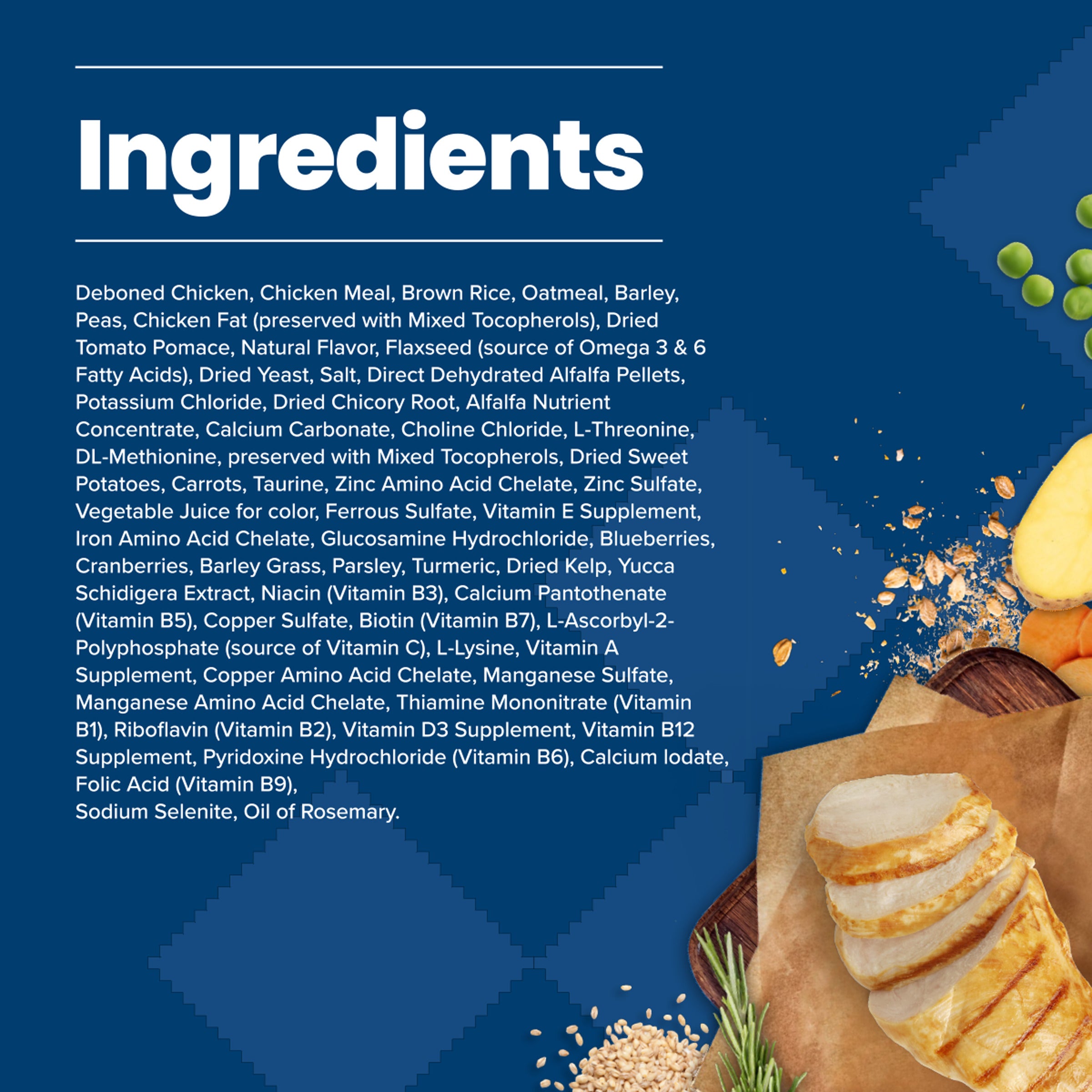 Shop / Blue Buffalo / Blue Buffalo Life Protection Formula Adult Dry Dog Food, Helps Build and Maintain Strong Muscles, Made with Natural Ingredients, Chicken & Brown Rice Recipe, 30-lb Bag Blue Buffalo Life Protection Formula Adult Dry Dog Food, Helps Build and Maintain Strong Muscles, Made with Natural Ingredients, Chicken & Brown Rice Recipe, 30-lb Bag Blue Buffalo 30lb $67.99 30lb Purchase Options Free In-Store Pick Up Not Available Save 20% on orders $100+ Set your store for inventory and store pickup details Zip Code Search Same-day Delivery* No minimum charge for delivery orders. *Order before 2pm and have it delivered today. Orders placed after 2pm will be delivered the next day. Must be inside delivery radius. Zip Code Unfortunately delivery is not available to this address. In order to ensure the best availability accuracy, changing your selected store will remove all items from your cart. You will need to re-add these items with your newly selected store if you choose to continue. Continue Cancel Ship it to Me Quantity Add To Cart Feeding guide disclaimer ✕ Feeding guides provide a starting point for the amount of food to give your pet each day. We recommend that you keep your pet in ideal body condition and not allow them to become overweight. The amount of food your pet needs can vary based on age, activity level or other food and treats given, so be sure to work with your veterinarian to determine an appropriate weight for your pet, and to make any necessary adjustments to their feeding. Information Formulated for the health and well-being of adult dogs, BLUE Life Protection Formula Chicken and Brown Rice dry dog food is made with the finest natural ingredients enhanced with vitamins, minerals, and other nutrients. It’s a high-quality, balanced recipe you can both feel great about. Designed to help your dog thrive, this formula starts with real chicken and contains no chicken (or poultry) by-product meals, no corn, wheat, or soy, and no artificial flavors or preservatives. Like all BLUE dry foods, BLUE Life Protection Formula includes exclusive, antioxidant-rich LifeSource Bits to support a healthy immune system in your adult dog. Give your dog the balanced nutrition of BLUE Life Protection Formula today. BLUE Life Protection Formula is brought to you by Blue Buffalo, the leader in natural pet food. Blue Buffalo makes premium-quality pet foods featuring real meat, fruit, and vegetables. Love them like family. Feed them like family. Ingredients Deboned Chicken, Chicken Meal, Brown Rice, Oatmeal, Barley, Peas, Chicken Fat (preserved with Mixed Tocopherols), Dried Tomato Pomace, Natural Flavor, Flaxseed (source of Omega 3 & 6 Fatty Acids), Dried Yeast, Salt, Direct Dehydrated Alfalfa Pellets, Potassium Chloride, Dried Chicory Root, Alfalfa Nutrient Concentrate, Calcium Carbonate, Choline Chloride, L-Threonine, DL-Methionine, preserved with Mixed Tocopherols, Dried Sweet Potatoes, Carrots, Taurine, Zinc Amino Acid Chelate, Zinc Sulfate, Vegetable Juice for color, Ferrous Sulfate, Vitamin E Supplement, Iron Amino Acid Chelate, Glucosamine Hydrochloride, Blueberries, Cranberries, Barley Grass, Parsley, Turmeric, Dried Kelp, Yucca Schidigera Extract, Niacin (Vitamin B3), Calcium Pantothenate (Vitamin B5), Copper Sulfate, Biotin (Vitamin B7), L-Ascorbyl-2-Polyphosphate (source of Vitamin C), L-Lysine, Vitamin A Supplement, Copper Amino Acid Chelate, Manganese Sulfate, Manganese Amino Acid Chelate, Thiamine Mononitrate (Vitamin B1), Riboflavin (Vitamin B2), Vitamin D3 Supplement, Vitamin B12 Supplement, Pyridoxine Hydrochloride (Vitamin B6), Calcium Iodate, Folic Acid (Vitamin B9), Sodium Selenite, Oil of Rosemary. Guaranteed Analysis Crude Protein 24 % min Crude Fat 14 % min Crude Fiber 5 % max Moisture 10 % max Calcium 1 % min Phosphorus 0.7 % min Omega 3 Fatty Acids* 0.5 % min Omega 6 Fatty Acids* 3 % min Glucosamine* 400 mg/kg min *Not recognized as an essential nutrient by AAFCO Nutrient Profiles. Customers also liked Customer Reviews