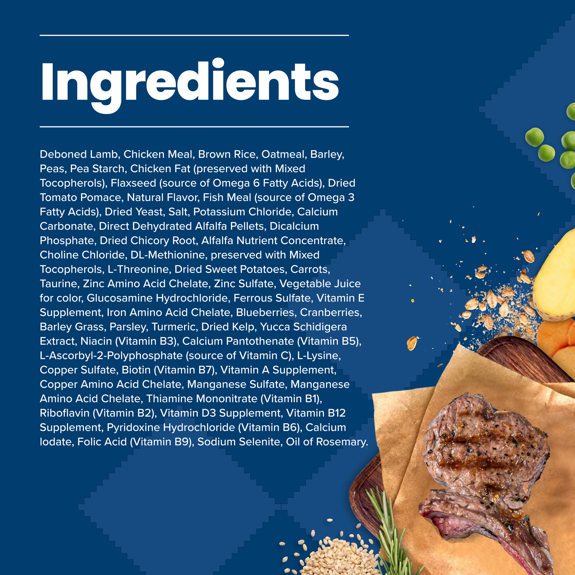 Shop / Blue Buffalo / Blue Buffalo Life Protection Formula Adult Dry Dog Food, Helps Build and Maintain Strong Muscles, Made with Natural Ingredients, Lamb & Brown Rice Recipe, 5-lb Bag Blue Buffalo Life Protection Formula Adult Dry Dog Food, Helps Build and Maintain Strong Muscles, Made with Natural Ingredients, Lamb & Brown Rice Recipe, 5-lb Bag Blue Buffalo 5lb $17.99 5lb Purchase Options Free In-Store Pick Up Not Available Save 20% on orders $100+ Set your store for inventory and store pickup details Zip Code Search Same-day Delivery* No minimum charge for delivery orders. *Order before 2pm and have it delivered today. Orders placed after 2pm will be delivered the next day. Must be inside delivery radius. Zip Code Unfortunately delivery is not available to this address. In order to ensure the best availability accuracy, changing your selected store will remove all items from your cart. You will need to re-add these items with your newly selected store if you choose to continue. Continue Cancel Ship it to Me Quantity Add To Cart Feeding guide disclaimer ✕ Feeding guides provide a starting point for the amount of food to give your pet each day. We recommend that you keep your pet in ideal body condition and not allow them to become overweight. The amount of food your pet needs can vary based on age, activity level or other food and treats given, so be sure to work with your veterinarian to determine an appropriate weight for your pet, and to make any necessary adjustments to their feeding. Information Formulated for the health and well-being of adult dogs, BLUE Life Protection Formula Lamb and Brown Rice dry dog food is made with the finest natural ingredients enhanced with vitamins, minerals, and other nutrients. It’s a high-quality, balanced recipe you can both feel great about. Designed to help your dog thrive, this formula starts with real lamb and contains no chicken (or poultry) by-product meals, no corn, wheat, or soy, and no artificial flavors or preservatives. Like all BLUE dry foods, BLUE Life Protection Formula includes exclusive, antioxidant-rich LifeSource Bits to support a healthy immune system in your adult dog. Give your dog the balanced nutrition of BLUE Life Protection Formula today. BLUE Life Protection Formula is brought to you by Blue Buffalo, the leader in natural pet food. Blue Buffalo makes premium-quality pet foods featuring real meat, fruit, and vegetables. Love them like family. Feed them like family. Ingredients Deboned Lamb, Chicken Meal, Brown Rice, Oatmeal, Barley, Peas, Pea Starch, Chicken Fat (preserved with Mixed Tocopherols), Flaxseed (source of Omega 6 Fatty Acids), Dried Tomato Pomace, Natural Flavor, Fish Meal (source of Omega 3 Fatty Acids), Dried Yeast, Salt, Potassium Chloride, Calcium Carbonate, Direct Dehydrated Alfalfa Pellets, Dicalcium Phosphate, Dried Chicory Root, Alfalfa Nutrient Concentrate, Choline Chloride, DL-Methionine, preserved with Mixed Tocopherols, L-Threonine, Dried Sweet Potatoes, Carrots, Taurine, Zinc Amino Acid Chelate, Zinc Sulfate, Vegetable Juice for color, Glucosamine Hydrochloride, Ferrous Sulfate, Vitamin E Supplement, Iron Amino Acid Chelate, Blueberries, Cranberries, Barley Grass, Parsley, Turmeric, Dried Kelp, Yucca Schidigera Extract, Niacin (Vitamin B3), Calcium Pantothenate (Vitamin B5), L-Ascorbyl-2-Polyphosphate (source of Vitamin C), L-Lysine, Copper Sulfate, Biotin (Vitamin B7), Vitamin A Supplement, Copper Amino Acid Chelate, Manganese Sulfate, Manganese Amino Acid Chelate, Thiamine Mononitrate (Vitamin B1), Riboflavin (Vitamin B2), Vitamin D3 Supplement, Vitamin B12 Supplement, Pyridoxine Hydrochloride (Vitamin B6), Calcium Iodate, Folic Acid (Vitamin B9), Sodium Selenite, Oil of Rosemary. Guaranteed Analysis Crude Protein 22 % min Crude Fat 14 % min Crude Fiber 5 % max Moisture 10 % max Calcium 1 % min Phosphorus 0.7 % min Omega 3 Fatty Acids* 0.75 % min Omega 6 Fatty Acids* 2 % min Glucosamine* 400 mg/kg min *Not recognized as an essential nutrient by AAFCO Nutrient Profiles Customers also liked Customer Reviews