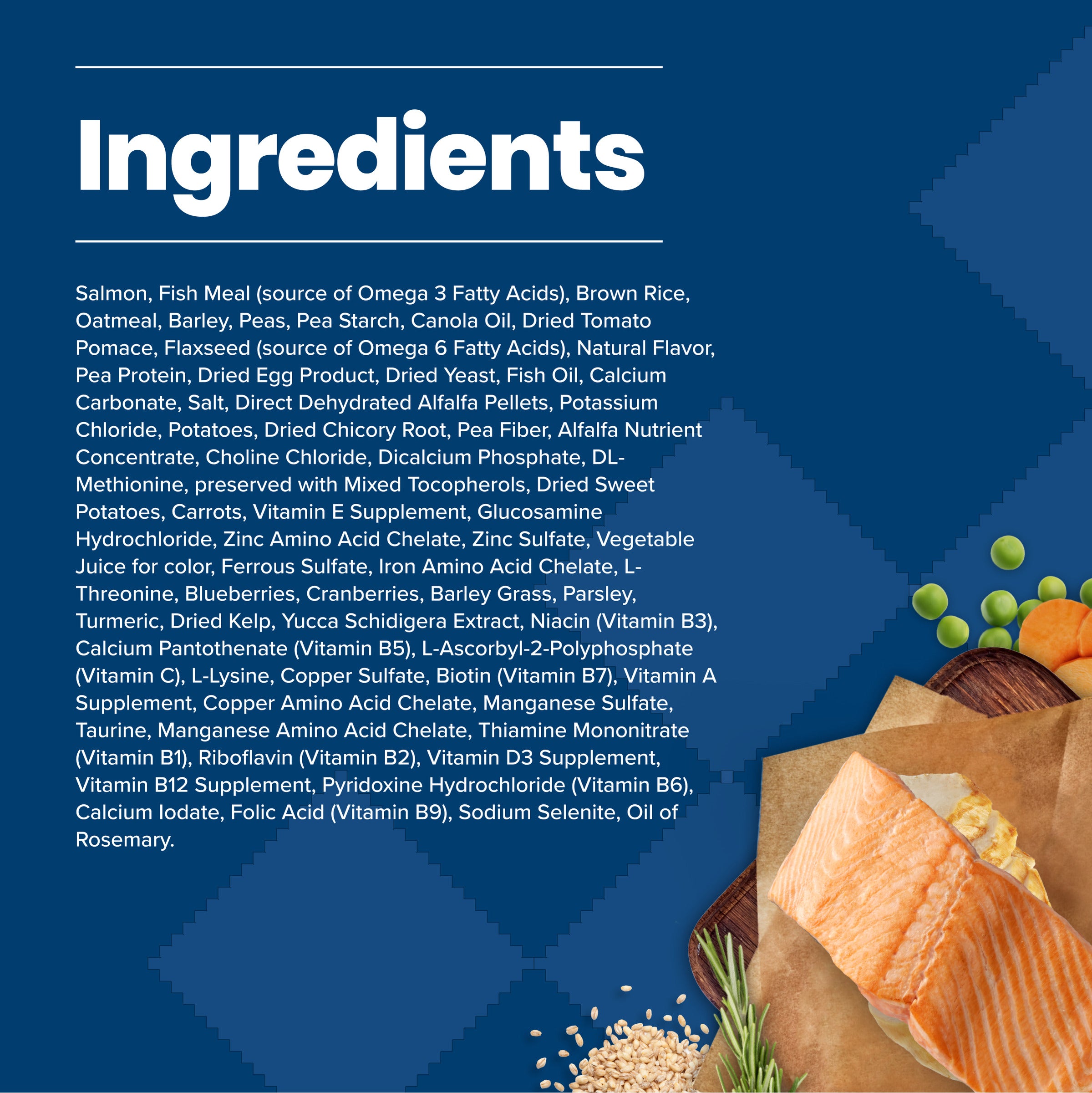Shop / Blue Buffalo / Blue Buffalo Life Protection Formula Adult Dry Dog Food, Helps Build and Maintain Strong Muscles, Made with Natural Ingredients, Salmon & Brown Rice Recipe, 5-lb. Bag Blue Buffalo Life Protection Formula Adult Dry Dog Food, Helps Build and Maintain Strong Muscles, Made with Natural Ingredients, Salmon & Brown Rice Recipe, 5-lb. Bag Blue Buffalo 5lb $18.99 5lb Purchase Options Free In-Store Pick Up Not Available Save 20% on orders $100+ Set your store for inventory and store pickup details Zip Code Search Same-day Delivery* No minimum charge for delivery orders. *Order before 2pm and have it delivered today. Orders placed after 2pm will be delivered the next day. Must be inside delivery radius. Zip Code Unfortunately delivery is not available to this address. In order to ensure the best availability accuracy, changing your selected store will remove all items from your cart. You will need to re-add these items with your newly selected store if you choose to continue. Continue Cancel Ship it to Me Quantity Add To Cart Feeding guide disclaimer ✕ Feeding guides provide a starting point for the amount of food to give your pet each day. We recommend that you keep your pet in ideal body condition and not allow them to become overweight. The amount of food your pet needs can vary based on age, activity level or other food and treats given, so be sure to work with your veterinarian to determine an appropriate weight for your pet, and to make any necessary adjustments to their feeding. Information Formulated for the health and well-being of adult dogs, BLUE Life Protection Formula Salmon and Brown Rice dry dog food is made with the finest natural ingredients enhanced with vitamins, minerals, and other nutrients. It’s a high-quality, balanced recipe you can both feel great about. Designed to help your dog thrive, this formula starts with real salmon, is chicken-free, and contains no chicken (or poultry) by-product meals, no corn, wheat, or soy, and no artificial flavors or preservatives. Like all BLUE dry foods, BLUE Life Protection Formula includes exclusive, antioxidant-rich LifeSource Bits to support a healthy immune system in your adult dog. Give your dog the balanced nutrition of BLUE Life Protection Formula today. BLUE Life Protection Formula is brought to you by Blue Buffalo, the leader in natural pet food. Blue Buffalo makes premium-quality pet foods featuring real meat, fruit, and vegetables. Love them like family. Feed them like family. Ingredients Salmon, Fish Meal (source of Omega 3 Fatty Acids), Brown Rice, Oatmeal, Barley, Peas, Pea Starch, Canola Oil, Dried Tomato Pomace, Flaxseed (source of Omega 6 Fatty Acids), Natural Flavor, Pea Protein, Dried Egg Product, Dried Yeast, Fish Oil, Calcium Carbonate, Salt, Direct Dehydrated Alfalfa Pellets, Potassium Chloride, Potatoes, Dried Chicory Root, Pea Fiber, Alfalfa Nutrient Concentrate, Choline Chloride, Dicalcium Phosphate, DL-Methionine, preserved with Mixed Tocopherols, Dried Sweet Potatoes, Carrots, Vitamin E Supplement, Glucosamine Hydrochloride, Zinc Amino Acid Chelate, Zinc Sulfate, Vegetable Juice for color, Ferrous Sulfate, Iron Amino Acid Chelate, L-Threonine, Blueberries, Cranberries, Barley Grass, Parsley, Turmeric, Dried Kelp, Yucca Schidigera Extract, Niacin (Vitamin B3), Calcium Pantothenate (Vitamin B5), L-Ascorbyl-2-Polyphosphate (Vitamin C), L-Lysine, Copper Sulfate, Biotin (Vitamin B7), Vitamin A Supplement, Copper Amino Acid Chelate, Manganese Sulfate, Taurine, Manganese Amino Acid Chelate, Thiamine Mononitrate (Vitamin B1), Riboflavin (Vitamin B2), Vitamin D3 Supplement, Vitamin B12 Supplement, Pyridoxine Hydrochloride (Vitamin B6), Calcium Iodate, Folic Acid (Vitamin B9), Sodium Selenite, Oil of Rosemary. Guaranteed Analysis Crude Protein 22.0% min. Crude Fat 14.0% min. Crude Fiber 5.0% max. Moisture 10.0% max. Calcium 1.0% min. Phosphorus 0.7% min. Omega 3 Fatty Acids* 1.0% min. Omega 6 Fatty Acids* 2.0% min. Glucosamine* 400 mg/kg min. *Not recognized as an essential nutrient by the AAFCO Dog Food Nutrient Profiles. Customers also liked Customer Reviews