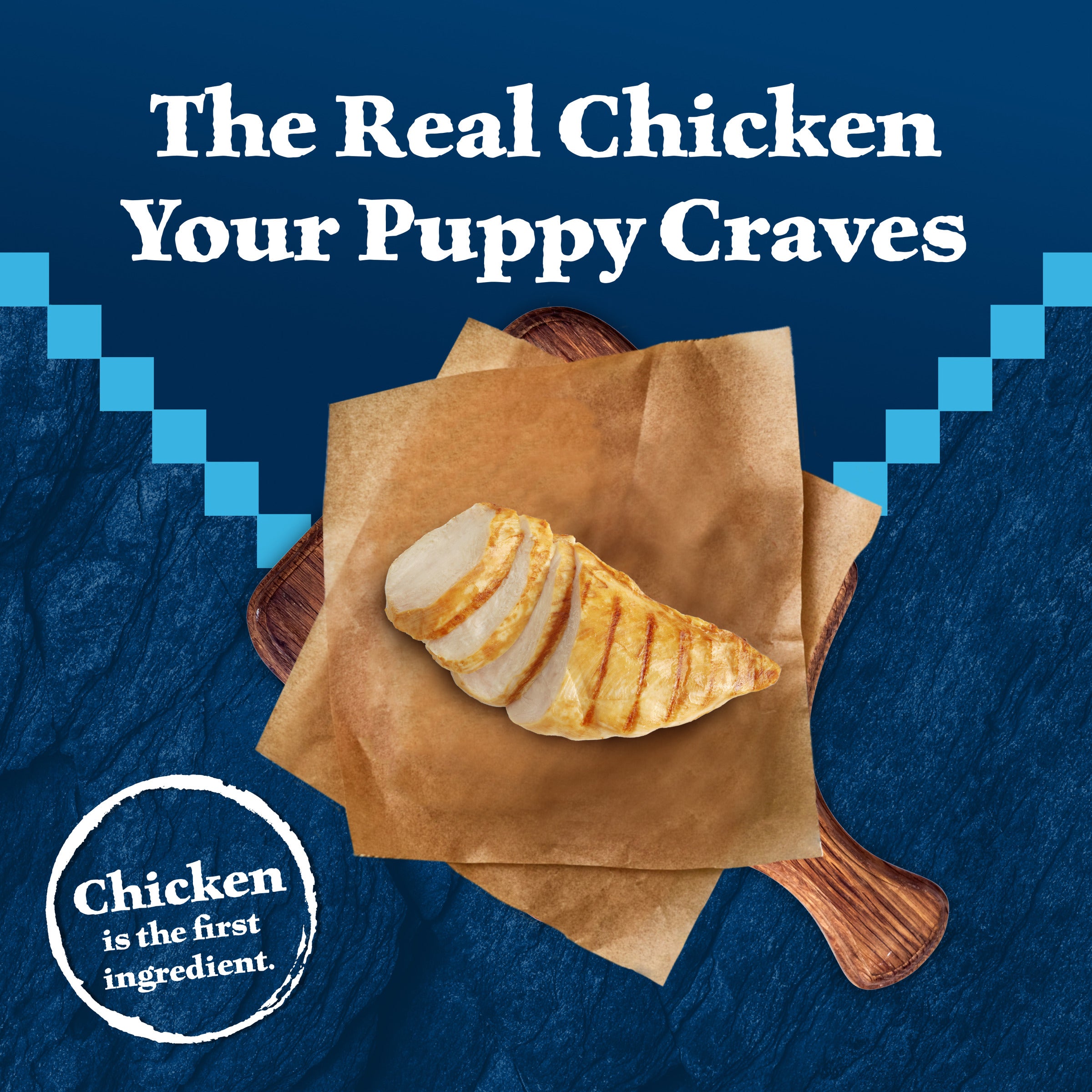 Shop / Blue Buffalo / Blue Buffalo Wilderness High-Protein Natural Dry Food for Puppies, Chicken Recipe, 24-lb Bag Blue Buffalo Wilderness High-Protein Natural Dry Food for Puppies, Chicken Recipe, 24-lb Bag Blue Buffalo 24lb $76.99 24lb Purchase Options Free In-Store Pick Up Not Available Save 20% on orders $100+ Set your store for inventory and store pickup details Zip Code Search Same-day Delivery* No minimum charge for delivery orders. *Order before 2pm and have it delivered today. Orders placed after 2pm will be delivered the next day. Must be inside delivery radius. Zip Code Unfortunately delivery is not available to this address. In order to ensure the best availability accuracy, changing your selected store will remove all items from your cart. You will need to re-add these items with your newly selected store if you choose to continue. Continue Cancel Ship it to Me Quantity Add To Cart Feeding guide disclaimer ✕ Feeding guides provide a starting point for the amount of food to give your pet each day. We recommend that you keep your pet in ideal body condition and not allow them to become overweight. The amount of food your pet needs can vary based on age, activity level or other food and treats given, so be sure to work with your veterinarian to determine an appropriate weight for your pet, and to make any necessary adjustments to their feeding. Information BLUE Wilderness Dry Puppy Food is formulated with 75% protein from animal sources and real chicken as the first ingredient to satisfy your puppy's wild side. Blue Buffalo puppy food also contains real fruits, vegetables, and key nutrients to promote healthy cognitive development and muscle growth. Like all Blue Buffalo dog food recipes, this BLUE Wilderness recipe is formulated without any chicken (or poultry) by-product meals. This natural dry dog food is also free of corn, wheat, soy, artificial flavors, and preservatives. With BLUE Wilderness puppy food, you can feel great knowing your puppy is off to a strong start. Ingredients Deboned Chicken, Chicken Meal, Dried Chicken, Oatmeal, Barley, Salmon Meal, Brown Rice, Dried Tomato Pomace, Fish Meal (source of Omega 3 Fatty Acids), Chicken Fat (preserved with Mixed Tocopherols), Natural Flavor, Flaxseed (source of Omega 6 Fatty Acids), Dried Egg Product, Potatoes, Fish Oil (source of ARA-Arachidonic Acid and DHA-Docosahexaenoic Acid), Salt, Direct Dehydrated Alfalfa Pellets, Calcium Carbonate, Potassium Chloride, L-Threonine, Alfalfa Nutrient Concentrate, Choline Chloride, Dried Chicory Root, DL-Methionine, Vitamin E Supplement, preserved with Mixed Tocopherols, Sweet Potatoes, Carrots, Zinc Amino Acid Chelate, Zinc Sulfate, Vegetable Juice for color, Ferrous Sulfate, Iron Amino Acid Chelate, Blueberries, Cranberries, Barley Grass, Parsley, Turmeric, Dried Kelp, Yucca Schidigera Extract, Niacin (Vitamin B3), Calcium Pantothenate (Vitamin B5), Copper Sulfate, Biotin (Vitamin B7), L-Ascorbyl-2-Polyphosphate (source of Vitamin C), L-Lysine, Vitamin A Supplement, Copper Amino Acid Chelate, Manganese Sulfate, Manganese Amino Acid Chelate, Taurine, Thiamine Mononitrate (Vitamin B1), Riboflavin (Vitamin B2), Vitamin D3 Supplement, Vitamin B12 Supplement, Pyridoxine Hydrochloride (Vitamin B6), Calcium Iodate, Dried Yeast, Dried Enterococcus faecium fermentation product, Dried Lactobacillus acidophilus fermentation product, Dried Aspergillus niger fermentation extract, Dried Trichoderma longibrachiatum fermentation extract, Dried Bacillus subtilis fermentation extract, Folic Acid (Vitamin B9), Sodium Selenite, Oil of Rosemary. Guaranteed Analysis Crude Protein min 36.0 %; Crude Fat min 16.0 %; Crude Fiber max 5.0 %; Moisture max 10.0 %; DHA min 0.15 %; Calcium min 1.2 %; Phosphorus min 1.0 %; Choline min 2750 mg/kg; *ARA min 0.05 %; *Omega 3 Fatty Acids min 1.0 %; *Omega 6 Fatty Acids min 2.75 %. *Not recognized as an essential nutrient by the AAFCO Dog Food Nutrient Profiles.. Customers also liked Customer Reviews