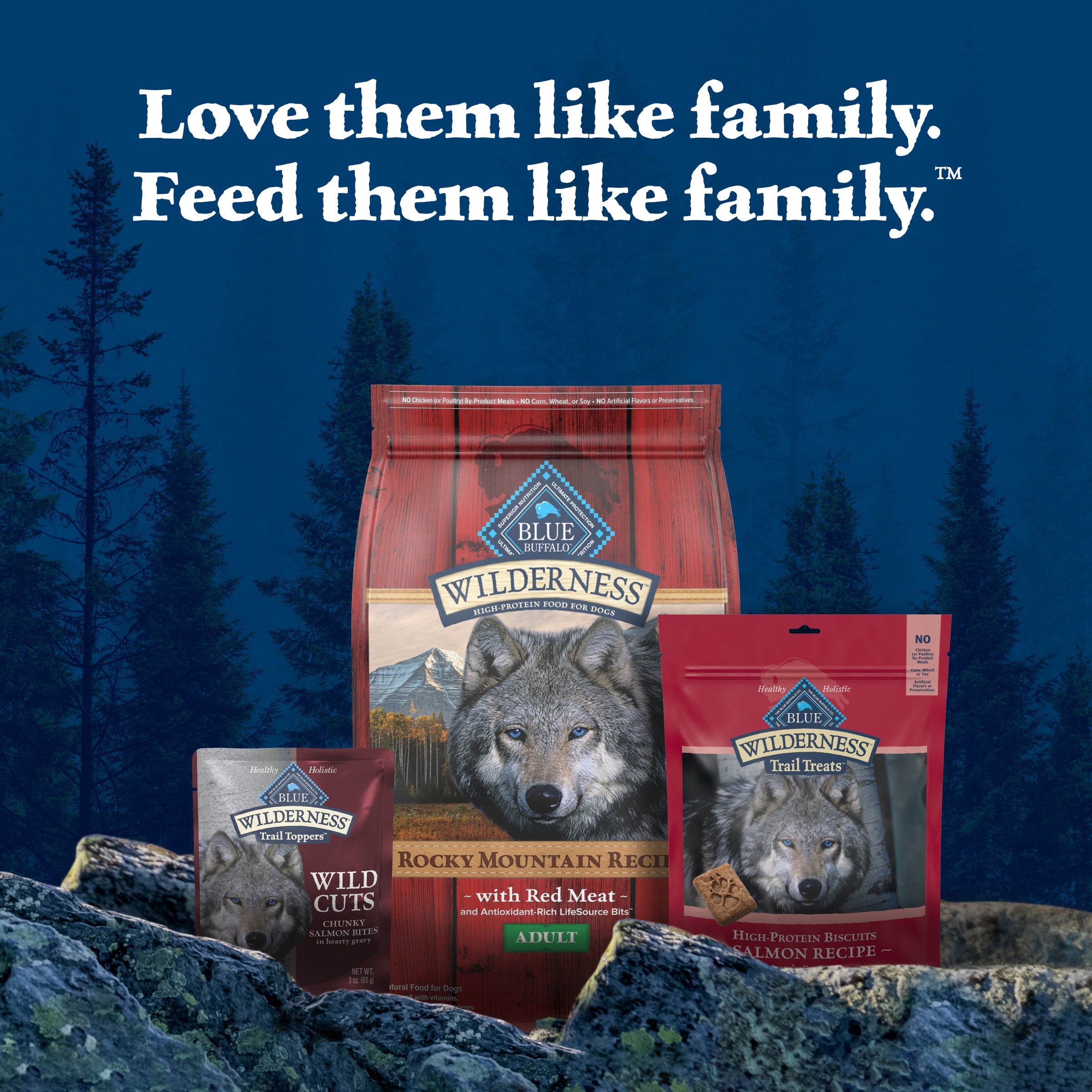 Shop / Blue Buffalo / Blue Buffalo Wilderness Trail Toppers Wild Cuts Natural High-Protein Dog Wet Food, Salmon Bites in Hearty Gravy, 3-oz Pouch Blue Buffalo Wilderness Trail Toppers Wild Cuts Natural High-Protein Dog Wet Food, Salmon Bites in Hearty Gravy, 3-oz Pouch Blue Buffalo 3oz $1.99 3oz Purchase Options Free In-Store Pick Up Not Available Save 20% on orders $100+ Set your store for inventory and store pickup details Zip Code Search Same-day Delivery* No minimum charge for delivery orders. *Order before 2pm and have it delivered today. Orders placed after 2pm will be delivered the next day. Must be inside delivery radius. Zip Code Unfortunately delivery is not available to this address. In order to ensure the best availability accuracy, changing your selected store will remove all items from your cart. You will need to re-add these items with your newly selected store if you choose to continue. Continue Cancel Ship it to Me Quantity Add To Cart Feeding guide disclaimer ✕ Feeding guides provide a starting point for the amount of food to give your pet each day. We recommend that you keep your pet in ideal body condition and not allow them to become overweight. The amount of food your pet needs can vary based on age, activity level or other food and treats given, so be sure to work with your veterinarian to determine an appropriate weight for your pet, and to make any necessary adjustments to their feeding. Information Treat your dog's wild side with BLUE Wilderness Trail Toppers Wild Cuts Natural Wet Dog Food. Made with high-quality salmon as the first ingredient, this grain-free wet dog food provides a delicious taste and the nutrients your dog needs to stay active. Mix these meal toppers into your dog's dry food for added flavor, or serve as a tasty treat between meals. And like all Blue Buffalo natural dog food recipes, BLUE Wilderness wet dog food toppers do not contain any chicken (or poultry) by-product meals. They are also free of corn, wheat, soy, artificial flavors, and preservatives. Ingredients Salmon, Chicken Broth, Water, Chicken Liver, Dried Egg Product, Potato Starch, Natural Flavor, Guar Gum, Sodium Phosphate, Salt, Sodium Carbonate. Guaranteed Analysis Crude Protein 8.0% min. Crude Fat 2.5% min. Crude Fiber 1.5% max. Moisture 82.0% max. Customers also liked Customer Reviews