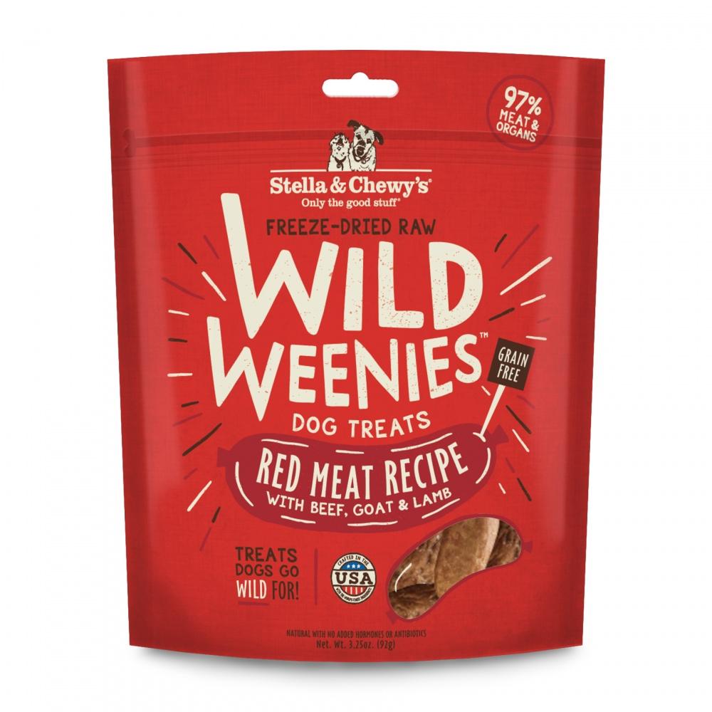 Shop / Buy Online Pickup In Store / Stella & Chewy's Wild Weenies Grain Free Red Meat Recipe Freeze Dried Raw Dog Treats Stella & Chewy's Wild Weenies Grain Free Red Meat Recipe Freeze Dried Raw Dog Treats Stella & Chewy's Weight: 3.25 oz $14.99 3.25-oz Purchase Options Free In-Store Pick Up Not Available Save 10% on orders $49+ Set your store for inventory and store pickup details Zip Code Search Same-day Delivery* No minimum charge for delivery orders. *Order before 2pm and have it delivered today. Orders placed after 2pm will be delivered the next day. Must be inside delivery radius. Zip Code Unfortunately delivery is not available to this address. In order to ensure the best availability accuracy, changing your selected store will remove all items from your cart. You will need to re-add these items with your newly selected store if you choose to continue. Continue Cancel Ship it to Me Quantity Add To Cart Feeding guide disclaimer ✕ Feeding guides provide a starting point for the amount of food to give your pet each day. We recommend that you keep your pet in ideal body condition and not allow them to become overweight. The amount of food your pet needs can vary based on age, activity level or other food and treats given, so be sure to work with your veterinarian to determine an appropriate weight for your pet, and to make any necessary adjustments to their feeding. Information Stella & Chewy's Freeze-Dried Raw Red Meat Wild Weenies Dog Treats are made with a beef, goat & lamb recipe in the USA. Wild Weenies are grain-free, gluten-free and include no artificial ingredients. Stella and Chewy's was built on a philosophy that feeding your pet a wholesome diet similar to what their ancestors enjoyed in the wild is the optimal way to help your pet thrive. These treats offer real raw nutrition & taste your dog will go wild for! Grain-free, beef, goat & lamb recipe, made in the USA. Ingredients Beef, beef liver, beef kidneys, sodium alginate, goat, lamb, tocopherols (preservative). Customers also liked Customer Reviews