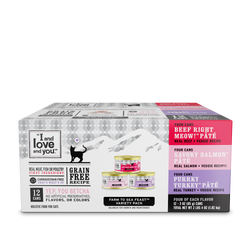 I and Love and You Beef, Right Meow!, Savory Salmon, and Purrky Turkey Pate Multi-Pack Canned Cat Food $18.99