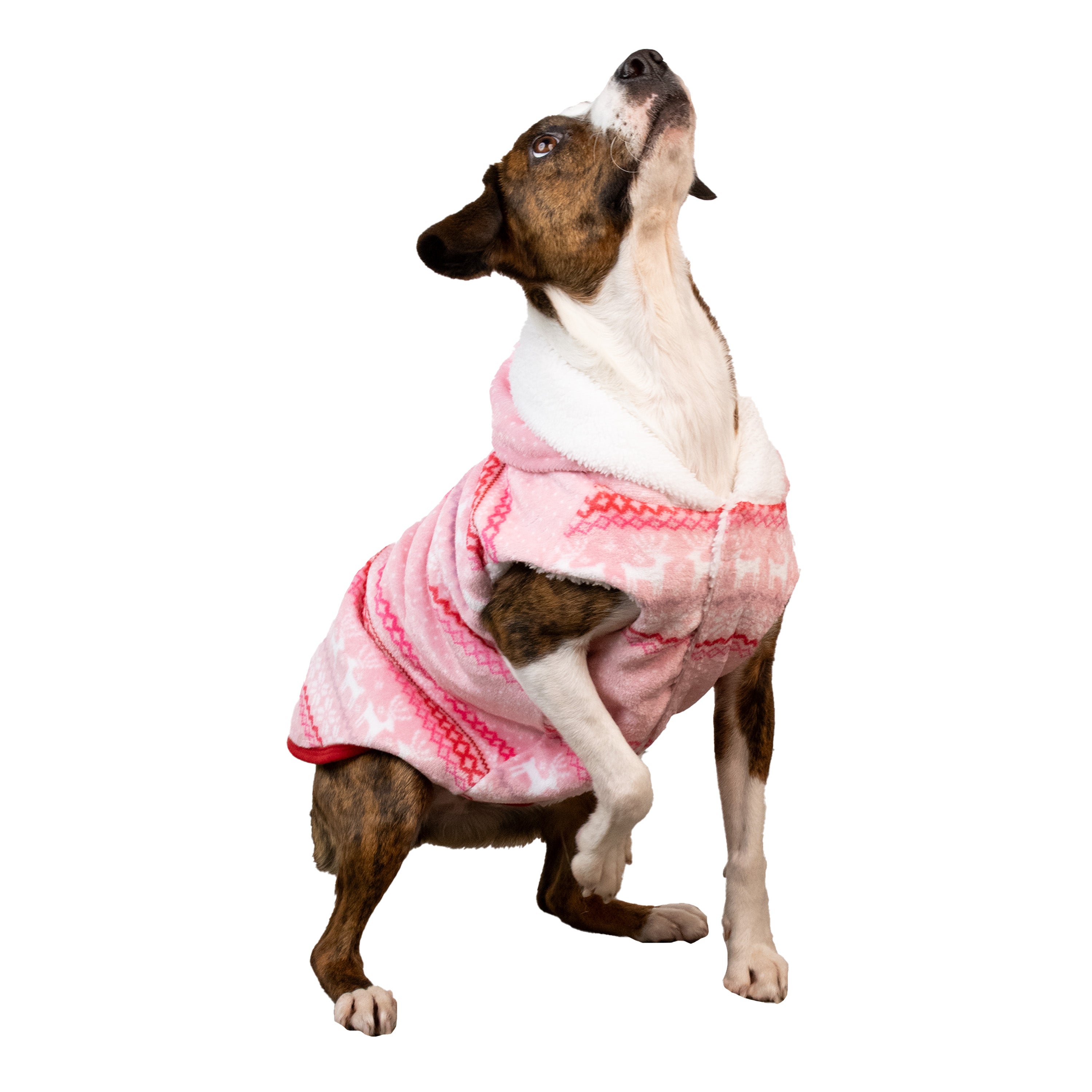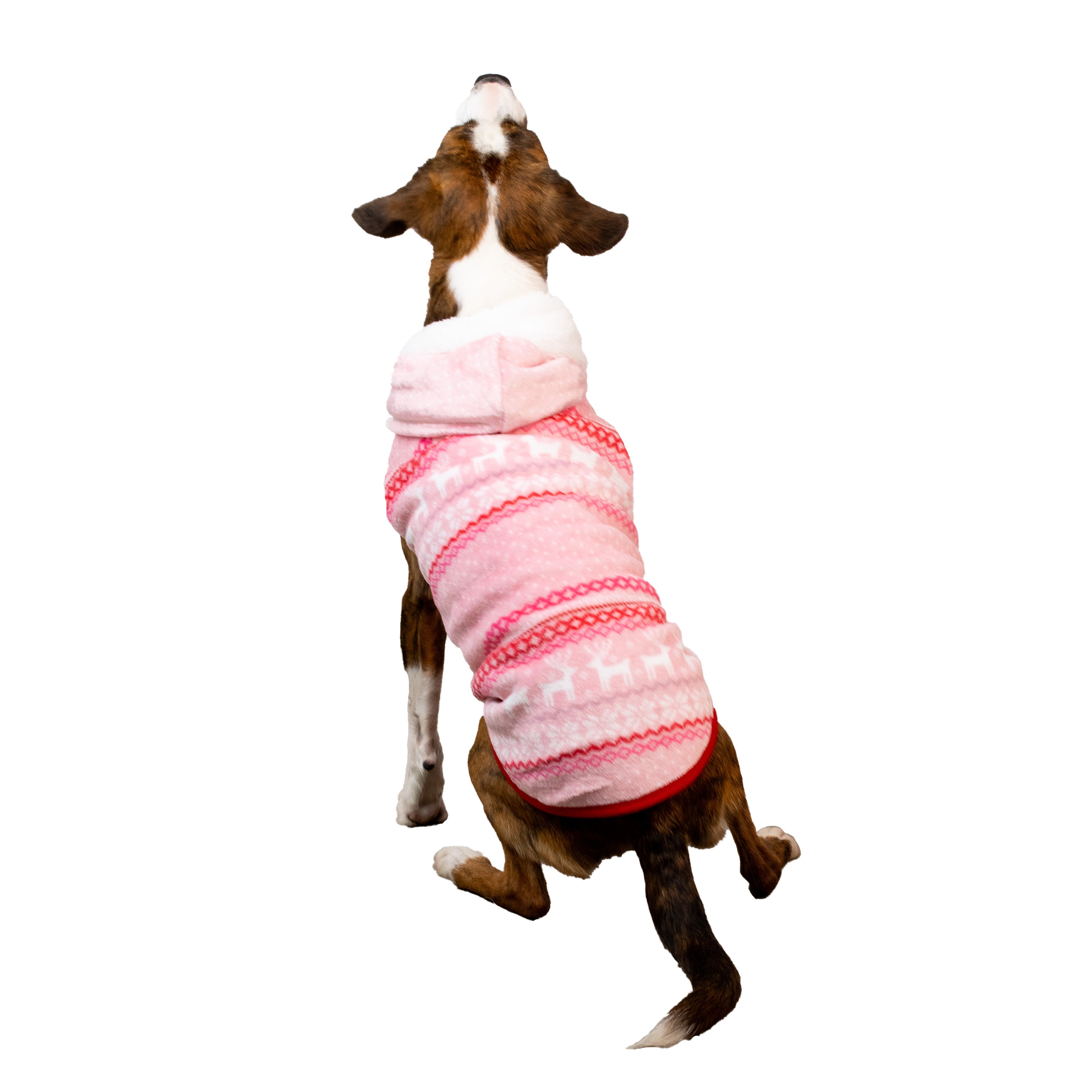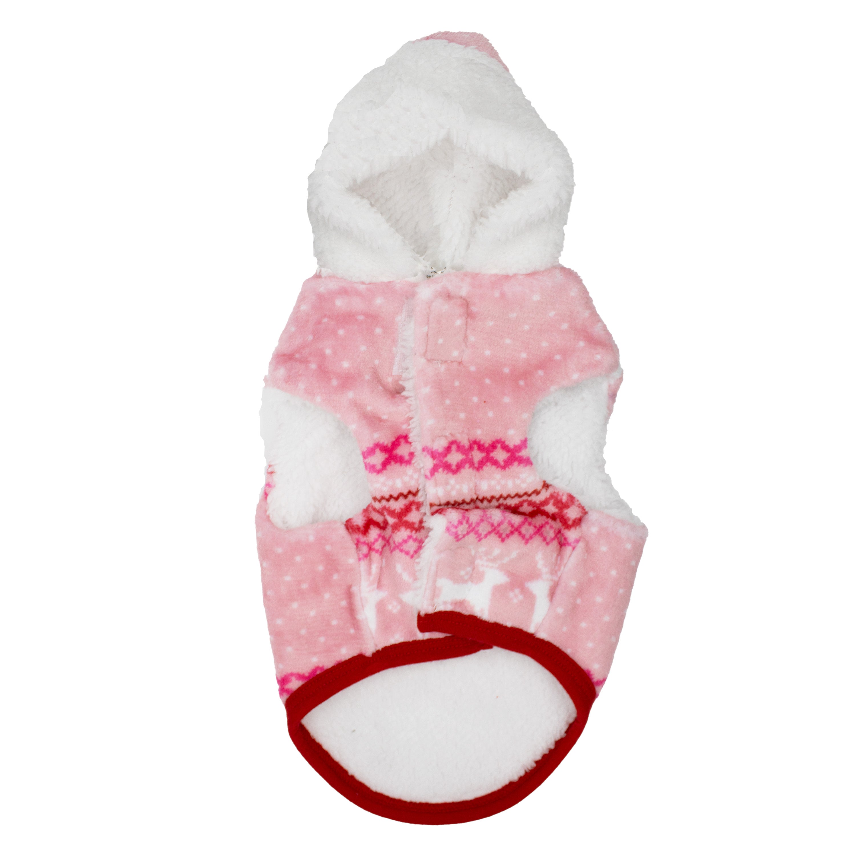 Shop / Clothing & Accessories / REINDEER FAIRISLE HOODIE REINDEER FAIRISLE HOODIE CELEBRATIONS BUTTONS & BONES $15.99 $19.99 XS S M L XL XS S M L XL Purchase Options Free In-Store Pick Up Not Available Save 20% on orders $100+ Set your store for inventory and store pickup details Zip Code Search Same-day Delivery* No minimum charge for delivery orders. *Order before 2pm and have it delivered today. Orders placed after 2pm will be delivered the next day. Must be inside delivery radius. Zip Code Unfortunately delivery is not available to this address. In order to ensure the best availability accuracy, changing your selected store will remove all items from your cart. You will need to re-add these items with your newly selected store if you choose to continue. Continue Cancel Ship it to Me Quantity Add To Cart Information Your pup will be the cutest thing under the tree this year in this Pink Fair Isle Fleece Hoodie! It is the perfect outfit for any festive gathering with friends, holiday photos with Santa, or taking a walk through the holiday lights. Designed with a warm fleece, sherpa lining, and a velcro closure for a perfect, snug fit, this coat will keep your pup cozy and fashionable on chilly days. Your furry friend will love wearing this snuggly pink hoodie for all the holiday fun! • Features a classic Fair Isle design with reindeer and snowflakes to get you in the holiday spirit. • Made from fleece and lined with sherpa to keep your pet warm and cozy. • Simple velcro closures makes this outfit easy to put on and take off. • Available in multiple sizes for dogs both big and small! Customers also liked Customer Reviews