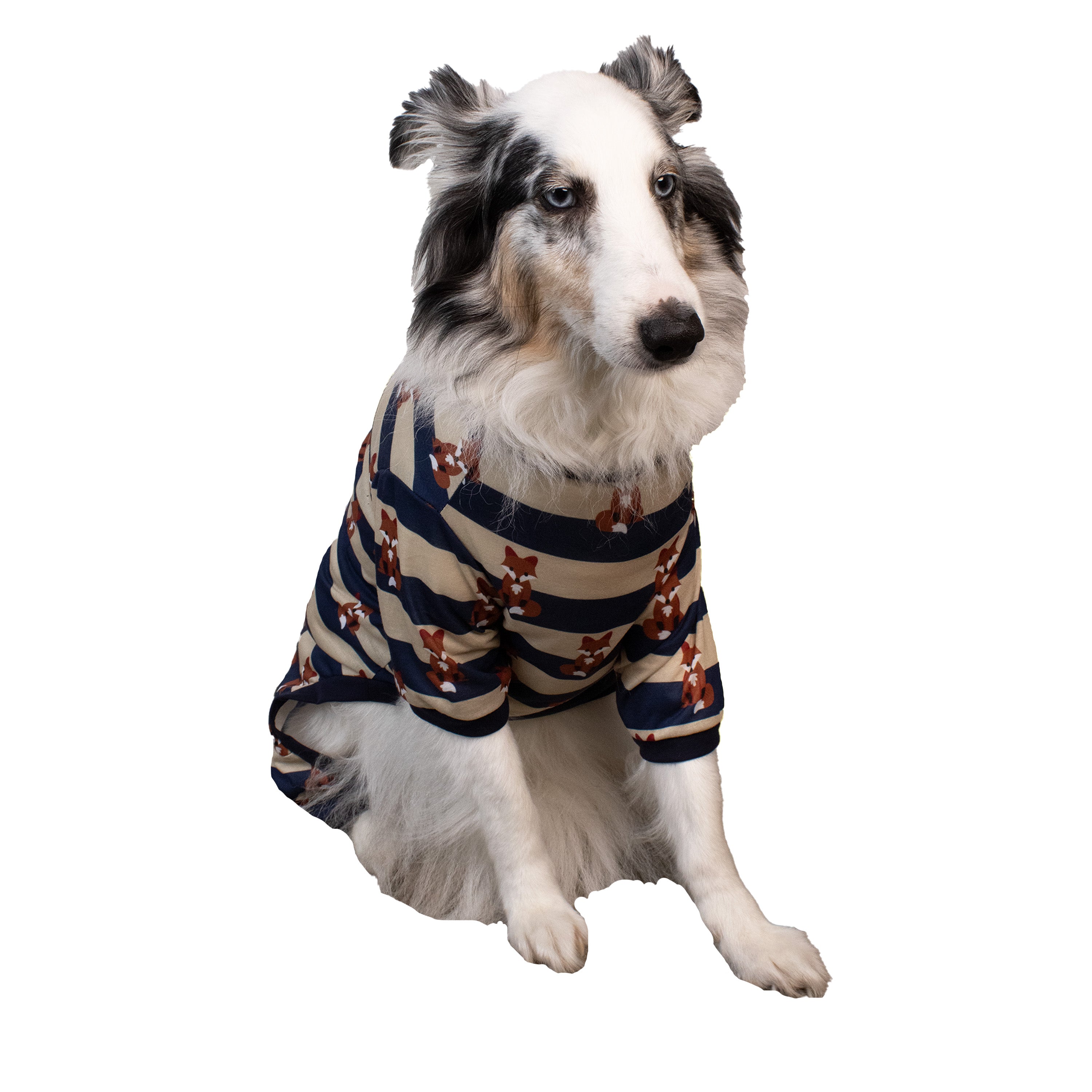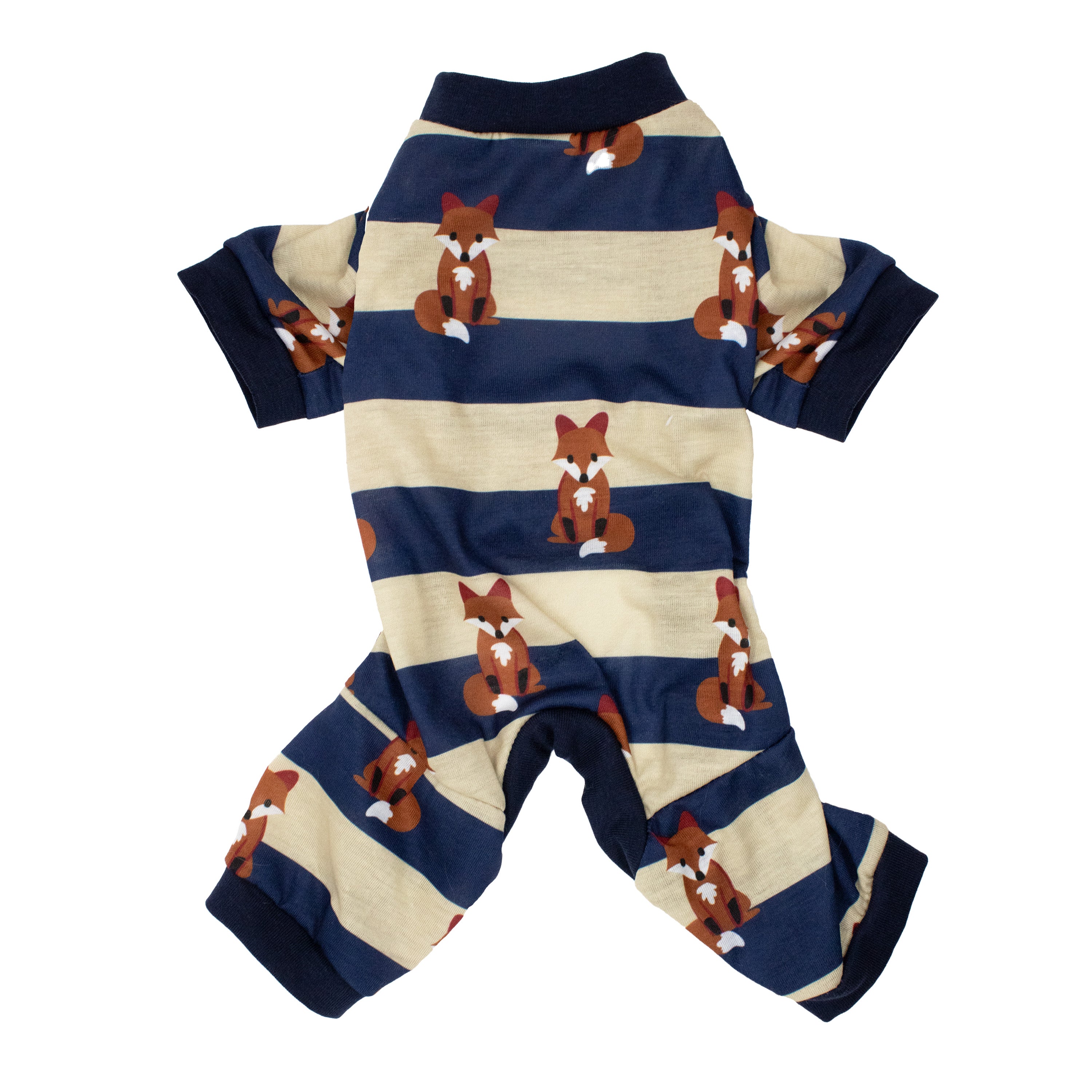 Shop / Clothing & Accessories / STRIPED FOX DOG PAJAMAS STRIPED FOX DOG PAJAMAS CELEBRATIONS BUTTONS & BONES $19.99 XS S M L XL XS S M L XL Purchase Options Free In-Store Pick Up Not Available Save 20% on orders $100+ Set your store for inventory and store pickup details Zip Code Search Same-day Delivery* No minimum charge for delivery orders. *Order before 2pm and have it delivered today. Orders placed after 2pm will be delivered the next day. Must be inside delivery radius. Zip Code Unfortunately delivery is not available to this address. In order to ensure the best availability accuracy, changing your selected store will remove all items from your cart. You will need to re-add these items with your newly selected store if you choose to continue. Continue Cancel Ship it to Me Quantity Add To Cart Information Have your pet looking cute as a button in the fetching striped fox printed PJs. Whether on an evening walk in the autumn air, or a night in lounging on the couch, your pup will stay warm and cozy. This adorable pajama onesie is the perfect addition to your furry friend's wardrobe year-round. Get ready for softer cuddles, wagging tails, and the perfect photo opportunity. • Features a fun fox print with stripes • Available in various sizes • Soft, light-weight fabric • Pullover design makes getting dressed up and dressed down fast and easy. • Easy to wash and care for when it’s time for a cleanup. Customers also liked Customer Reviews