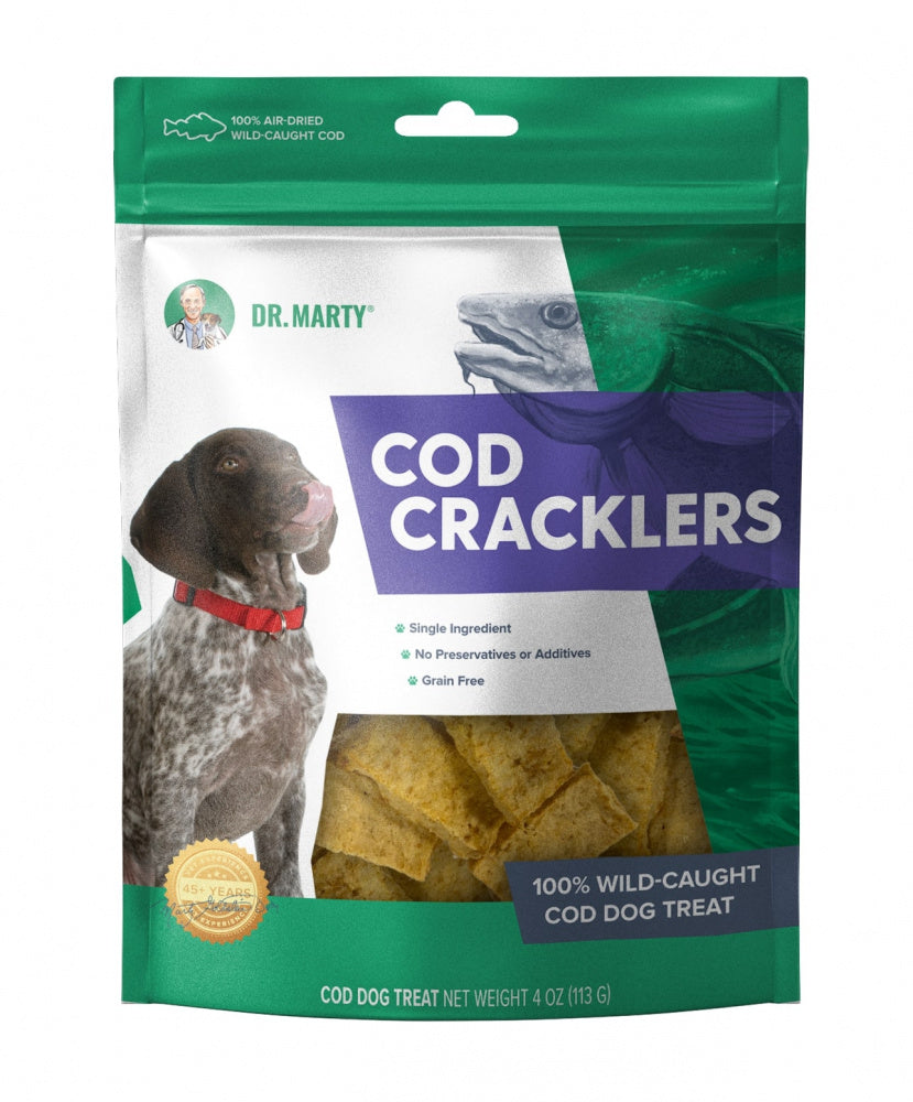 Shop / DOG / Dr. Marty Cod Cracklers Dog Treat Dr. Marty Cod Cracklers Dog Treat Dr. Marty Weight: 4 oz $15.99 4-oz Purchase Options Free In-Store Pick Up Not Available Save 20% on orders $100+ Set your store for inventory and store pickup details Zip Code Search Same-day Delivery* No minimum charge for delivery orders. *Order before 2pm and have it delivered today. Orders placed after 2pm will be delivered the next day. Must be inside delivery radius. Zip Code Unfortunately delivery is not available to this address. In order to ensure the best availability accuracy, changing your selected store will remove all items from your cart. You will need to re-add these items with your newly selected store if you choose to continue. Continue Cancel Ship it to Me Quantity Add To Cart Feeding guide disclaimer ✕ Feeding guides provide a starting point for the amount of food to give your pet each day. We recommend that you keep your pet in ideal body condition and not allow them to become overweight. The amount of food your pet needs can vary based on age, activity level or other food and treats given, so be sure to work with your veterinarian to determine an appropriate weight for your pet, and to make any necessary adjustments to their feeding. Information Cod single ingredient dog trreatWhy We Love It Freeze dried raw High protein No additives or preservatives About Dr. MartyAmericas Foremost Integrative Veterinarian For more than four decades, Ive helped countless dogs thrive with my unique raw food method. And now, Ive crafted a premium food blend for dog parents to share with their furry friends at home. You see, many dog food brands use high heat to cook their kibble, which unfortunately destroys most of the nutrients. My freeze-dried raw method keeps as many nutrients intact as possible. Each batch is made from all-natural ingredients, and contains multiple protein sources and essential vitamins and minerals to help keep dogs healthy and happy... for years to come. As a leading voice in veterinary medicine, Im thrilled I can finally share my canine health formulas with the world and I cant wait to share ALL my exciting work with you. Ingredients Cod Guaranteed Analysis Nutrient Guaranteed Units Crude Protein 71% min Crude Fat 1% min Customers also liked Customer Reviews