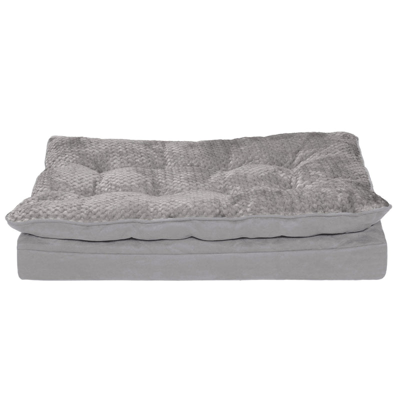 Shop / DOG / FurHaven Minky Faux Fur & Suede Pillow-Top Orthopedic Dog Bed - Medium, Titanium Gray FurHaven Minky Faux Fur & Suede Pillow-Top Orthopedic Dog Bed - Medium, Titanium Gray FurHaven Default Title $53.99 Default Title Purchase Options Free In-Store Pick Up Not Available Save 10% on orders $49+ Set your store for inventory and store pickup details Zip Code Search Same-day Delivery* No minimum charge for delivery orders. *Order before 2pm and have it delivered today. Orders placed after 2pm will be delivered the next day. Must be inside delivery radius. Zip Code Unfortunately delivery is not available to this address. In order to ensure the best availability accuracy, changing your selected store will remove all items from your cart. You will need to re-add these items with your newly selected store if you choose to continue. Continue Cancel Ship it to Me Quantity Add To Cart Information FurHaven's Mink Fur & Suede Pillow Top Dog Bed takes pet beds to a whole new level! Great for pets of all ages, this dog bed is designed with a fully attached fiberfill pillow atop a mattress base - providing an extra layer of high-loft cushioned support for ultimate lounging comfort. The tufted sleep surface is topped with luxuriously soft mink fur that is gentle on noses and paws, paired with elegant and easy-care suede wrapped around the sides. The orthopedic foam base supports your pet's joints and pressure points, allowing for improved circulation and a better night's rest. Features a non-skid bottom base to keep the bed in place. Includes zippered access to the pillow top filling for easy refills and stuffing replacement. Easy to clean. Cover care: Remove base core before washing (see seam label for fabric care instructions). Foam care: Spot clean with mild soap; rinse. Blot, then air dry. Not for unsupervised use by animals with chewing behaviors. Not for unsupervised use by animals with chewing behaviors. Dimensions: Medium – 30" x 20" x 3" Customers also liked Customer Reviews