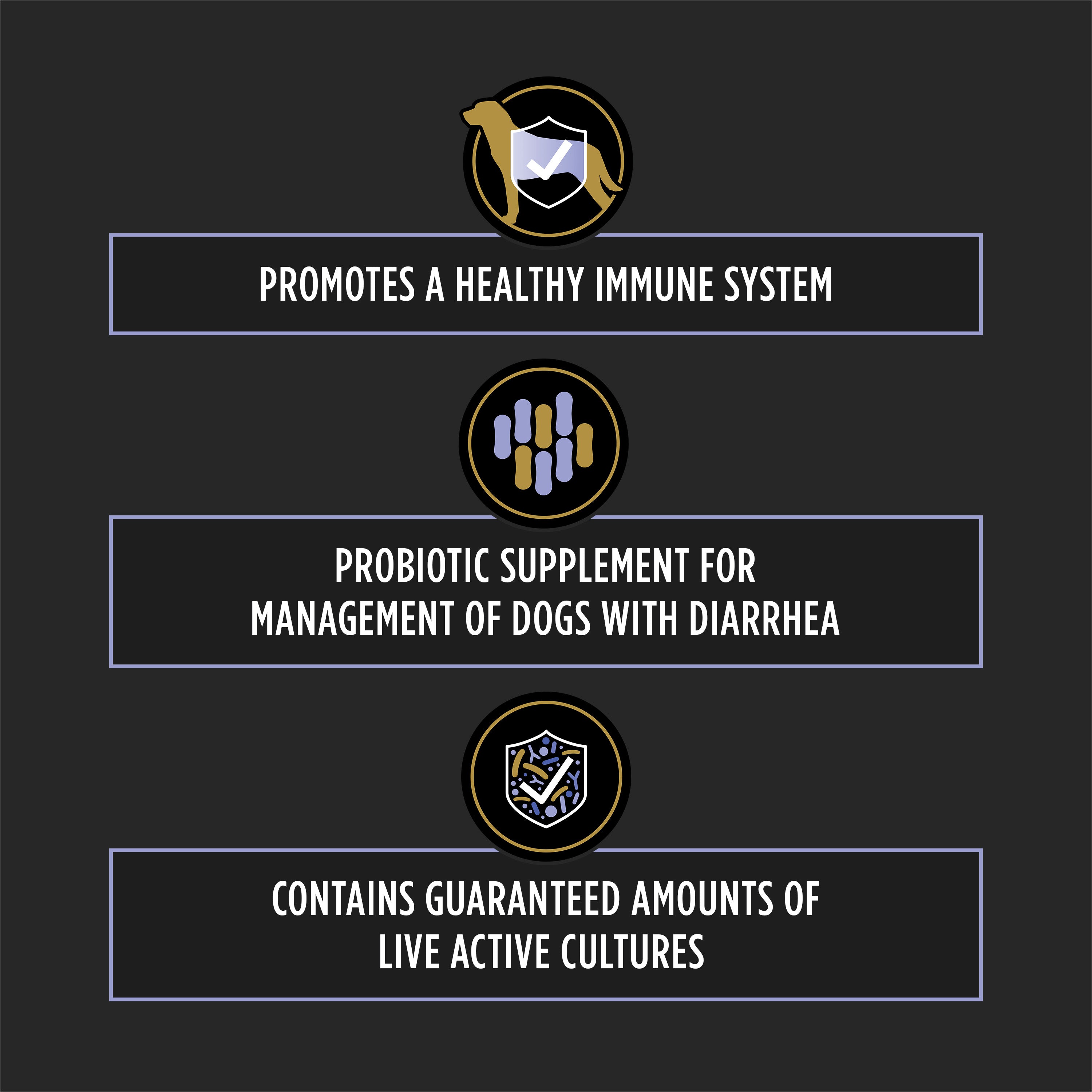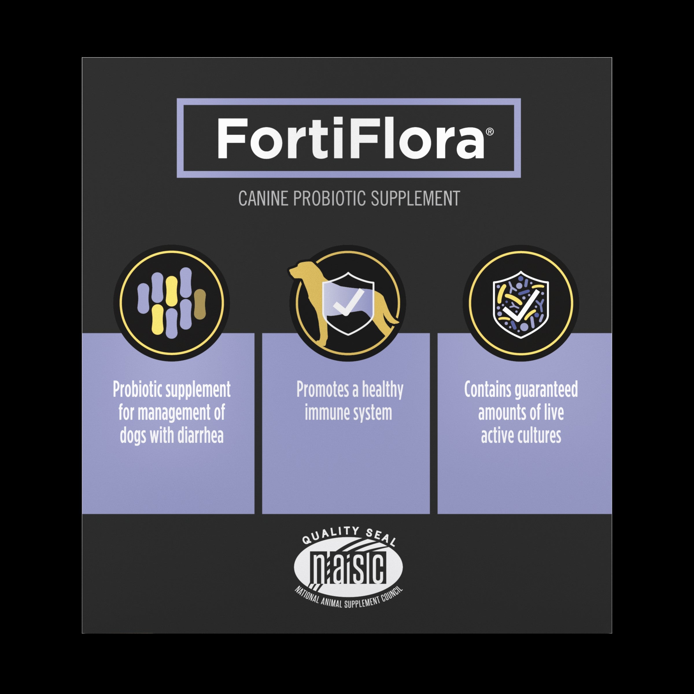 Shop / DOG / Purina Pro Plan Veterinary Supplements FortiFlora Dog Probiotic Supplement, Canine Nutritional Supplement - 30 ct. Box Purina Pro Plan Veterinary Supplements FortiFlora Dog Probiotic Supplement, Canine Nutritional Supplement - 30 ct. Box Purina 30 Count $30.99 30 Count Purchase Options Free In-Store Pick Up Not Available Save 20% on orders $100+ Set your store for inventory and store pickup details Zip Code Search Same-day Delivery* No minimum charge for delivery orders. *Order before 2pm and have it delivered today. Orders placed after 2pm will be delivered the next day. Must be inside delivery radius. Zip Code Unfortunately delivery is not available to this address. In order to ensure the best availability accuracy, changing your selected store will remove all items from your cart. You will need to re-add these items with your newly selected store if you choose to continue. Continue Cancel Ship it to Me Quantity Add To Cart Information Probiotic supplement for the dietary management of puppies and adult dogs with diarrhea. Contains a probiotic for dogs proven to promote intestinal health and balance. Promotes a strong immune system and contains antioxidants for dogs. Easy-to-feed dog supplement powder. Animal Digest, Enterococcus Faecium, L-Ascorbyl-2-Polyphosphate (Source of Vitamin C), Brewers Dried Yeast, Vitamin E Supplement, Zinc Proteinate, Beta-Carotene, Salt, Manganese Proteinate, Ferrous Sulfate, Copper Proteinate, Calcium Iodate, Sodium Selenite. Guaranteed Analysis Crude Protein 43.0% min Crude Fat 10.0% min Crude Fiber 1.0% max Moisture 5.0% max Enterococcus faecium 1x108 CFU/g min Customers also liked Customer Reviews