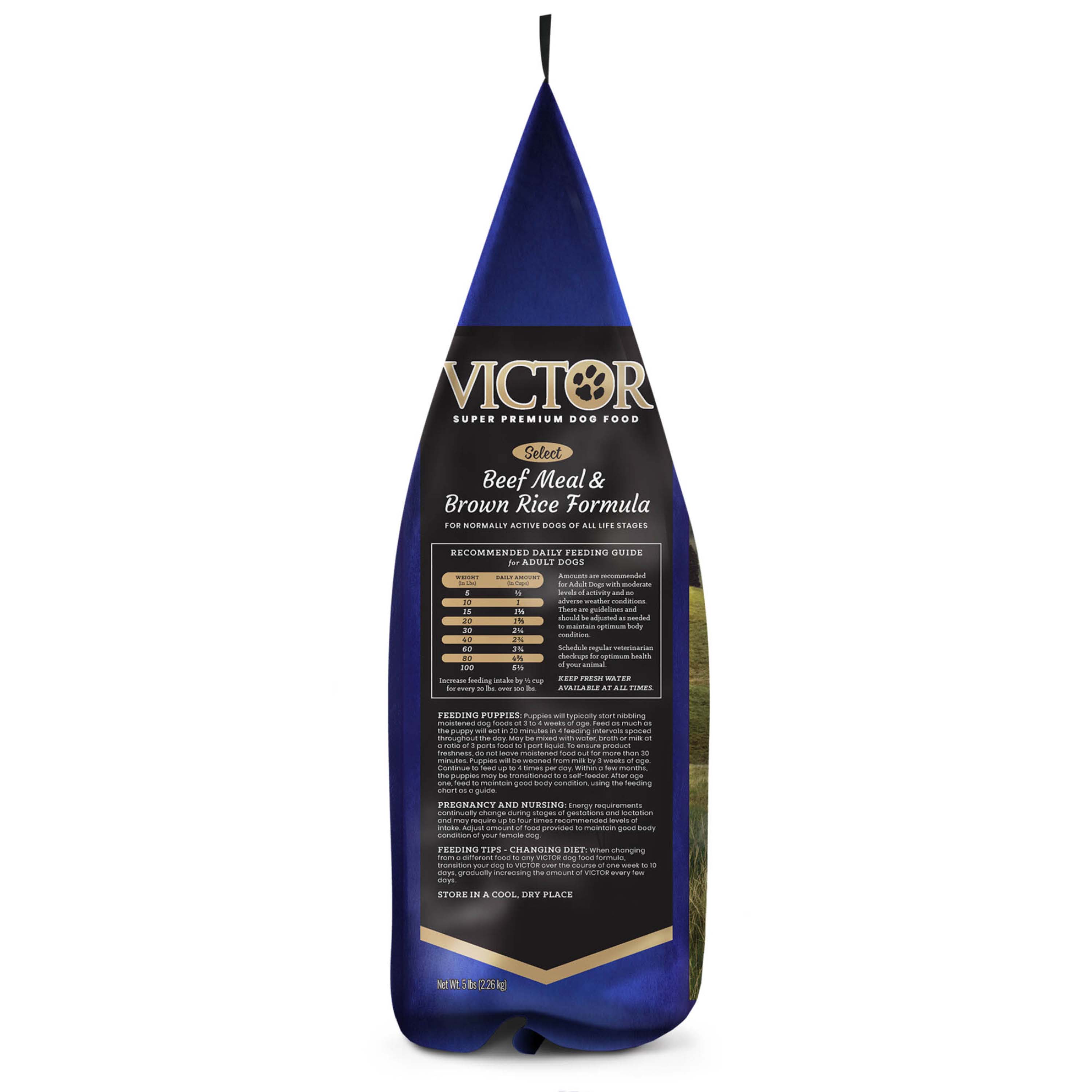 Shop / DOG / Victor Beef Meal & Rice Dry Dog Food, 5lb Victor Beef Meal & Rice Dry Dog Food, 5lb Victor 5lb $13.99 5lb Purchase Options Free In-Store Pick Up Not Available Save 20% on orders $100+ Set your store for inventory and store pickup details Zip Code Search Same-day Delivery* No minimum charge for delivery orders. *Order before 2pm and have it delivered today. Orders placed after 2pm will be delivered the next day. Must be inside delivery radius. Zip Code Unfortunately delivery is not available to this address. In order to ensure the best availability accuracy, changing your selected store will remove all items from your cart. You will need to re-add these items with your newly selected store if you choose to continue. Continue Cancel Ship it to Me Quantity Add To Cart Feeding guide disclaimer ✕ Feeding guides provide a starting point for the amount of food to give your pet each day. We recommend that you keep your pet in ideal body condition and not allow them to become overweight. The amount of food your pet needs can vary based on age, activity level or other food and treats given, so be sure to work with your veterinarian to determine an appropriate weight for your pet, and to make any necessary adjustments to their feeding. Information With premium-quality beef meal as the primary protein source, Beef Meal & Brown Rice Formula is formulated to nutritionally support dogs with normal activity levels. It is easy to alternate SELECT formulas to offer your dog multiple flavors throughout the year. This formula is appropriate for large and small dogs at all life stages. VICTOR Beef Meal & Brown Rice Formula for Dogs is formulated to meet the nutritional levels established by the AAFCO Dog Food Nutrient Profiles for All Life Stages, including growth of large size dogs (70 lb. or more as an adult) Ingredients Beef Meal, Grain Sorghum, Whole Grain Brown Rice, Chicken Fat (preserved with mixed Tocopherols), Yeast Culture, Dehydrated Alfalfa Meal, Natural Flavor, Potassium Chloride, Carrot Powder, Tomato Pomace, Salt, Organic Dried Seaweed Meal, Taurine, Choline Chloride, Calcium Stearate, Zinc Methionine Complex, Vitamin E Supplement, DL-Methionine, Iron Amino Acid Complex, Hydrolyzed Yeast, Manganese Amino Acid Complex, Silicon Dioxide, L-Carnitine, Selenium Yeast, Brewers Dried Yeast, Copper Sulfate, Niacin Supplement, Vitamin B12 Supplement, Vitamin A Supplement, D-Calcium Pantothenate, Mono and Diglycerides of Fatty Acids, Thiamine Mononitrate, Biotin, Yucca Schidigera Extract, Calcium Carbonate, Riboflavin Supplement, Calcium Iodate, Pyridoxine Hydrochloride, Vitamin D3 Supplement, Tetrasodium Pyrophosphate, Rosemary Extract, Green Tea Extract, Spearmint Extract, Inulin, Lecithin, Folic Acid, Dried Bacillus coagulans Fermentation Product, Dried Bacillus subtilis Fermentation Product Contains a source of live (viable), naturally occurring microorganisms Guaranteed Analysis Crude Protein (Min.) 24.0%, Crude Fat (Min.) 12.0%, Crude Fiber (Max.) 4.4%, Moisture (Max.) 9.0%, Linoleic Acid (Min.) 2.0%, alpha-Linolenic Acid (Min.) 0.4%, Zinc (Min.) 150 mg/kg, Selenium (Min.) 0.35 mg/kg, Vitamin E (Min.) 150 IU/kg, L-Carnitine* (Min.) 80 mg/kg, Total Microorganisms* (Min) 80,000,000 CFU/lb (Bacillus coagulans, Bacillus subtilis) Customers also liked Customer Reviews