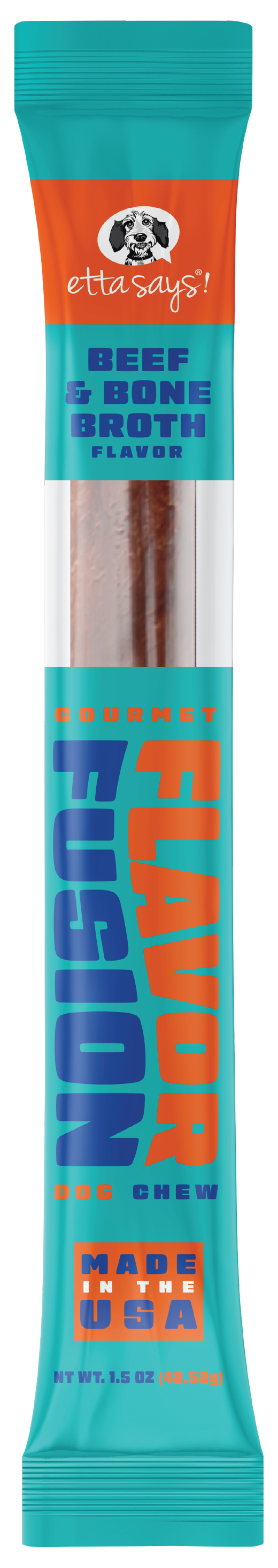 Shop / Dogs / Etta Says Flavor Fusion Chew, Beef and Bone Broth Etta Says Flavor Fusion Chew, Beef and Bone Broth Etta Says! 2oz $2.99 2oz Purchase Options Free In-Store Pick Up Not Available Save 10% on orders $49+ Set your store for inventory and store pickup details Zip Code Search Same-day Delivery* No minimum charge for delivery orders. *Order before 2pm and have it delivered today. Orders placed after 2pm will be delivered the next day. Must be inside delivery radius. Zip Code Unfortunately delivery is not available to this address. In order to ensure the best availability accuracy, changing your selected store will remove all items from your cart. You will need to re-add these items with your newly selected store if you choose to continue. Continue Cancel Ship it to Me Quantity Add To Cart Feeding guide disclaimer ✕ Feeding guides provide a starting point for the amount of food to give your pet each day. We recommend that you keep your pet in ideal body condition and not allow them to become overweight. The amount of food your pet needs can vary based on age, activity level or other food and treats given, so be sure to work with your veterinarian to determine an appropriate weight for your pet, and to make any necessary adjustments to their feeding. Information The Flavor Fusion chews are a great impulse grab ‘n go chew that fuses great flavor profiles for super palatability. This long lasting yet chewy treat is 100% Natural and made in the US. Its star shaped design is great for teeth and gums. Customers also liked Customer Reviews