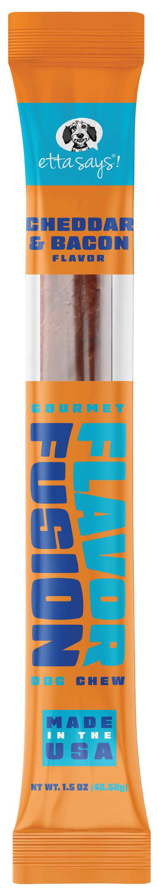 Shop / Dogs / Etta Says Flavor Fusion Chew, Cheese and Bacon Etta Says Flavor Fusion Chew, Cheese and Bacon Etta Says! 2oz $2.99 2oz Purchase Options Free In-Store Pick Up Not Available Save 10% on orders $49+ Set your store for inventory and store pickup details Zip Code Search Same-day Delivery* No minimum charge for delivery orders. *Order before 2pm and have it delivered today. Orders placed after 2pm will be delivered the next day. Must be inside delivery radius. Zip Code Unfortunately delivery is not available to this address. In order to ensure the best availability accuracy, changing your selected store will remove all items from your cart. You will need to re-add these items with your newly selected store if you choose to continue. Continue Cancel Ship it to Me Quantity Add To Cart Feeding guide disclaimer ✕ Feeding guides provide a starting point for the amount of food to give your pet each day. We recommend that you keep your pet in ideal body condition and not allow them to become overweight. The amount of food your pet needs can vary based on age, activity level or other food and treats given, so be sure to work with your veterinarian to determine an appropriate weight for your pet, and to make any necessary adjustments to their feeding. Information The Flavor Fusion chews are a great impulse grab ‘n go chew that fuses great flavor profiles for super palatability. This long lasting yet chewy treat is 100% Natural and made in the US. Its star shaped design is great for teeth and gums. Customers also liked Customer Reviews