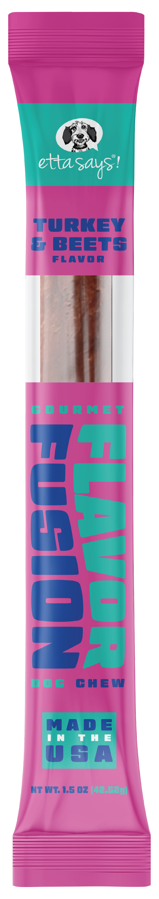 Shop / Dogs / Etta Says Flavor Fusion Chew, Turkey and Beets Etta Says Flavor Fusion Chew, Turkey and Beets Etta Says! 1.75oz $2.99 1.75oz Purchase Options Free In-Store Pick Up Not Available Save 10% on orders $49+ Set your store for inventory and store pickup details Zip Code Search Same-day Delivery* No minimum charge for delivery orders. *Order before 2pm and have it delivered today. Orders placed after 2pm will be delivered the next day. Must be inside delivery radius. Zip Code Unfortunately delivery is not available to this address. In order to ensure the best availability accuracy, changing your selected store will remove all items from your cart. You will need to re-add these items with your newly selected store if you choose to continue. Continue Cancel Ship it to Me Quantity Add To Cart Feeding guide disclaimer ✕ Feeding guides provide a starting point for the amount of food to give your pet each day. We recommend that you keep your pet in ideal body condition and not allow them to become overweight. The amount of food your pet needs can vary based on age, activity level or other food and treats given, so be sure to work with your veterinarian to determine an appropriate weight for your pet, and to make any necessary adjustments to their feeding. Information The Flavor Fusion chews are a great impulse grab ‘n go chew that fuses great flavor profiles for super palatability. This long lasting yet chewy treat is 100% Natural and made in the US. Its star shaped design is great for teeth and gums. Customers also liked Customer Reviews
