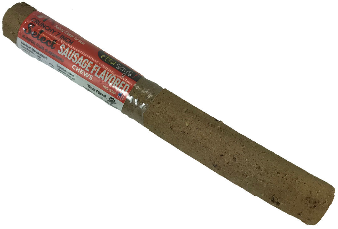 Shop / Dogs / Etta Says! Select 7" Sausage Etta Says! Select 7" Sausage Etta Says! 0.8oz $2.99 0.8oz Purchase Options Free In-Store Pick Up Not Available Save 10% on orders $49+ Set your store for inventory and store pickup details Zip Code Search Same-day Delivery* No minimum charge for delivery orders. *Order before 2pm and have it delivered today. Orders placed after 2pm will be delivered the next day. Must be inside delivery radius. Zip Code Unfortunately delivery is not available to this address. In order to ensure the best availability accuracy, changing your selected store will remove all items from your cart. You will need to re-add these items with your newly selected store if you choose to continue. Continue Cancel Ship it to Me Quantity Add To Cart Feeding guide disclaimer ✕ Feeding guides provide a starting point for the amount of food to give your pet each day. We recommend that you keep your pet in ideal body condition and not allow them to become overweight. The amount of food your pet needs can vary based on age, activity level or other food and treats given, so be sure to work with your veterinarian to determine an appropriate weight for your pet, and to make any necessary adjustments to their feeding. Information “Etta Says! 7 Inch Select Sausage Chews are made of 100% US beef ligaments and natural sausage flavoring. Select chews are fully digestible and a healthy alternative to smoked butcher block treats.” Customers also liked Customer Reviews