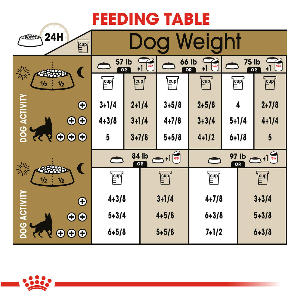 Shop / Dry Dog Food / Royal Canin Breed Health Nutrition German Shepherd Adult Dry Dog Food Royal Canin Breed Health Nutrition German Shepherd Adult Dry Dog Food Royal Canin Weight: 30 lb $115.99 30-lb Purchase Options Free In-Store Pick Up Not Available Save 10% on orders $49+ Set your store for inventory and store pickup details Zip Code Search Same-day Delivery* No minimum charge for delivery orders. *Order before 2pm and have it delivered today. Orders placed after 2pm will be delivered the next day. Must be inside delivery radius. Zip Code Unfortunately delivery is not available to this address. In order to ensure the best availability accuracy, changing your selected store will remove all items from your cart. You will need to re-add these items with your newly selected store if you choose to continue. Continue Cancel Ship it to Me Quantity Add To Cart Feeding guide disclaimer ✕ Feeding guides provide a starting point for the amount of food to give your pet each day. We recommend that you keep your pet in ideal body condition and not allow them to become overweight. The amount of food your pet needs can vary based on age, activity level or other food and treats given, so be sure to work with your veterinarian to determine an appropriate weight for your pet, and to make any necessary adjustments to their feeding. Information Royal Canin knows what makes your German Shepherd magnificent is in the details. While these faithful watchdogs are highly intelligent and protective, they’re also big softies with thick double-layered coats. They can benefit from the right diet to support bone and joint health, maintain a healthy skin and coat, and support digestive health, all of which are important for this hardworking breed. Royal Canin German Shepherd Adult dog food is tailor-made nutrition created just for your pure breed dog. Whether you call them a German Shepherd or an Alsatian, this exclusive breed-specific diet is uniquely formulated to your dog, with the specific nutrients to help them thrive. The unique kibble shape and texture are specially designed for your German Shepherd’s long, strong muzzle and teeth, encouraging them to chew. Highly digestible proteins and specific fibers maintain digestive health as this breed tends to have poor stool quality. Exclusive nutrients reinforce the skin barrier. EPA and DHA from fish oil help maintain skin and coat health. And glucosamine and chondroitin help support healthy bones and joints for large, athletic builds. Mix in or complement with Royal Canin German Shepherd wet dog food for a meal that’s sure to have your loyal buddy standing at attention. • FORMULATED FOR PUREBRED GERMAN SHEPHERDS: Royal Canin German Shepherd Adult Dry Dog Food is designed to meet the nutritional needs of purebred German Shepherds 15 months and older • SPECIALIZED KIBBLE: Unique kibble shape is designed for a German Shepherd’s long, strong muzzle to encourage chewing • HEALTHY DIGESTION: Highly digestible proteins and specific fibers promote healthy digestion and promote optimal stool quality • SKIN AND COAT: Supports healthy skin and coat with EPA and DHA from fish oil and reinforces the skin barrier with essential nutrients • BONE AND JOINT: Glucosamine and chondroitin maintain bone and joint health and support large breed bodies Ingredients Brewers rice, chicken by-product meal, brown rice, oat groats, chicken fat, pork meal, natural flavors, powdered cellulose, dried plain beet pulp, wheat gluten, fish oil, vegetable oil, sodium silico aluminate, calcium carbonate, potassium chloride, L-tyrosine, sodium tripolyphosphate, vitamins [DL-alpha tocopherol acetate (source of vitamin E), niacin supplement, L-ascorbyl-2-polyphosphate (source of vitamin C), D-calcium pantothenate, biotin, pyridoxine hydrochloride (vitamin B6), riboflavin supplement, thiamine mononitrate (vitamin B1), vitamin A acetate, folic acid, vitamin B12 supplement, vitamin D3 supplement], salt, monocalcium phosphate, hydrolyzed yeast, choline chloride, DL-methionine, taurine, glucosamine hydrochloride, marigold extract (Tagetes erecta L.), trace minerals [zinc proteinate, zinc oxide, ferrous sulfate, manganese proteinate, manganous oxide, copper sulfate, calcium iodate, sodium selenite, copper proteinate], magnesium oxide, green tea extract, chondroitin sulfate, rosemary extract, preserved with mixed tocopherols and citric acid. Guaranteed Analysis Nutrient Guaranteed Units Crude Protein 22.0% min Crude Fat 17.0% min Crude Fiber 5.5% max Moisture 10.0% max EPA 0.17% min DHA 0.07% min Glucosamine 743 mg/kg min Chondroitin Sulfate 8 mg/kg min Customers also liked Customer Reviews