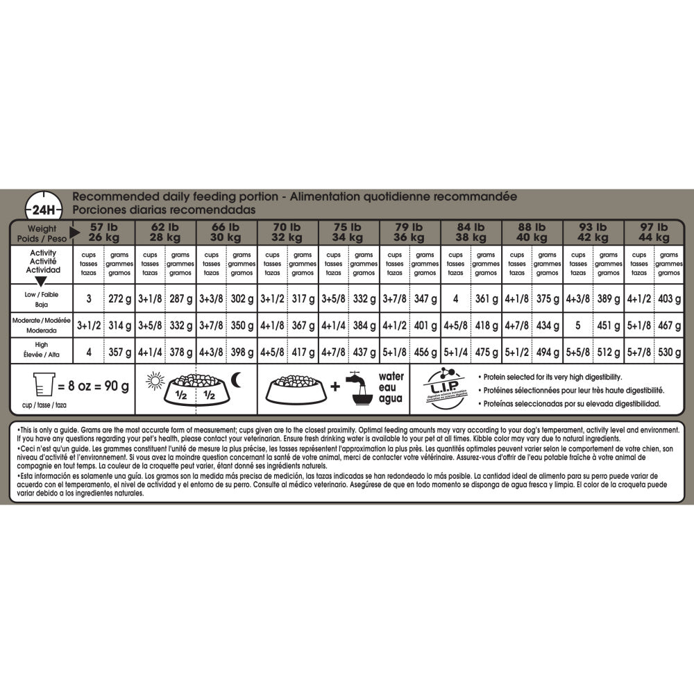 Shop / Dry Dog Food / Royal Canin Large Breed Digestive Care Dry Dog Food Royal Canin Large Breed Digestive Care Dry Dog Food Royal Canin Weight: 30 lb $115.99 30-lb Purchase Options Free In-Store Pick Up Not Available Save 10% on orders $49+ Set your store for inventory and store pickup details Zip Code Search Same-day Delivery* No minimum charge for delivery orders. *Order before 2pm and have it delivered today. Orders placed after 2pm will be delivered the next day. Must be inside delivery radius. Zip Code Unfortunately delivery is not available to this address. In order to ensure the best availability accuracy, changing your selected store will remove all items from your cart. You will need to re-add these items with your newly selected store if you choose to continue. Continue Cancel Ship it to Me Quantity Add To Cart Feeding guide disclaimer ✕ Feeding guides provide a starting point for the amount of food to give your pet each day. We recommend that you keep your pet in ideal body condition and not allow them to become overweight. The amount of food your pet needs can vary based on age, activity level or other food and treats given, so be sure to work with your veterinarian to determine an appropriate weight for your pet, and to make any necessary adjustments to their feeding. Information When it comes to your dog’s sensitive stomach, how do you know which dog food is best? Royal Canin knows there’s an exact science to your dog’s digestive health, starting with precise nutrition so they can be their most magnificent self. Royal Canin Large Digestive Care dry dog food (formerly Maxi Digestive Care) is tailored nutrition to support your large dog’s sensitive stomach. This diet is specially formulated with a blend of prebiotics and fibers to support healthy digestion. These prebiotics and a special blend of fibers promote a balanced intestinal flora and optimal stool quality. In fact, 97% of medium dogs fed Digestive Care had optimal stool quality, a clear sign of positive digestion health. Mix with Royal Canin Digestive Care wet dog food in can or pouch for a variety of textures to please picky eaters. With over 50 years of scientific research and observation, Royal Canin continues to deliver targeted nutrition to feed every pet’s magnificence. Not satisfied? Then neither are we. Our formulas are 100% satisfaction guaranteed. (Just contact us for more details. Ingredients Chicken by-product meal, brewers rice, brown rice, corn gluten meal, chicken fat, natural flavors, brewers rice flour, dried plain beet pulp, fish oil, wheat gluten, pea fiber, sodium silico aluminate, vegetable oil, potassium chloride, calcium carbonate, salt, psyllium seed husk, hydrolyzed yeast, choline chloride, taurine, L-lysine, glucosamine hydrochloride, vitamins [DL-alpha tocopherol acetate (source of vitamin E), L-ascorbyl-2-polyphosphate (source of vitamin C), biotin, D-calcium pantothenate, pyridoxine hydrochloride (vitamin B6), vitamin A acetate, niacin supplement, thiamine mononitrate (vitamin B1), vitamin B12 supplement, riboflavin supplement, folic acid, vitamin D3 supplement], trace minerals [zinc proteinate, zinc oxide, ferrous sulfate, manganese proteinate, manganous oxide, copper sulfate, calcium iodate, sodium selenite, copper proteinate], chondroitin sulfate, L-carnitine, rosemary extract, preserved with mixed tocopherols and citric acid. Guaranteed Analysis Nutrient Guaranteed Units Crude Protein 26.0% min Crude Fat 16.0% min Crude Fiber 3.8% max Moisture 10.0% max Glucosamine 350 mg/kg min Chondroitin Sulfate 25 mg/kg min Customers also liked Customer Reviews