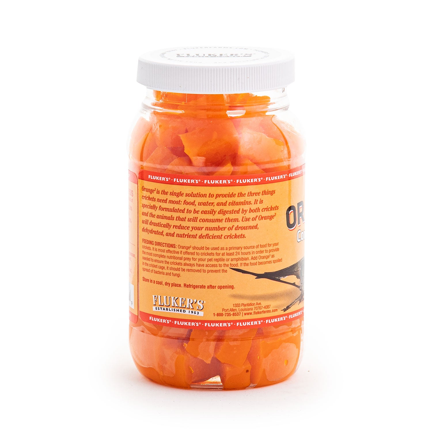 Shop / Fluker Farms / Fluker's Orange Cube Complete Cricket Diet Fluker's Orange Cube Complete Cricket Diet Fluker Farms 12oz $7.99 12oz Purchase Options Free In-Store Pick Up Not Available Save 10% on orders $49+ Set your store for inventory and store pickup details Zip Code Search Same-day Delivery* No minimum charge for delivery orders. *Order before 2pm and have it delivered today. Orders placed after 2pm will be delivered the next day. Must be inside delivery radius. Zip Code Unfortunately delivery is not available to this address. In order to ensure the best availability accuracy, changing your selected store will remove all items from your cart. You will need to re-add these items with your newly selected store if you choose to continue. Continue Cancel Ship it to Me Quantity Add To Cart Feeding guide disclaimer ✕ Feeding guides provide a starting point for the amount of food to give your pet each day. We recommend that you keep your pet in ideal body condition and not allow them to become overweight. The amount of food your pet needs can vary based on age, activity level or other food and treats given, so be sure to work with your veterinarian to determine an appropriate weight for your pet, and to make any necessary adjustments to their feeding. Information Fluker's Orange Cube Complete Cricket Diet Reptile Supplement is the single solution to provide the three things crickets need most: food, water and vitamins. This supplement is specially formulated to be easily digested by both crickets and the animals that consume them. Orange Cube Complete Cricket Diet also drastically reduces the number of drowned, dehydrated and nutrient-deficient crickets, so there are plenty for your reptile to consume. Customers also liked Customer Reviews