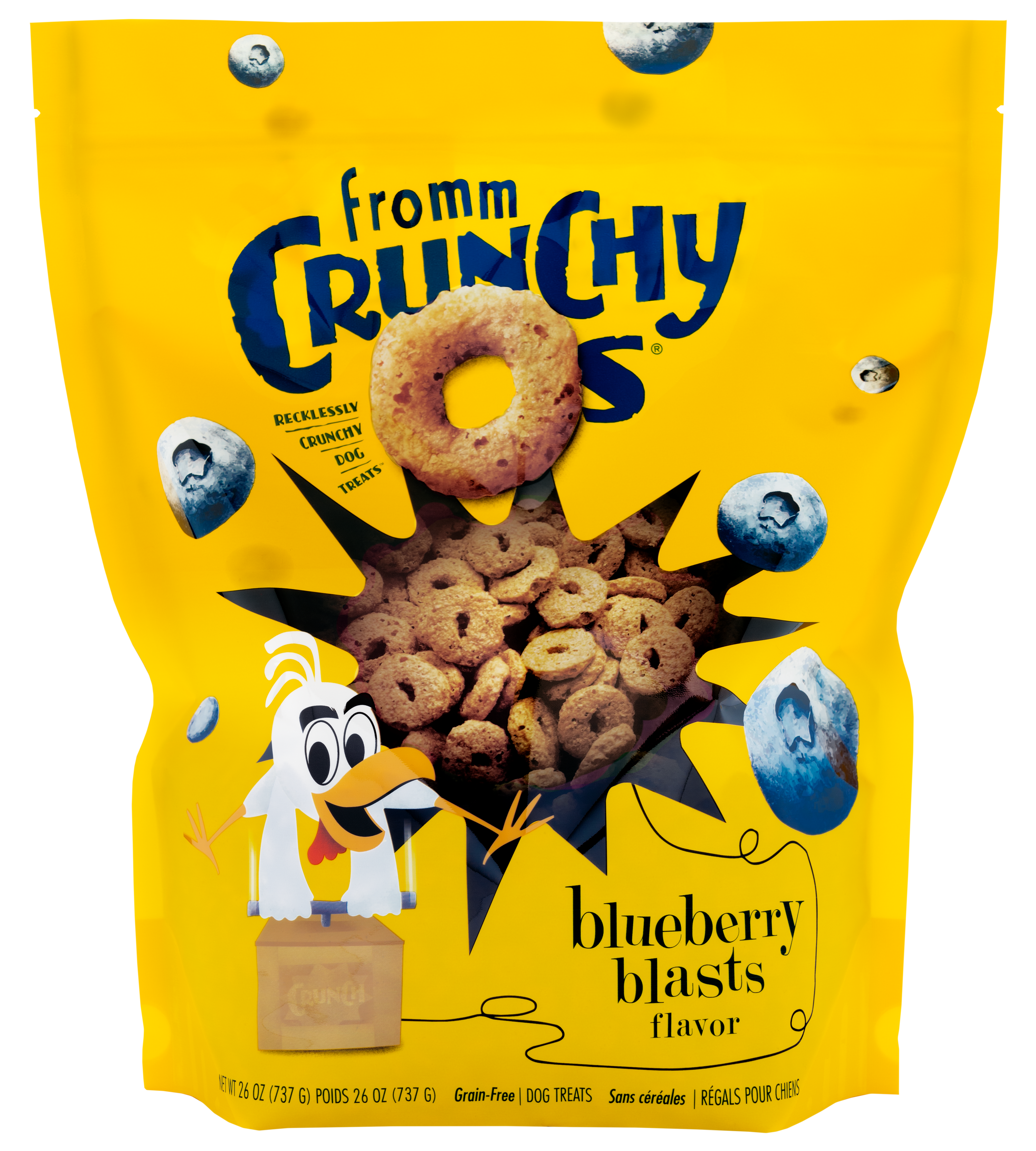 Shop / Fromm / Blueberry Blasts Flavor Dog Treats, 26oz Blueberry Blasts Flavor Dog Treats, 26oz Fromm 26oz $15.99 26oz Purchase Options Free In-Store Pick Up Not Available Save 10% on orders $49+ Set your store for inventory and store pickup details Zip Code Search Same-day Delivery* No minimum charge for delivery orders. *Order before 2pm and have it delivered today. Orders placed after 2pm will be delivered the next day. Must be inside delivery radius. Zip Code Unfortunately delivery is not available to this address. In order to ensure the best availability accuracy, changing your selected store will remove all items from your cart. You will need to re-add these items with your newly selected store if you choose to continue. Continue Cancel Ship it to Me Quantity Add To Cart Feeding guide disclaimer ✕ Feeding guides provide a starting point for the amount of food to give your pet each day. We recommend that you keep your pet in ideal body condition and not allow them to become overweight. The amount of food your pet needs can vary based on age, activity level or other food and treats given, so be sure to work with your veterinarian to determine an appropriate weight for your pet, and to make any necessary adjustments to their feeding. Information What happens when you mix chicken, blueberries, and a touch of tapioca? Here at Fromm, it means we’re making a great dog treat that’s delicious, wholesome, and recklessly crunchy. And every now and then, our rascally Flash Fowler takes the plunge and creates a blast of flavor that really gets attention. Now it’s your dog’s turn to have some fun. Grab a bag and let ‘em make some noise. It’s a blast! Customers also liked Customer Reviews