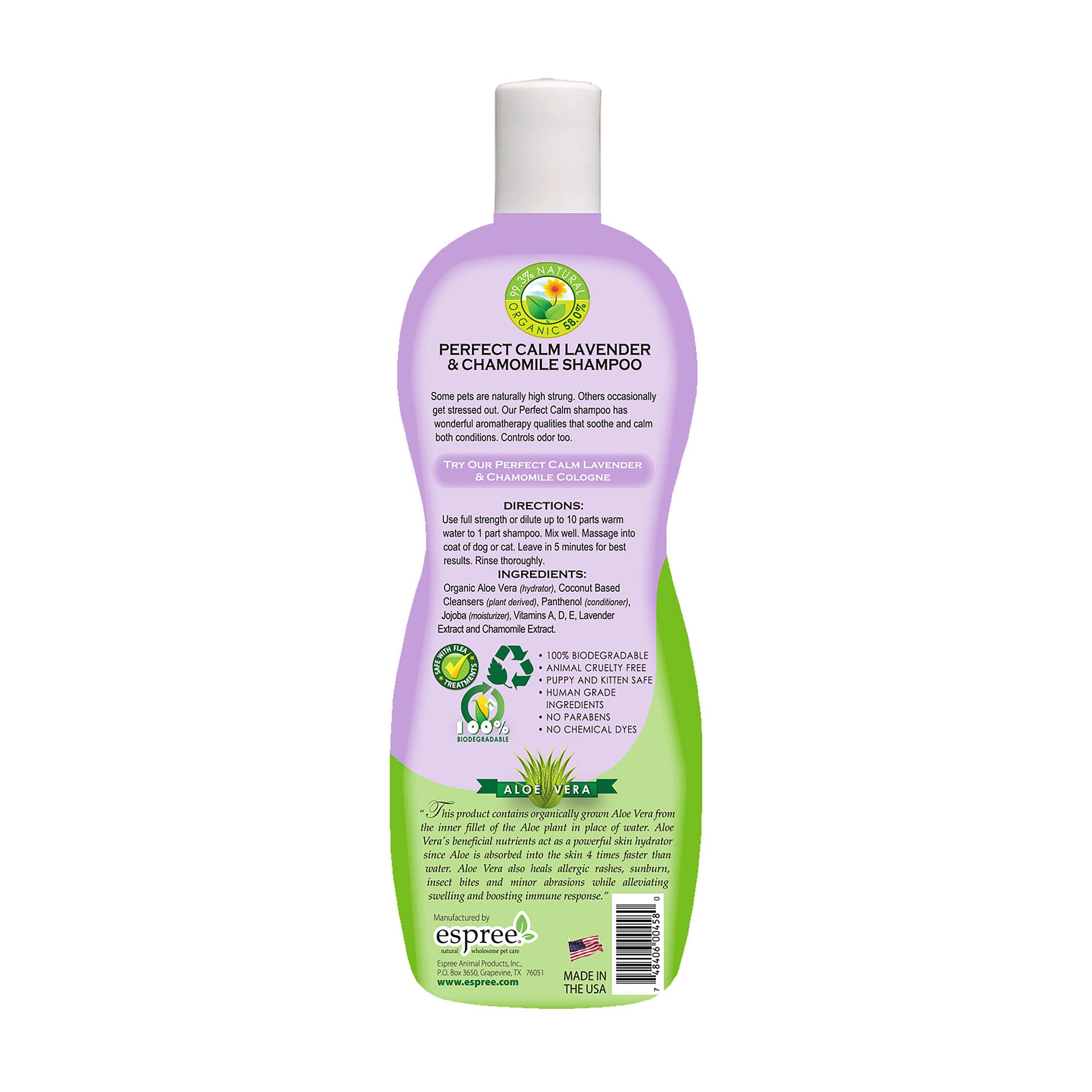 Shop / Health & Supplements / Espree Perfect Calm Lavender & Chamomile Shampoo For Dogs & Cats 20 Ounce Espree Perfect Calm Lavender & Chamomile Shampoo For Dogs & Cats 20 Ounce Espree 20oz $12.99 20oz Purchase Options Free In-Store Pick Up Not Available Save 20% on orders $100+ Set your store for inventory and store pickup details Zip Code Search Same-day Delivery* No minimum charge for delivery orders. *Order before 2pm and have it delivered today. Orders placed after 2pm will be delivered the next day. Must be inside delivery radius. Zip Code Unfortunately delivery is not available to this address. In order to ensure the best availability accuracy, changing your selected store will remove all items from your cart. You will need to re-add these items with your newly selected store if you choose to continue. Continue Cancel Ship it to Me Quantity Add To Cart Information Some dogs and cats are naturally high strung, others occasionally get stressed out. Espree Perfect Calm Shampoo has wonderful aromatherapy qualities that soothe and calm both conditions. Espree Perfect Calm Shampoo with Lavender and Chamomile controls odor of pets too. Natural and organic ingredients Aloe Vera, Panthenol and Jojoba leaves coats soft and clean. Made in the USA. Ingredients: Purified Water, Coconut & Plant-Derived Cleansers, Humectant, Aloe Vera Juice, Fragrance, Salt, Chamomile Extract, Lavender Extract, EDTA, Vitamin E, Perservative, D&C Red No.33, FD&C Blue No.1 Customers also liked Customer Reviews