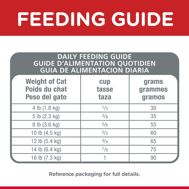 Shop / Hill's Science Diet / Hill's Science Diet Adult Indoor Chicken Recipe Dry Cat Food Hill's Science Diet Adult Indoor Chicken Recipe Dry Cat Food Hill's Science Diet $21.99 3.5 lb 7 lb 15.5 lb 3.5-lb 7-lb 15.5-lb Purchase Options Free In-Store Pick Up Not Available Save 10% on orders $49+ Set your store for inventory and store pickup details Zip Code Search Same-day Delivery* No minimum charge for delivery orders. *Order before 2pm and have it delivered today. Orders placed after 2pm will be delivered the next day. Must be inside delivery radius. Zip Code Unfortunately delivery is not available to this address. In order to ensure the best availability accuracy, changing your selected store will remove all items from your cart. You will need to re-add these items with your newly selected store if you choose to continue. Continue Cancel Ship it to Me Quantity Add To Cart Feeding guide disclaimer ✕ Feeding guides provide a starting point for the amount of food to give your pet each day. We recommend that you keep your pet in ideal body condition and not allow them to become overweight. The amount of food your pet needs can vary based on age, activity level or other food and treats given, so be sure to work with your veterinarian to determine an appropriate weight for your pet, and to make any necessary adjustments to their feeding. Information During your cat's adult years, you want to feed nutrition that supports everyday health and digestion. Hill's® Science Diet® Indoor Adult dry cat food is specially formulated to fuel the energy needs of cats with an indoor lifestyle during the prime of their life. Made for grown cats, this pet food made with natural ingredients uses DHA from fish oil to support brain health and eye development. Balanced minerals promote strong teeth and bones, while natural fibers promote healthy digestion for young cats, and easier litter box clean-up for you. There’s more to love with the new look of Science Diet®. Some of our products also have new names, new kibble shapes & new formulas. ▸ Indoor adult dry cat food is specially formulated to fuel the energy needs of adult cats with an indoor lifestyle ▸ Made with natural fibers to promote healthy digestion and easy litter box clean-up ▸ Uses quality protein and natural fibers to support your adult cat's hunger between meals ▸ Give your kitty the variety they crave with Science Diet® Adult Indoor Cat Ocean Fish Entrée ▸ Made with natural ingredients Healthy digestion for easy litter box clean-up Ingredients Chicken, Whole Grain Wheat, Corn Gluten Meal, Powdered Cellulose, Chicken Fat, Wheat Gluten, Chicken Meal, Chicken Liver Flavor, Dried Beet Pulp, Soybean Oil, Calcium Sulfate, Lactic Acid, Fish Oil, Potassium Chloride, Iodized Salt, Choline Chloride, vitamins (Vitamin E Supplement, L-Ascorbyl-2-Polyphosphate (source of Vitamin C), Niacin Supplement, Thiamine Mononitrate, Vitamin A Supplement, Calcium Pantothenate, Riboflavin Supplement, Biotin, Vitamin B12 Supplement, Pyridoxine Hydrochloride, Folic Acid, Vitamin D3 Supplement), Taurine, L-Carnitine, L-Lysine, minerals (Ferrous Sulfate, Zinc Oxide, Copper Sulfate, Manganous Oxide, Calcium Iodate, Sodium Selenite), Mixed Tocopherols for freshness, Natural Flavors, Green Peas, Apples, Cranberries, Carrots, Broccoli, Beta-Carotene. Guaranteed Analysis Nutrient Guaranteed Units Crude Protein 36.1 % Crude Fat 16.1 % Crude Fiber 9.3 % Carbohydrates 31.7 % Calcium 0.98 % Phosphorus 0.76 % Potassium 0.7 % Sodium 0.55 % Magnesium 0.082 % Taurine 0.23 % Vitamin C 119 ppm Vitamin E 927 IU/kg Omega-3 Fatty Acids 0.52 % Omega-6 Fatty Acids 3.67 % Customers also liked Customer Reviews