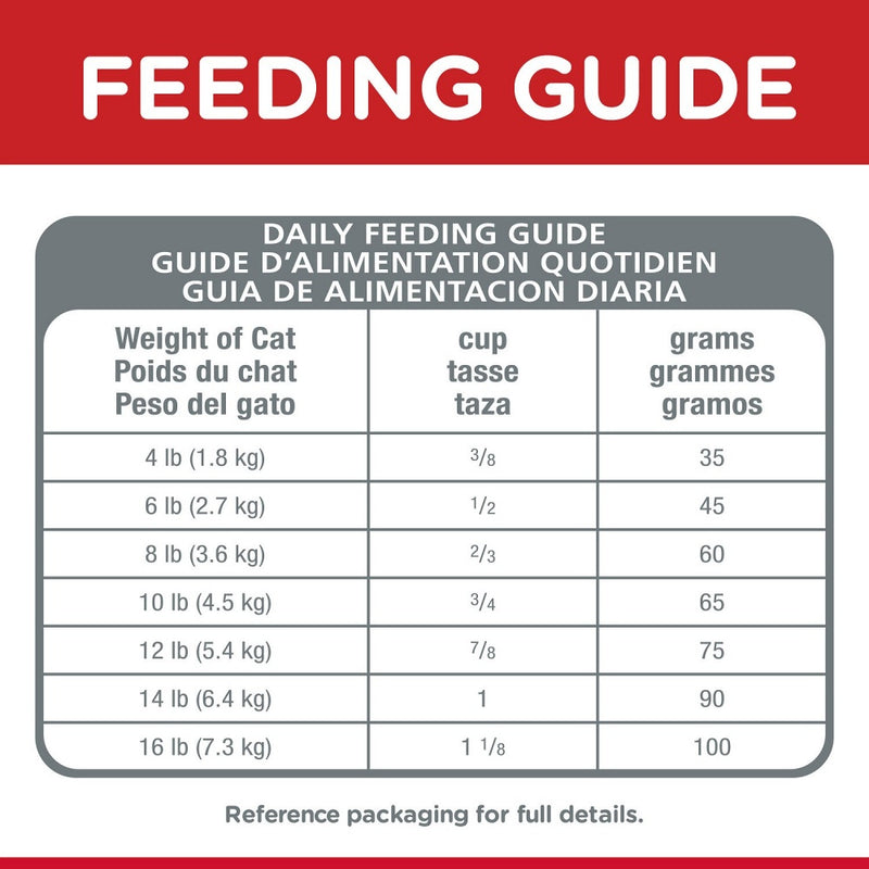 Shop / Hill's Science Diet / Hill's Science Diet Oral Care Adult Chicken Recipe Dry Cat Food Hill's Science Diet Oral Care Adult Chicken Recipe Dry Cat Food Hill's Science Diet $23.99 3.5 lb 7 lb 3.5-lb 7-lb Purchase Options Free In-Store Pick Up Not Available Save 10% on orders $49+ Set your store for inventory and store pickup details Zip Code Search Same-day Delivery* No minimum charge for delivery orders. *Order before 2pm and have it delivered today. Orders placed after 2pm will be delivered the next day. Must be inside delivery radius. Zip Code Unfortunately delivery is not available to this address. In order to ensure the best availability accuracy, changing your selected store will remove all items from your cart. You will need to re-add these items with your newly selected store if you choose to continue. Continue Cancel Ship it to Me Quantity Add To Cart Feeding guide disclaimer ✕ Feeding guides provide a starting point for the amount of food to give your pet each day. We recommend that you keep your pet in ideal body condition and not allow them to become overweight. The amount of food your pet needs can vary based on age, activity level or other food and treats given, so be sure to work with your veterinarian to determine an appropriate weight for your pet, and to make any necessary adjustments to their feeding. Information Good dental health for cats is vital to their overall health and wellbeing. Hill's® Science Diet® Oral Care dry cat food provides precisely balanced nutrition to improve dental health in your grown cat using a clinically proven kibble technology. This cat food made with natural ingredients uses an interlocking fiber technology to scrub and clean cat teeth, freshening breath with every bite. Plus, because every cat wants healthy fur, omega-6s and vitamin E are added to nourish the skin and coat. There’s more to love with the new look of Science Diet®. Some of our products also have new names, new kibble shapes & new formulas. ▸ Clinically proven kibble technology to reduce plaque and tartar buildup in adult cats ▸ Helps improve your cat's dental health and freshen breath with every bite ▸ Promotes a healthy fur coat with vitamin E and omega-6 fatty acids ▸ Made with natural ingredients ▸ Made in the USA with global ingredients you can trust Clinically proven kibble technology to reduce plaque & tartar build-up Ingredients Chicken, Brown Rice, Corn Gluten Meal, Chicken Fat, Powdered Cellulose, Wheat Gluten, Chicken Meal, Flaxseed, Chicken Liver Flavor, Lactic Acid, Potassium Chloride, Calcium Sulfate, Choline Chloride, L-Lysine, Iodized Salt, Taurine, vitamins (Vitamin E Supplement, L-Ascorbyl-2-Polyphosphate (source of Vitamin C), Niacin Supplement, Thiamine Mononitrate, Calcium Pantothenate, Pyridoxine Hydrochloride, Vitamin A Supplement, Riboflavin Supplement, Biotin, Vitamin B12 Supplement, Folic Acid, Vitamin D3 Supplement), minerals (Ferrous Sulfate, Zinc Oxide, Copper Sulfate, Manganous Oxide, Calcium Iodate, Sodium Selenite), DL-Methionine, Oat Fiber, Mixed Tocopherols for freshness, Natural Flavors, Beta-Carotene, Apples, Broccoli, Carrots, Cranberries, Green Peas Guaranteed Analysis Nutrient Guaranteed Units Crude Protein 33.5 % Crude Fat 21.1 % Crude Fiber 9.0 % Carbohydrates 30.6 % Calcium 0.76 % Phosphorus 0.66 % Potassium 0.74 % Sodium 0.39 % Magnesium 0.080 % Taurine 0.29 % Vitamin C 122 ppm Vitamin E 748 IU/kg Omega-3 Fatty Acids 1.10 % Omega-6 Fatty Acids 4.31 % Customers also liked Customer Reviews