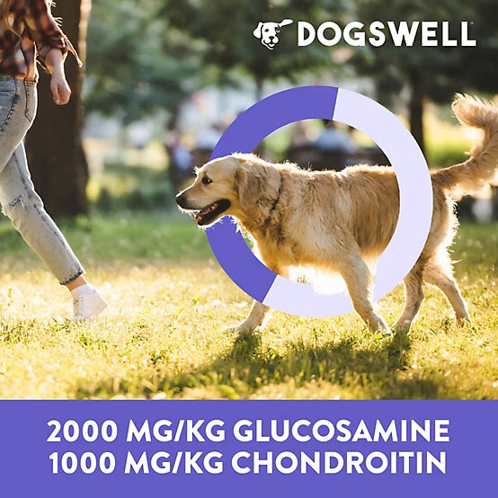 Shop / Same-Day Delivery / Dogswell Hip & Joint Jerky Treats, Beef Recipe 12 oz. Dogswell Hip & Joint Jerky Treats, Beef Recipe 12 oz. Whitebridge 12oz $21.99 12oz Purchase Options Free In-Store Pick Up Not Available Save 10% on orders $49+ Set your store for inventory and store pickup details Zip Code Search Same-day Delivery* No minimum charge for delivery orders. *Order before 2pm and have it delivered today. Orders placed after 2pm will be delivered the next day. Must be inside delivery radius. Zip Code Unfortunately delivery is not available to this address. In order to ensure the best availability accuracy, changing your selected store will remove all items from your cart. You will need to re-add these items with your newly selected store if you choose to continue. Continue Cancel Ship it to Me Quantity Add To Cart Feeding guide disclaimer ✕ Feeding guides provide a starting point for the amount of food to give your pet each day. We recommend that you keep your pet in ideal body condition and not allow them to become overweight. The amount of food your pet needs can vary based on age, activity level or other food and treats given, so be sure to work with your veterinarian to determine an appropriate weight for your pet, and to make any necessary adjustments to their feeding. Information Support your dog's mobility with Dogswell Hip & Joint Jerky Beef. These functional high-protein jerky treats are made in the USA with high-quality beef to maintain muscle mass. Supplemented with ingredients such as glucosamine and chondroitin to support hip & joint health, these jerky treats deliver the meaty flavor that dogs love while working to promote happy and healthy joints. Dogswell's line of functional jerky treats taste good and do good. Available in a 12 oz. package size. MOBILITY SUPPORT: Each piece of this delicious jerky is formulated with a special blend of ingredients such as glucosamine, chondroitin, and vitamin E to support dogs hip and joint health. HIGH PROTEIN JERKY: This functional jerky is made with high-quality protein from USA sourced beef. Coming in at 30% protein, these jerky treats help to support lean muscle mass and provide energy. CLEAN INGREDIENTS, SUPPLEMENTAL BENEFITS: With no grains, no artificial colors or flavors, no corn, wheat, or soy, and no added gluten, molasses or corn syrup, you can both feel good and do good when treating your dog. LIVE LIFE WITH YOUR DOG BY YOUR SIDE: Dogswell is a proud member of the Cloud Star Family. Our love for dogs built a family of brands. Beef, Vegetable Glycerin, Salt, Beef Broth, Vinegar, Glucosamine Hydrochloride, Chondroitin Sulfate, New Zealand Green Mussel, Vitamin E Supplement Customers also liked Customer Reviews