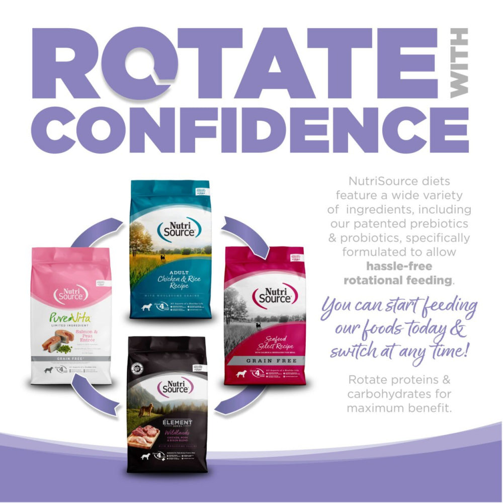 Shop / NutriSource / NutriSource Grain Free Small & Medium Breed Puppy Recipe Dry Dog Food NutriSource Grain Free Small & Medium Breed Puppy Recipe Dry Dog Food NutriSource $24.99 Sorry, this product is currently out of stock. Feeding guide disclaimer ✕ Feeding guides provide a starting point for the amount of food to give your pet each day. We recommend that you keep your pet in ideal body condition and not allow them to become overweight. The amount of food your pet needs can vary based on age, activity level or other food and treats given, so be sure to work with your veterinarian to determine an appropriate weight for your pet, and to make any necessary adjustments to their feeding. Information Made for puppies expected to weigh less than 50 pounds full grown, NutriSource Grain Free Small and Medium Breed Puppy Recipe Dry Dog Food is a holistic and easy to digest recipe created with higher levels of protein and fat that growing puppies need! Humane certified turkey and low glycemic lentils are key in this recipe to ensure your puppy is getting the best nutrition available for optimal growth and development. Nutrisource recipes always include their Good 4 Life system with ingredients that work together to promote gut health often showing health improvements within the first feeding!Why We Love It Grain, potato, and chicken free Low glycemic with lentils and humane certified turkey Made in the USA About NutrisourceNutrisource pet food has created the highest-quality food for your beloved pets. Nutrisource is formulated with the best ingredients and supplements that guarantee whole body health. Priority number 1 is to deliver the safest, most nutritious foods possible by examining all raw ingredients and testing every product during and after cooking. A deep rooted sense of family, community and integrity guides every decision, from the top to the bottom. With options for every dog and cat, such as large breed, small breed, seafood, beef, chicken, wet, dry, grain-free, and more, you'll know your pet is getting the very best with Nutrisource. Ingredients Turkey, turkey meal, green lentils, red lentils, garbanzo beans, sunflower oil, natural chicken and turkey flavor, whitefish meal, menhaden fish meal, dried tomato pomace, potassium chloride, brewers dried yeast, salt, DL methionine, minerals (zinc proteinate, iron proteinate, copper proteinate, manganese proteinate, selenium yeast), choline chloride, vitamins (vitamin A acetate, vitamin D3 supplement, vitamin E supplement, niacin, d-calcium pantothenate, thiamine mononitrate, pyridoxine hydrochloride, riboflavin supplement, folic acid, biotin, vitamin B12 supplement), lactic acid, preserved with tocopherols, L-ascorbyl-2-polyphosphate (source of vitamin C), yucca schidigera extract, taurine, preserved with citric acid, L-carnitine, rosemary extract, yeast culture, dried Aspergillus oryzae fermentation extract, dried Bacillus subtilis fermentation product, dried Bacillus licheniformis fermentation product, dried Trichoderma longibrachiatum fermentation extract, dried Enterococcus faecium fermentation product, dried Lactobacillus acidophilus fermentation product, and dried Bacillus subtilis fermentation extract. Guaranteed Analysis Nutrient Guaranteed Units Crude Protein 32% min Crude Fat 18% min Crude Fiber 5% max Moisture 10% max DHA & EPA 0.1% min Iron 150 mg/kg min Copper 13 mg/kg min Manganese 13 mg/kg min Zinc 165 mg/kg min Selenium 0.35 mg/kg min Omega-6 Fatty Acids 3.5% min Omega-3 Fatty Acids 0.3% min Taurine 0.08% min Total Microorganisms 100 million CFU/lb Customers also liked Customer Reviews