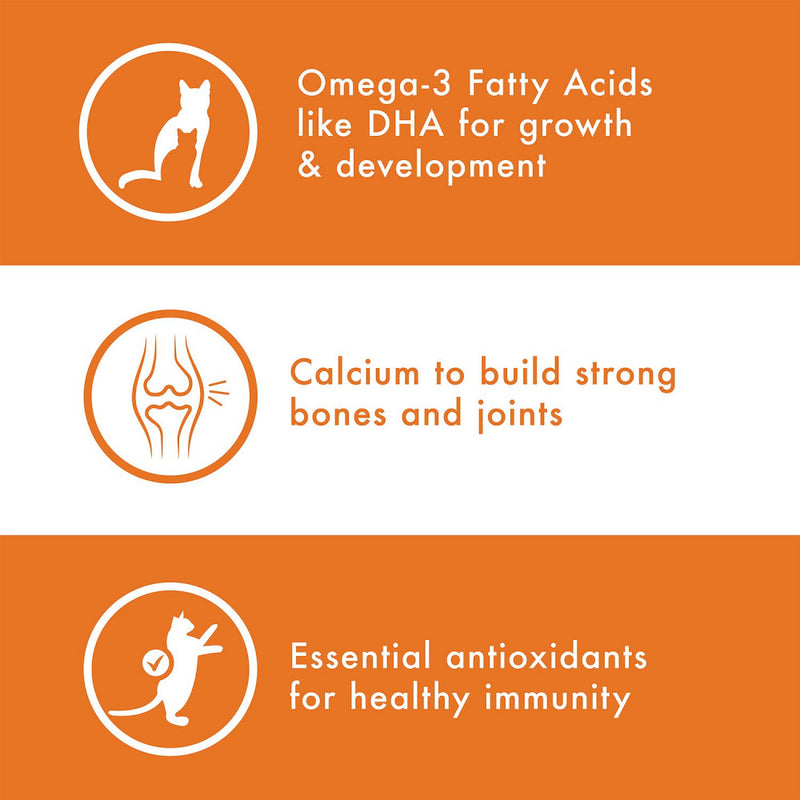 Shop / Nutro / Nutro Wholesome Essentials Farm Raised Kitten Chicken and Brown Rice Dry Cat Food Nutro Wholesome Essentials Farm Raised Kitten Chicken and Brown Rice Dry Cat Food Nutro Weight: 3 lb $17.99 3-lb Purchase Options Free In-Store Pick Up Not Available Save 10% on orders $49+ Set your store for inventory and store pickup details Zip Code Search Same-day Delivery* No minimum charge for delivery orders. *Order before 2pm and have it delivered today. Orders placed after 2pm will be delivered the next day. Must be inside delivery radius. Zip Code Unfortunately delivery is not available to this address. In order to ensure the best availability accuracy, changing your selected store will remove all items from your cart. You will need to re-add these items with your newly selected store if you choose to continue. Continue Cancel Ship it to Me Quantity Add To Cart Feeding guide disclaimer ✕ Feeding guides provide a starting point for the amount of food to give your pet each day. We recommend that you keep your pet in ideal body condition and not allow them to become overweight. The amount of food your pet needs can vary based on age, activity level or other food and treats given, so be sure to work with your veterinarian to determine an appropriate weight for your pet, and to make any necessary adjustments to their feeding. Information NUTRO WHOLESOME ESSENTIALS Kitten Farm-Raised Chicken & Brown Rice Recipe Cat Food always starts with great-tasting chicken and contains a unique blend of whole grains. This natural cat food provides natural fiber for healthy digestion and essential antioxidants, such as vitamin E, for a healthy immune system, plus vitamins, minerals and other nutrients. These recipes are also crafted with Omega 3 fatty acids like DHA for healthy growth and development, and calcium to help build strong bones and joints. NUTRO Food for Cats follows the NUTRO FEED CLEAN philosophy, is always made with Non-GMO Ingredients and is made with no artificial flavors, colors or preservatives. *Trace amounts of genetically modified material may be present Ingredients Chicken, Chicken Meal, Pea Protein, Chicken Fat (preserved with Mixed Tocopherols), Brewers Rice, Whole Brown Rice, Potato Protein, Dried Plain Beet Pulp, Whole Grain Oatmeal, Salmon Meal, Natural Flavor, Dehydrated Alfalfa Meal, Soybean Oil (preserved with Mixed Tocopherols), Potassium Chloride, Choline Chloride, Fish Oil (preserved with Mixed Tocopherols), Salt, DL-Methionine, Mixed Tocopherols and Citric Acid (preservatives), Taurine, Zinc Sulfate, Vitamin E Supplement, L-Ascorbyl-2-Polyphosphate (source of Vitamin C), Iron Amino Acid Chelate, Yucca Schidigera Extract, Vitamin B12 Supplement, Copper Amino Acid Chelate, Niacin Supplement, Manganese Amino Acid Chelate, Biotin, Riboflavin Supplement (Vitamin B2), D-Calcium Pantothenate, Thiamine Mononitrate (Vitamin B1), Vitamin A Supplement, Pyridoxine Hydrochloride (Vitamin B6), Sodium Selenite, Vitamin D3 Supplement, Potassium Iodide, Folic Acid, Rosemary Extract Visit our Ingredient Glossary for more information. Guaranteed Analysis Nutrient Guaranteed Units Crude Protein 36.0% min Crude Fat 19.0% min Crude Fiber 4.0% max Moisture 10.0% max Calcium 1.2% min Vitamin E 250 IU/kg min Taurine 0.18% min Ascorbic Acid (Vitamin C) 50 mg/kg min DHA 0.06% min Omega-6 Fatty Acids 4.0% min Omega-3 Fatty Acids 0.3% min Customers also liked Customer Reviews