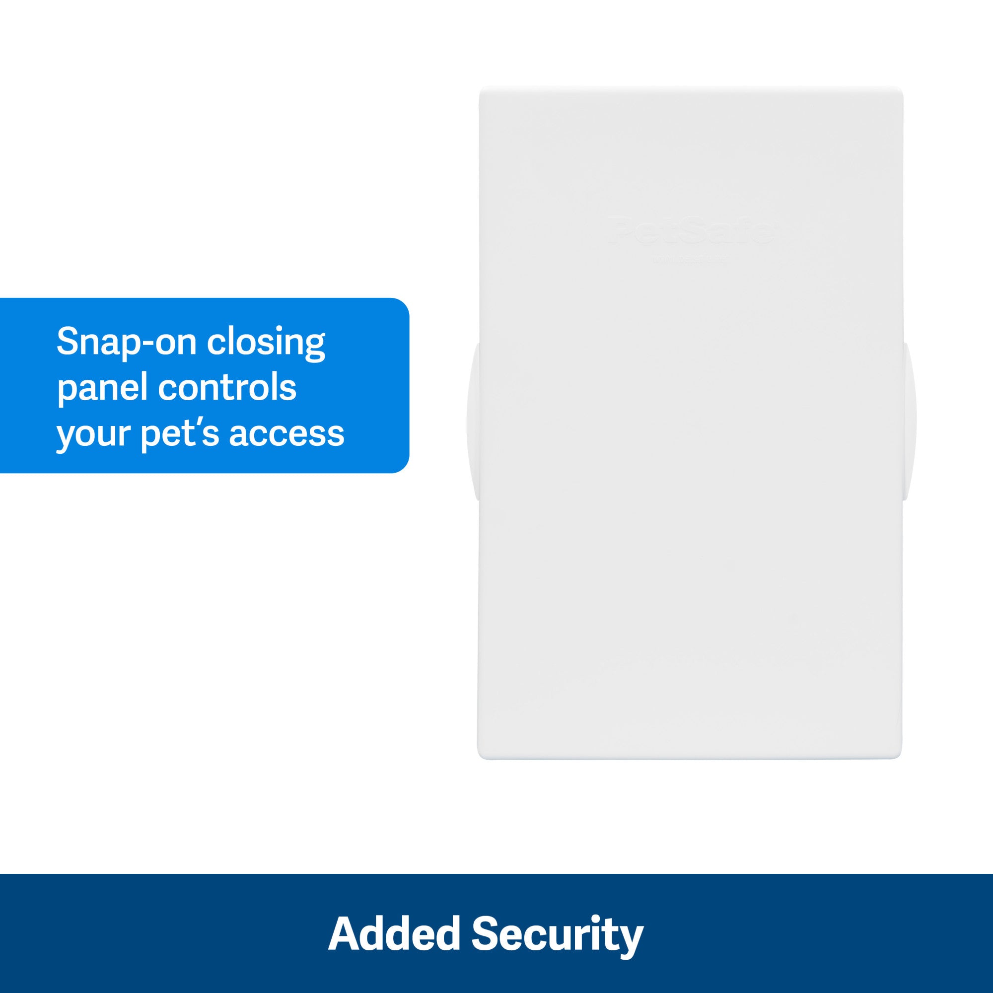Shop / Petsafe / PetSafe Freedom Aluminum Pet Door for Dogs and Cats, Small, White, Tinted Vinyl Flap PetSafe Freedom Aluminum Pet Door for Dogs and Cats, Small, White, Tinted Vinyl Flap PetSafe Small $64.99 Small Purchase Options Free In-Store Pick Up Not Available Save 10% on orders $49+ Set your store for inventory and store pickup details Zip Code Search Same-day Delivery* No minimum charge for delivery orders. *Order before 2pm and have it delivered today. Orders placed after 2pm will be delivered the next day. Must be inside delivery radius. Zip Code Unfortunately delivery is not available to this address. In order to ensure the best availability accuracy, changing your selected store will remove all items from your cart. You will need to re-add these items with your newly selected store if you choose to continue. Continue Cancel Ship it to Me Quantity Add To Cart Information Is your schedule planned around potty breaks? Let your four-legged friends come and go on their own time with the PetSafe® Freedom® Aluminum Dog and Cat Door. Designed to withstand wear and tear, the metal frame with its reinforced aluminum corners is great for active dogs and multi-pet households. The magnetic, tinted flap, weather stripping and a slide-in closing panel gives you protection against drafts and outdoor temperatures. You can also use the slide-in closing panel to control your pet’s access and keep stray animals out of your home. Installing this cat and doggie door is an easy DIY project that fits doors between 3/8 and 2 inches thick. With four sizes available, the flexible flap gives pets up to 220 pounds easy access in and out. Trust PetSafe® to help keep your pet healthy, safe and happy. Customers also liked Customer Reviews