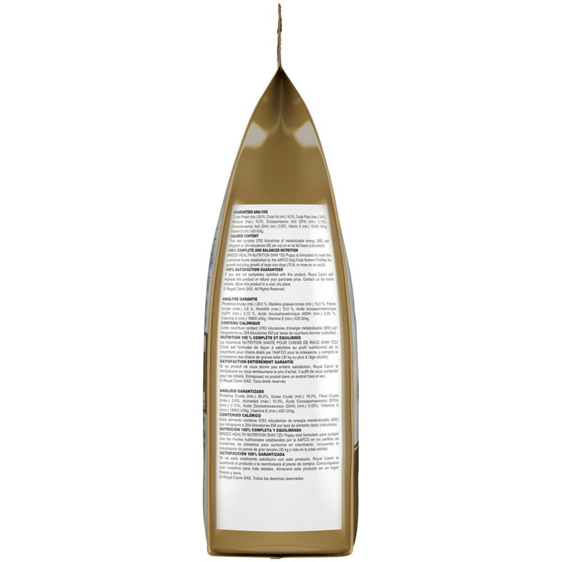 Shop / Royal Canin / Royal Canin Breed Health Nutrition Shih Tzu Puppy Dry Dog Food Royal Canin Breed Health Nutrition Shih Tzu Puppy Dry Dog Food Royal Canin Weight: 2.5 lb $28.99 2.5-lb Purchase Options Free In-Store Pick Up Not Available Save 10% on orders $49+ Set your store for inventory and store pickup details Zip Code Search Same-day Delivery* No minimum charge for delivery orders. *Order before 2pm and have it delivered today. Orders placed after 2pm will be delivered the next day. Must be inside delivery radius. Zip Code Unfortunately delivery is not available to this address. In order to ensure the best availability accuracy, changing your selected store will remove all items from your cart. You will need to re-add these items with your newly selected store if you choose to continue. Continue Cancel Ship it to Me Quantity Add To Cart Feeding guide disclaimer ✕ Feeding guides provide a starting point for the amount of food to give your pet each day. We recommend that you keep your pet in ideal body condition and not allow them to become overweight. The amount of food your pet needs can vary based on age, activity level or other food and treats given, so be sure to work with your veterinarian to determine an appropriate weight for your pet, and to make any necessary adjustments to their feeding. Information Royal Canin knows what makes your Shih Tzu puppy magnificent is in the details. While they may be small, Shih Tzu puppies have big nutritional needs. They can benefit from the right growth formula to help provide immune system support, skin and coat health, and digestive care as they take on puppyhood. Royal Canin Shih Tzu dry puppy food is tailor-made nutrition created just for your pure breed Shih Tzu puppy. This exclusive breed-specific diet is uniquely formulated for your Shih Tzu puppy with specific nutrients to help them thrive. The unique kibble shape and texture are specially designed for your small breed Shih Tzu’s short muzzle and underbite, making it easy for them to pick up and chew. An exclusive complex of nutrients reinforces the skin barrier to maintain your Shih Tzu’s skin health. EPA, DHA, and vitamin A help promote the growth of a long coat. And to support your puppy’s digestive system, high-quality proteins and prebiotics help promote optimal stool quality. Once your Shih Tzu puppy is over 10 months old, transition them to Royal Canin Shih Tzu Adult dog food for precise nutrition into their adult years. With nearly 50 years of scientific research and observation, Royal Canin continues to deliver targeted nutrition to feed every pet’s magnificence. Not satisfied? Then neither are we. Our breed health formulas are 100% satisfaction guaranteed. (Just contact us for more details. Royal Canin Shih Tzu Puppy dry dog food is designed to meet the nutritional needs of purebred Shih Tzus 8 weeks to 10 months old Exclusive kibble shape designed specifically for a Shih Tzu’s short muzzle and underbite Helps protect a puppy’s developing immune system and natural defenses with an exclusive complex of antioxidants including vitamin E Supports skin health and maintains a Shih Tzu’s growing, long coat with specific nutrients Helps reduce amount of stools and stool odor with high-quality proteins and prebiotics for digestive health Ingredients Chicken by-product meal, brewers rice, corn, chicken fat, wheat gluten, dried plain beet pulp, natural flavors, fish oil, vegetable oil, sodium silico aluminate, monocalcium phosphate, potassium chloride, calcium carbonate, fructooligosaccharides, sodium tripolyphosphate, vitamins [DL-alpha tocopherol acetate (source of vitamin E), niacin supplement, L-ascorbyl-2-polyphosphate (source of vitamin C), D-calcium pantothenate, biotin, pyridoxine hydrochloride (vitamin B6), riboflavin supplement, thiamine mononitrate (vitamin B1), vitamin A acetate, folic acid, vitamin B12 supplement, vitamin D3 supplement], salt, hydrolyzed yeast (source of betaglucans), choline chloride, L-lysine, L-tyrosine, marigold extract (Tagetes erecta L.), DL-methionine, taurine, trace minerals [zinc proteinate, zinc oxide, manganese proteinate, ferrous sulfate, manganous oxide, copper sulfate, calcium iodate, sodium selenite, copper proteinate], Yucca schidigera extract, L-carnitine, carotene, rosemary extract, preserved with mixed tocopherols and citric acid. Guaranteed Analysis Nutrient Guaranteed Units Crude Protein 26.0% min Crude Fat 16.0% min Crude Fiber 3.6% max Moisture 10.0% max Vitamin E 420 IU/kg min Vitamin A 18,900 IU/kg min EPA 0.13% min DHA 0.05% min Customers also liked Customer Reviews