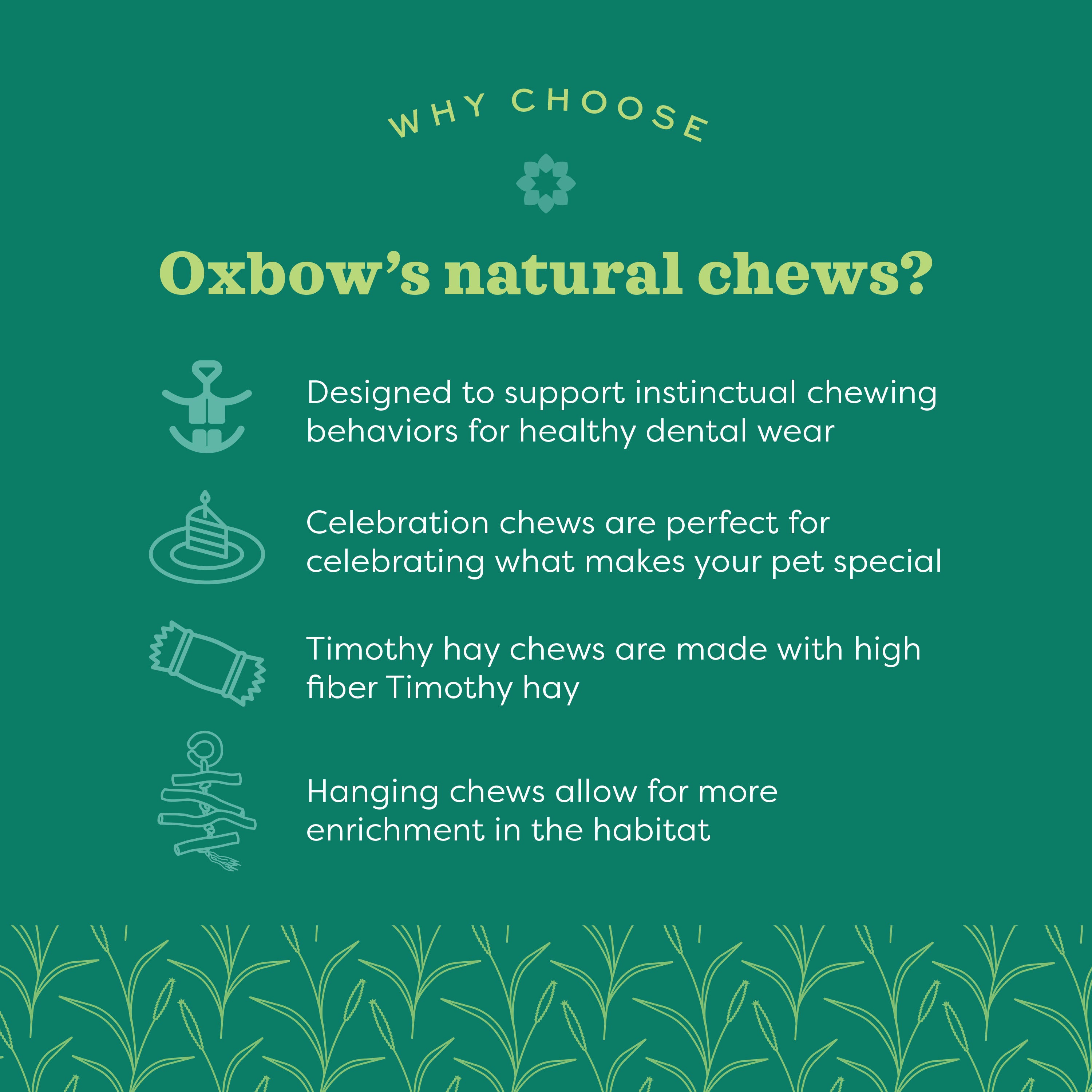 Shop / Small Pet / Oxbow Animal Health Enriched Life Timothy Waffle Oxbow Animal Health Enriched Life Timothy Waffle Oxbow Animal Health Default Title $6.99 Default Title Purchase Options Free In-Store Pick Up Not Available Save 10% on orders $49+ Set your store for inventory and store pickup details Zip Code Search Same-day Delivery* No minimum charge for delivery orders. *Order before 2pm and have it delivered today. Orders placed after 2pm will be delivered the next day. Must be inside delivery radius. Zip Code Unfortunately delivery is not available to this address. In order to ensure the best availability accuracy, changing your selected store will remove all items from your cart. You will need to re-add these items with your newly selected store if you choose to continue. Continue Cancel Ship it to Me Quantity Add To Cart Information Enriching your pet's daily life starts with supporting natural behaviors such as exploring, playing, hiding, and chewing. Oxbow Enriched Life is designed with these natural behaviors in mind and is constructed from 100% pet-safe materials, allowing you to nurture your pet's mind and body in safe and fun ways every day. FEATURES:-Fun shape made with high fiber Timothy hay -Adds fun and enrichment to your pet's day -Crafted with safe and natural materials -Supports your pet's instinctual chewing and playing behaviors -Great for strengthening the bond with your pet . INGREDIENTS: Timothy Hay, Tapioca Starch. GUARANTEED ANALYSIS: N/A Customers also liked Customer Reviews