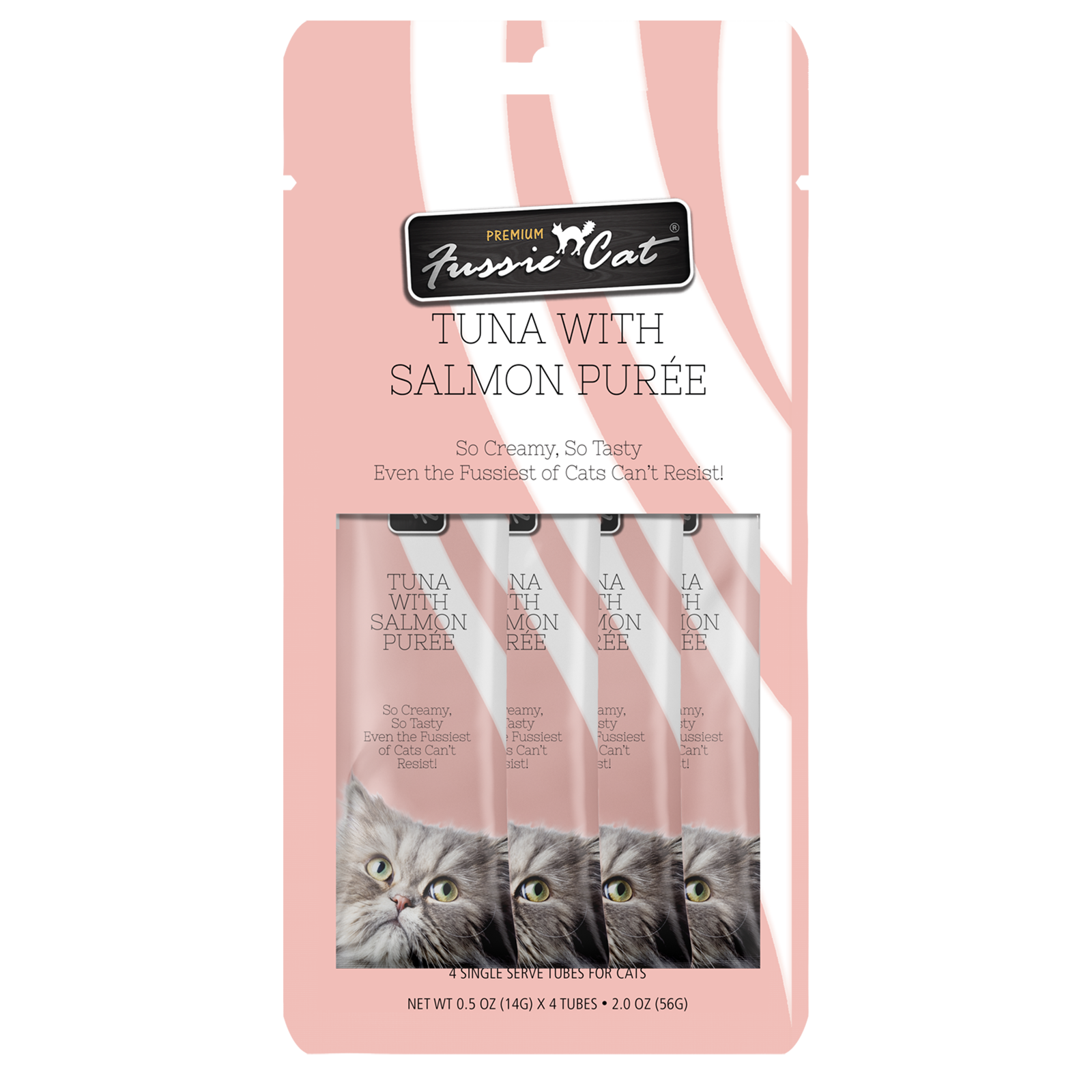 Shop / Treats & Chews / Fussie Cat 2oz Tuna & Salmon Puree Cat Food Fussie Cat 2oz Tuna & Salmon Puree Cat Food Fussie Cat 2 oz $3.49 2 oz Purchase Options Free In-Store Pick Up Not Available Save 20% on orders $100+ Set your store for inventory and store pickup details Zip Code Search Same-day Delivery* No minimum charge for delivery orders. *Order before 2pm and have it delivered today. Orders placed after 2pm will be delivered the next day. Must be inside delivery radius. Zip Code Unfortunately delivery is not available to this address. In order to ensure the best availability accuracy, changing your selected store will remove all items from your cart. You will need to re-add these items with your newly selected store if you choose to continue. Continue Cancel Ship it to Me Quantity Add To Cart Feeding guide disclaimer ✕ Feeding guides provide a starting point for the amount of food to give your pet each day. We recommend that you keep your pet in ideal body condition and not allow them to become overweight. The amount of food your pet needs can vary based on age, activity level or other food and treats given, so be sure to work with your veterinarian to determine an appropriate weight for your pet, and to make any necessary adjustments to their feeding. Information Fussie Cat Tuna with Salmon Pur̩e is love at first lick. Creamy in texture and rich in taste, this indulgent, flavorsome puree will make even the Fussiest of Cats demand more! Fussie Cat Tuna with Salmon Pur̩e is an easy-to-feed cat treat with essential vitamin E for your cat‰۪s diet to support healthy skin and coat. Customers also liked Customer Reviews