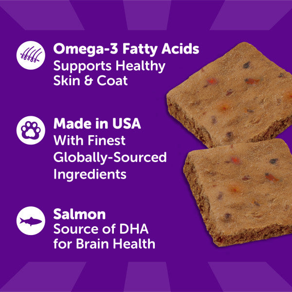 Shop / Treats & Chews / Wellness Rewarding Life Chicken & Venison Recipe Dog Treats, 6 oz. Bag Wellness Rewarding Life Chicken & Venison Recipe Dog Treats, 6 oz. Bag Wellness Weight: 6 oz $9.39 6-oz Purchase Options Free In-Store Pick Up Not Available Save 20% on orders $100+ Set your store for inventory and store pickup details Zip Code Search Same-day Delivery* No minimum charge for delivery orders. *Order before 2pm and have it delivered today. Orders placed after 2pm will be delivered the next day. Must be inside delivery radius. Zip Code Unfortunately delivery is not available to this address. In order to ensure the best availability accuracy, changing your selected store will remove all items from your cart. You will need to re-add these items with your newly selected store if you choose to continue. Continue Cancel Ship it to Me Quantity Add To Cart Feeding guide disclaimer ✕ Feeding guides provide a starting point for the amount of food to give your pet each day. We recommend that you keep your pet in ideal body condition and not allow them to become overweight. The amount of food your pet needs can vary based on age, activity level or other food and treats given, so be sure to work with your veterinarian to determine an appropriate weight for your pet, and to make any necessary adjustments to their feeding. Information Wellness® Rewarding Life Soft & Chewy Healthy Dog Treats are wholesome, healthy, soft, tasty, bite-sized dog treats made in USA only. Wellness Pet Food offers a variety of products for your pets needs including dry dog food, wet dog food, dog food toppers, dog treats, dental chews, dry cat food, wet cat food, and cat treats Ingredients Chicken, Venison, Chickpeas, Ground Potatoes, Vegetable Glycerin, Guar Gum, Carrots, Cane Molasses, Salt, Natural Smoke Flavor, Blueberries, Garlic Powder, Flaxseed, Phosphoric Acid, Sweet Potatoes, Apples, Sorbic Acid (a preservative), Mixed Tocopherols added to preserve freshness, Rosemary Extract, Green Tea Extract, Spearmint Extract. Guaranteed Analysis Nutrient Guaranteed Units Crude Protein 16% min Crude Fat 16% min Crude Fiber 2% max Moisture 30% max Customers also liked Customer Reviews