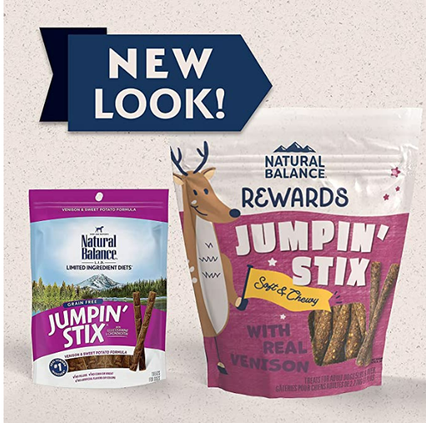 Shop / Treats / Natural Balance L.I.T. Limited Ingredient Treats Jumpin' Stix Venison & Sweet Potato Formula Dog Treats Natural Balance L.I.T. Limited Ingredient Treats Jumpin' Stix Venison & Sweet Potato Formula Dog Treats Natural Balance Weight: 4 oz $9.98 4-oz Purchase Options Free In-Store Pick Up Not Available Save 10% on orders $49+ Set your store for inventory and store pickup details Zip Code Search Same-day Delivery* No minimum charge for delivery orders. *Order before 2pm and have it delivered today. Orders placed after 2pm will be delivered the next day. Must be inside delivery radius. Zip Code Unfortunately delivery is not available to this address. In order to ensure the best availability accuracy, changing your selected store will remove all items from your cart. You will need to re-add these items with your newly selected store if you choose to continue. Continue Cancel Ship it to Me Quantity Add To Cart Feeding guide disclaimer ✕ Feeding guides provide a starting point for the amount of food to give your pet each day. We recommend that you keep your pet in ideal body condition and not allow them to become overweight. The amount of food your pet needs can vary based on age, activity level or other food and treats given, so be sure to work with your veterinarian to determine an appropriate weight for your pet, and to make any necessary adjustments to their feeding. Information Venison is the number one ingredient and the single animal protein source in these tasty chewy treats Sweet potatoes and potatoes provide grain-free sources of fiber for easy digestion Made with glucosamine and chondroitin to help support your adult dog's healthy hips and joints Thoughtfully crafted using a limited number of ingredients for dogs with food-related sensitivities Convenient shape easily breaks into smaller pieces for use as a training treat Ingredients NEW FORMULA: FULL INGREDIENTS LIST Venison, Dried Sweet Potatoes, Glycerin, Cane Molasses, Dried Potatoes, Gelatin, Sugar, Guar Gum, Salt, Chondroitin Sulfate, Potassium Sorbate (Preservative), Natural Smoke Flavor, Glucosamine Hydrochloride, Mixed Tocopherols (Preservative), Rosemary Extract. OLD FORMULA: FULL INGREDIENTS LIST Venison, Water, Dried Sweet Potatoes, Dried Potatoes, Glycerin, Canola Oil (preserved with mixed tocopherols), Gelatin, Sugar, Cane Molasses, Salt, Guar Gum, Sorbic Acid (preservative), Citric Acid (preservative), Glucosamine Hydrochloride, Mixed Tocopherols (preservative), Chondroitin Sulfate, Natural Smoke Flavor, Rosemary Extract. Guaranteed Analysis Nutrient Guaranteed Units Crude Protein 20% min Crude Fat 14% min Crude Fiber 2% max Moisture 26% max Glucosamine 1600 mg/kg min Chondroitin 2200 mg/kg min Customers also liked Customer Reviews