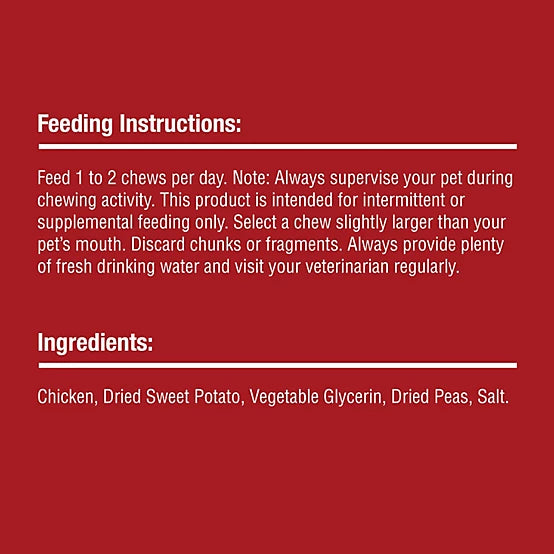 Shop / Treats / SmartBones Protein Rings Chicken, Sweet Potato, 10.5 oz. SmartBones Protein Rings Chicken, Sweet Potato, 10.5 oz. SmartBones 10.5oz $19.99 10.5oz Purchase Options Free In-Store Pick Up Not Available Save 20% on orders $100+ Set your store for inventory and store pickup details Zip Code Search Same-day Delivery* No minimum charge for delivery orders. *Order before 2pm and have it delivered today. Orders placed after 2pm will be delivered the next day. Must be inside delivery radius. Zip Code Unfortunately delivery is not available to this address. In order to ensure the best availability accuracy, changing your selected store will remove all items from your cart. You will need to re-add these items with your newly selected store if you choose to continue. Continue Cancel Ship it to Me Quantity Add To Cart Feeding guide disclaimer ✕ Feeding guides provide a starting point for the amount of food to give your pet each day. We recommend that you keep your pet in ideal body condition and not allow them to become overweight. The amount of food your pet needs can vary based on age, activity level or other food and treats given, so be sure to work with your veterinarian to determine an appropriate weight for your pet, and to make any necessary adjustments to their feeding. Information Scrumptious SmartBones Protein Rings Made with Real Chicken and Sweet Potato are the perfect reward or in-between snack to keep your dog happy and satisfied. Not only are these treats delicious, but with 30% protein in each ring, they're a good source of protein! You can feel good about giving these wHOLE-some, 5-ingredient treats to your pup. Chicken is the #1 ingredient and they're made with no artificial colors, flavors or preservatives and no added wheat, soy or corn. Plus, they're manufactured and sourced in the USA. Feed 1 to 2 chews per day. Always supervise your pet during chewing activity. This product is intended for intermittent or supplemental feeding only. Select a chew slightly larger than your pet's mouth. Discard chunks or fragments. Always provide plenty of fresh drinking water and visit your veterinarian regularly. PROTEIN RING TREATS: SmartBones Protein Rings are delicious, wholesome treats for all dogs. ONLY 5 INGREDIENTS: Made with real chicken and sweet potato for a taste dogs love! 30% PROTEIN PER RING: Chicken is the #1 ingredient and theyre a good source of protein. INGREDIENTS YOU CAN FEEL GOOD ABOUT: Made with no artificial colors, preservatives or flavors added. No added wheat, soy or corn. 10.5 OUNCE PACK: Manufactured and sourced in the USA. Customers also liked Customer Reviews