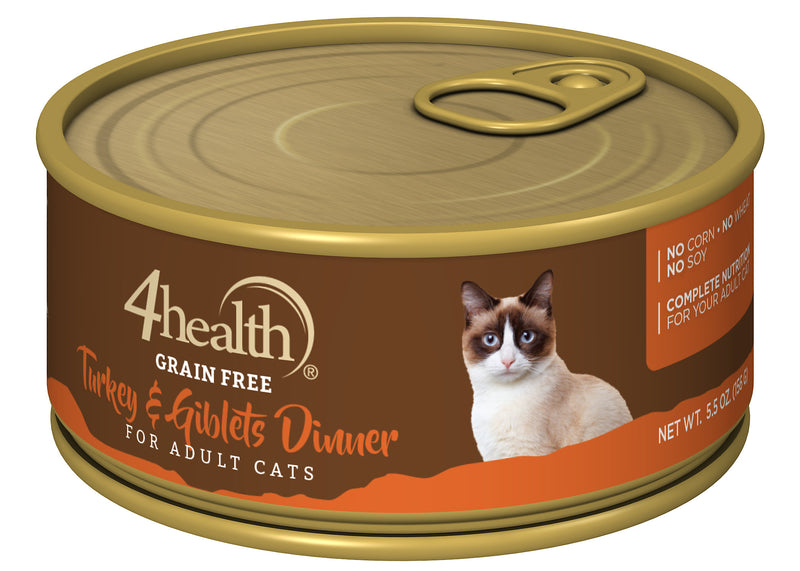 Shop / Wet Food / 4health Grain Free Turkey & Giblet Dinner Wet Cat Food 5.5 oz. Can 4health Grain Free Turkey & Giblet Dinner Wet Cat Food 5.5 oz. Can 4health Default Title $1.19 Default Title Purchase Options Free In-Store Pick Up Not Available Save 10% on orders $49+ Set your store for inventory and store pickup details Zip Code Search Same-day Delivery* No minimum charge for delivery orders. *Order before 2pm and have it delivered today. Orders placed after 2pm will be delivered the next day. Must be inside delivery radius. Zip Code Unfortunately delivery is not available to this address. In order to ensure the best availability accuracy, changing your selected store will remove all items from your cart. You will need to re-add these items with your newly selected store if you choose to continue. Continue Cancel Ship it to Me Quantity Add To Cart Feeding guide disclaimer ✕ Feeding guides provide a starting point for the amount of food to give your pet each day. We recommend that you keep your pet in ideal body condition and not allow them to become overweight. The amount of food your pet needs can vary based on age, activity level or other food and treats given, so be sure to work with your veterinarian to determine an appropriate weight for your pet, and to make any necessary adjustments to their feeding. Information The 4health Grain Free GHEAUC0524TKGIB 4health Grain-Free Turkey & Giblet Dinner Wet Cat Food contains zero additives and zero fillers which equals genuine love for you cat. Meal time is family time and your pet knows when they're missing out. So does their body. That's why 4health has created this wholesome and delicious recipe to meet all of your cat's nutritional needs. The Tastiest Way to Care for Your Cat. Give your cat food that satisfies their stomach and taste buds. This delicious formula contains real turkey meat and poultry giblets, both high-quality sources of protein that help build and heal body tissues. We Love Your Cat Too (and we know just what their body needs). Who better to make food for pets than farmers? At Tractor Supply Company, we bring our deep passion for land and animals to the forefront of our products and services. By sourcing the best local produce, utilizing superior water purification processes and thoroughly testing our formulas, we guarantee excellent quality food for your pets. About This Formula. 4health Grain Free Turkey & Giblet Dinner is a premium quality wet cat food, developed specifically to meet the nutritional needs of cats. Using real turkey as the main ingredients, this recipe offers high-quality protein that aids the body to heal tissue, grow hair and maintain a smooth skin and coat. Species Specific Probiotics. Each bag of 4health cat food formula provides species specific probiotics to specifically aid digestion and modulate the immune system of felines. Customers also liked Customer Reviews