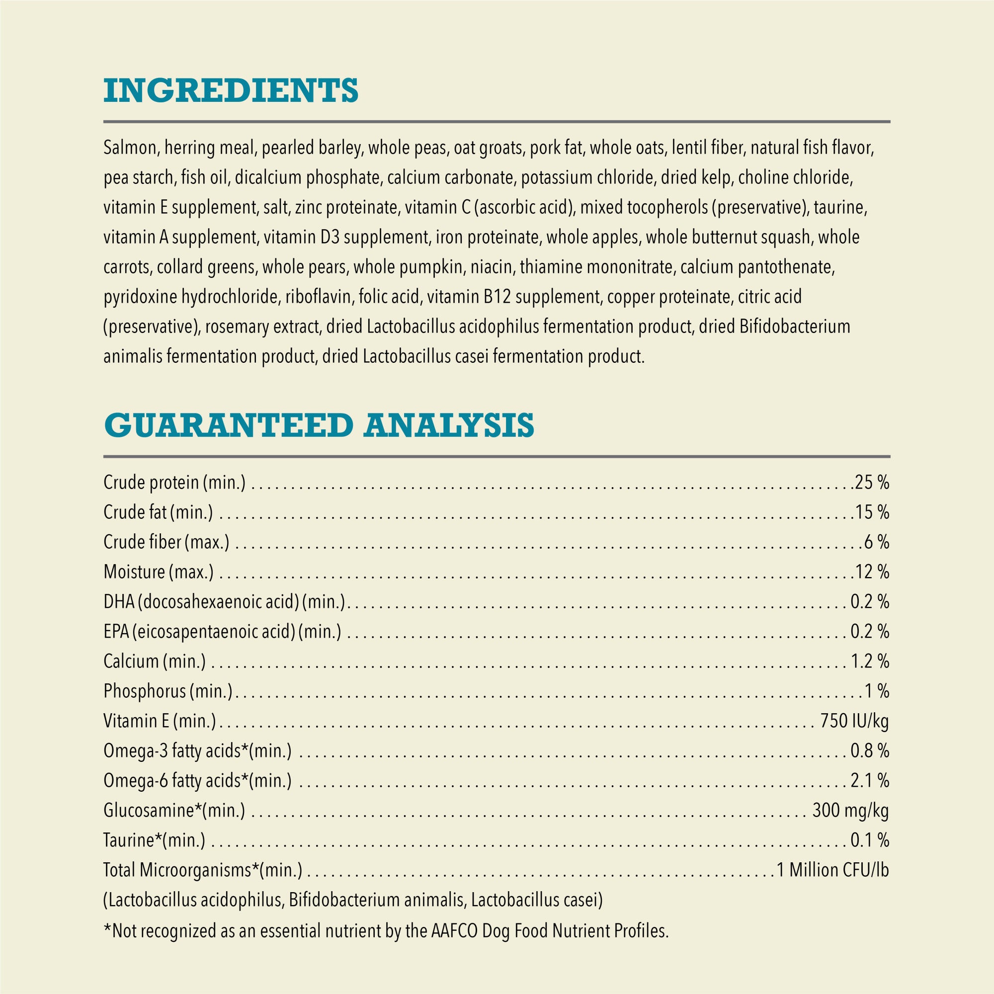 Shop / Unknown Type / ACANA Classics Dry Dog Food Salmon & Barley Recipe 4lb ACANA Classics Dry Dog Food Salmon & Barley Recipe 4lb ACANA 4lb $16.99 4lb Purchase Options Free In-Store Pick Up Not Available Save 10% on orders $49+ Set your store for inventory and store pickup details Zip Code Search Same-day Delivery* No minimum charge for delivery orders. *Order before 2pm and have it delivered today. Orders placed after 2pm will be delivered the next day. Must be inside delivery radius. Zip Code Unfortunately delivery is not available to this address. In order to ensure the best availability accuracy, changing your selected store will remove all items from your cart. You will need to re-add these items with your newly selected store if you choose to continue. Continue Cancel Ship it to Me Quantity Add To Cart Feeding guide disclaimer ✕ Feeding guides provide a starting point for the amount of food to give your pet each day. We recommend that you keep your pet in ideal body condition and not allow them to become overweight. The amount of food your pet needs can vary based on age, activity level or other food and treats given, so be sure to work with your veterinarian to determine an appropriate weight for your pet, and to make any necessary adjustments to their feeding. Information Help your dog feel so good inside, you’ll see it on the outside! Nurture your dog with the simple nutrition and wholesome ingredients in ACANA™ Classics Salmon & Barley Recipe. Crafted with protein-rich salmon, this recipe is balanced with wholesome grains, vegetables and fruit, meaning it’s packed with nutrients, not fillers. Your dog will love its delicious taste, and you’ll love that its nutritious ingredients help support 4 key health benefits, including Immune Health, Healthy Skin and Coat, Digestive Health and Healthy Weight. Nourish your dog with quality nutrition fresh from our kitchen with ACANA Classics dog food! Helps support immune health with antioxidant-rich ingredients, plus added Vitamin E. Nurtures healthy skin and coat with naturally occurring Omega-3 and Omega-6 fatty acids. Fiber from wholesome grains, vegetables and fruit, plus a blend of probiotics, help support digestive health.Made in the USA with quality ingredients from around the world. Ingredients Salmon, herring meal, pearled barley, whole peas, oat groats, pork fat, whole oats, lentil fiber, natural fish flavor, pea starch, fish oil, dicalcium phosphate, calcium carbonate, potassium chloride, dried kelp, choline chloride, vitamin E supplement, salt, zinc proteinate, vitamin C (ascorbic acid), mixed tocopherols (preservative), taurine, vitamin A supplement, vitamin D3 supplement, iron proteinate, whole apples, whole butternut squash, whole carrots, collard greens, whole pears, whole pumpkin, niacin, thiamine mononitrate, calcium pantothenate, pyridoxine hydrochloride, riboflavin, folic acid, vitamin B12 supplement, copper proteinate, citric acid (preservative), rosemary extract, dried Lactobacillus acidophilus fermentation product, dried Bifidobacterium animalis fermentation product, dried Lactobacillus casei fermentation product. Guaranteed Analysis Crude protein 25% Fat content 15% Crude ash 6% Crude fiber 5% Moisture 12% Calcium 1.2% Phosphorus 1.0% Omega-6 fatty acids 3% Omega-3 fatty acids 0.2% DHA (docosahexaenoic acid) 0.03% EPA (eicosapentaenoic acid) 0.02% Customers also liked Customer Reviews