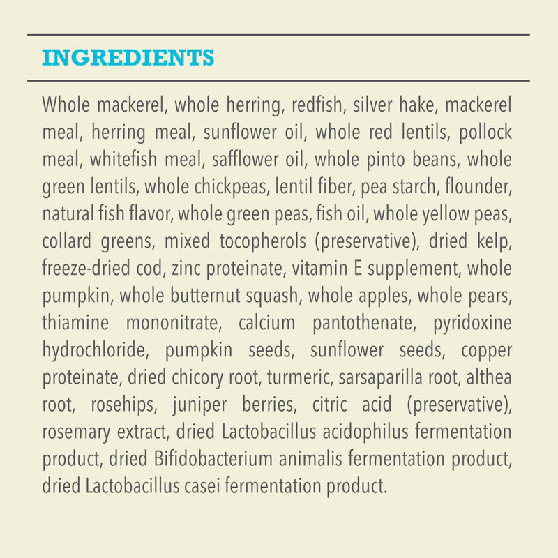 Shop / Unknown Type / ACANA Regionals Wild Atlantic Formula Grain Free Dry Dog Food ACANA Regionals Wild Atlantic Formula Grain Free Dry Dog Food ACANA $29.99 4.5 lb 25 lb 4.5-lb 25-lb Purchase Options Free In-Store Pick Up Not Available Save 10% on orders $49+ Set your store for inventory and store pickup details Zip Code Search Same-day Delivery* No minimum charge for delivery orders. *Order before 2pm and have it delivered today. Orders placed after 2pm will be delivered the next day. Must be inside delivery radius. Zip Code Unfortunately delivery is not available to this address. In order to ensure the best availability accuracy, changing your selected store will remove all items from your cart. You will need to re-add these items with your newly selected store if you choose to continue. Continue Cancel Ship it to Me Quantity Add To Cart Feeding guide disclaimer ✕ Feeding guides provide a starting point for the amount of food to give your pet each day. We recommend that you keep your pet in ideal body condition and not allow them to become overweight. The amount of food your pet needs can vary based on age, activity level or other food and treats given, so be sure to work with your veterinarian to determine an appropriate weight for your pet, and to make any necessary adjustments to their feeding. Information Go Beyond the 1st Ingredient™ with ACANA® recipes that are thoughtfully crafted from start to finish. With the highest protein offering in ACANA pet foods, our Highest Protein Wild Atlantic Recipe is rich with 70%* quality animal ingredients like whole mackerel, herring, redfish, silver hake, and flounder, balanced with 30%+ fruits, vegetables, and botanicals, many delivered daily. Artificial colors, flavors or preservatives are never added in our kitchen. Our premium ingredients come from a curated group of farmers, ranchers and fishers we’ve known and trusted for decades, and we approach every batch with an unsurpassed commitment to safety and quality in our award-winning Kentucky kitchen. The result is a protein-rich, nutritious, and delicious dog food to help them live a healthy, happy life. *Approximate and derived from the unprocessed state of the ingredients. +We also add vitamins, minerals, natural preservatives and probiotics.Why We Love It First FOUR ingredients are raw mackerel, herring, redfish, and silver hake, making this recipe nutrient-dense, with our highest protein offering. Our raw ingredients are frozen at their peak freshness Includes fresh or raw vegetables & fruit like collard greens, whole pumpkin, butternut squash, apples, and pears; nutritious and high in fiber. Grain-free with no added soy, corn, wheat or tapioca. About ACANAYour dog may not roam the wilderness like their ancestors did, but that doesn't mean you shouldn't feed them like they don't. ACANA makes only foods that are rich in meat and protein variety, with wholeprey meat ratios and limited carbohydrates, replacing fast carbs with low glycemic, healthy fruits and vegetables. With a state of art brand new kitchen in Kentucky, all ACANA foods are sourced and made right here in the USA by trusted farmers. With human grade ingredients that typically arrive at the kitchens within 48 hours of harvesting, fresh is the entire basis of ACANA’s brand. Ingredients like heritage red meats from the Appalachian ranching country, free run poultry and eggs, wild caught fish from New England, whole fruits and vegetables like Bartlett pears and butternut squash, and locally grown botanicals from Kentucky, ACANA believes the healthiest foods are made here at home in Kentucky, never outsourced. ACANA nourishes your pet's instinct for real, fresh meats and high quality grain-free carbohydrates. It's everything Mother Nature intended, and nothing she did not. Ingredients Whole mackerel, whole herring, whole redfish, silver hake, mackerel meal, herring meal, sunflower oil, whole red lentils, pollock meal, whitefish meal, safflower oil, whole pinto beans, whole green lentils, whole chickpeas, lentil fiber, pea starch, flounder, natural fish flavor, whole green peas, fish oil, whole yellow peas, collard greens, mixed tocopherols (preservative), dried kelp, freeze-dried cod liver, zinc proteinate, vitamin E supplement, whole pumpkin, whole butternut squash, whole carrots, whole apples, whole pears, thiamine mononitrate, calcium pantothenate, pyridoxine hydrochloride, pumpkin seeds, sunflower seeds, copper proteinate, chicory, turmeric, sarsaparilla, althea root, rosehips, juniper berries, citric acid (preservative), rosemary extract, dried Lactobacillus acidophilus fermentation product, dried Bifidobacterium animalis fermentation product, dried Lactobacillus casei fermentation product. Guaranteed Analysis Nutrient Guaranteed Units Crude Protein 33% min Crude Fat 17% min Crude Fiber 6% max Moisture 12% max Calcium 1.3% min Phosphorus 1% min Omega-6 Fatty Acids 2.5% min Omega-3 Fatty Acids 1.5% min DHA 0.5% min EPA 0.4% min Glucosamine 700 mg/kg Chondroitin Sulfate 900 mg/kg Customers also liked Customer Reviews