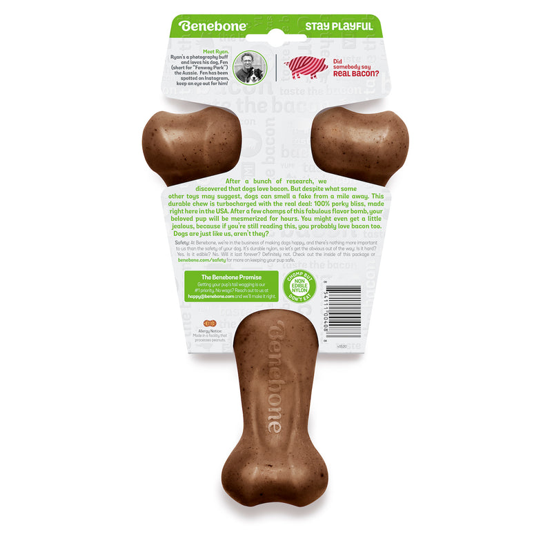 Shop / Unknown Type / Benebone Wishbone Durable Dog Chew Toy, Real Bacon, Large Benebone Wishbone Durable Dog Chew Toy, Real Bacon, Large Benebone Large $19.99 Large Purchase Options Free In-Store Pick Up Not Available Save 10% on orders $49+ Set your store for inventory and store pickup details Zip Code Search Same-day Delivery* No minimum charge for delivery orders. *Order before 2pm and have it delivered today. Orders placed after 2pm will be delivered the next day. Must be inside delivery radius. Zip Code Unfortunately delivery is not available to this address. In order to ensure the best availability accuracy, changing your selected store will remove all items from your cart. You will need to re-add these items with your newly selected store if you choose to continue. Continue Cancel Ship it to Me Quantity Add To Cart Information The Benebone's Wishbone Dogs love to chew, especially on stuff that tastes like real bacon. The Wishbone is easy to handle, tastes awesome, and stands up to heavy chewing. For Aggressive Chewers, Made in USA, Ingredients: Nylon, Real Bacon. Customers also liked Customer Reviews